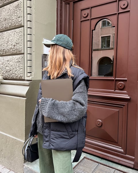 Fodralet är tillverkat av veganskt material med återvunnet innehåll, vilket gör det till ett mer ansvarsfullt val. Insidan är mjuk och skonsam mot datorns yta och lämpar sig väl för dig som vill kombinera skydd med miljömedveten design. Materialet är både smidigt att hantera och slitstarkt för daglig användning.