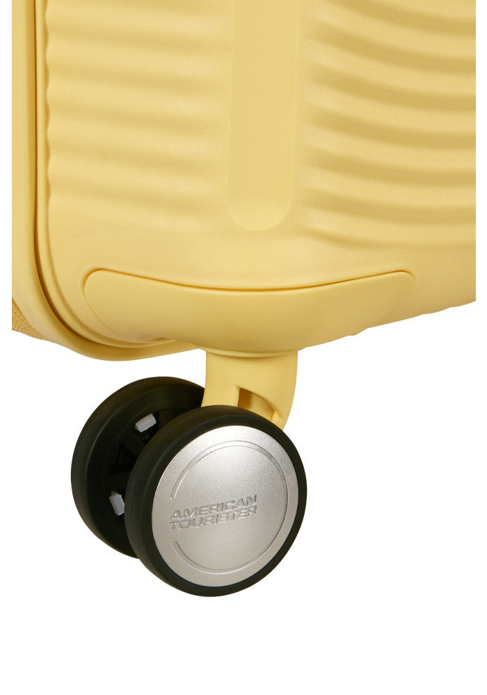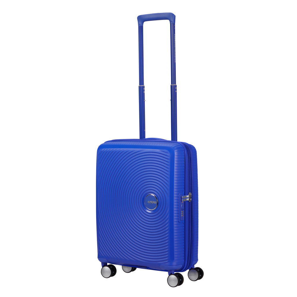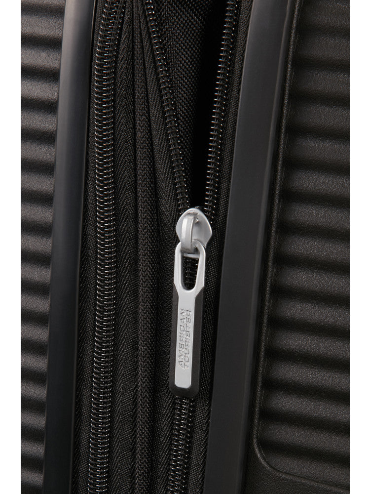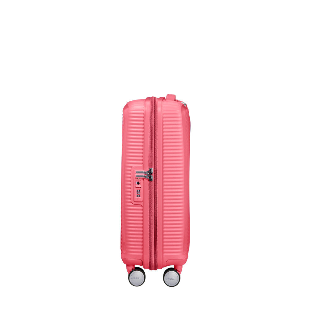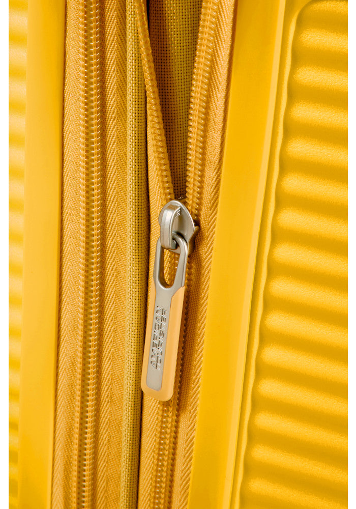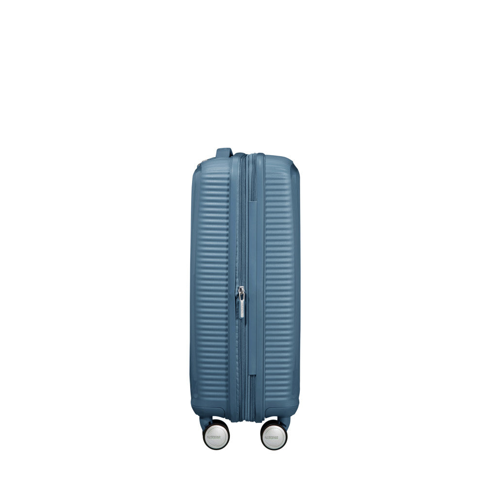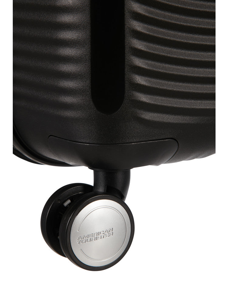 Soundbox kabinväska från American Tourister kombinerar en ikonisk design med smart funktionalitet. Den karakteristiska ytan, inspirerad av en vinylskiva, gör att väskan verkligen sticker ut i mängden. Detta unika utseende är inte bara estetiskt tilltalande utan också praktiskt, då det bidrar till väskans slagtåliga egenskaper.