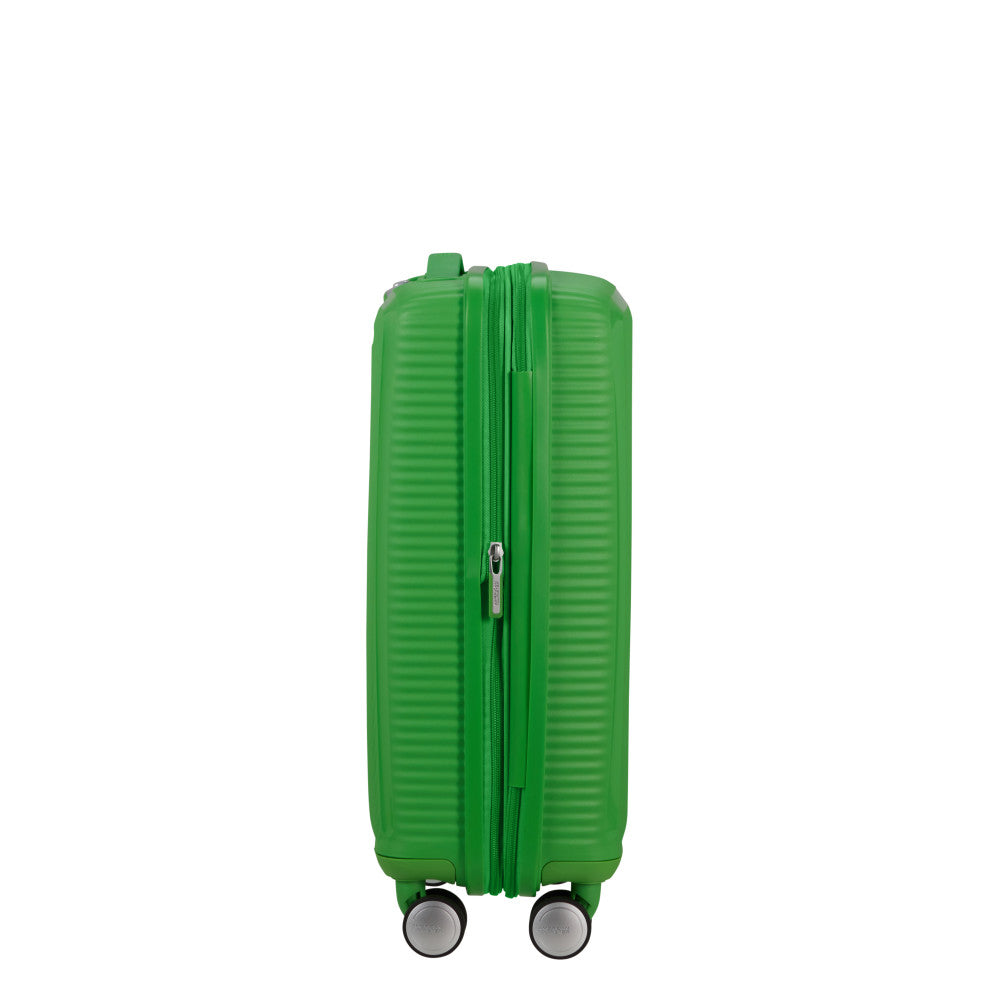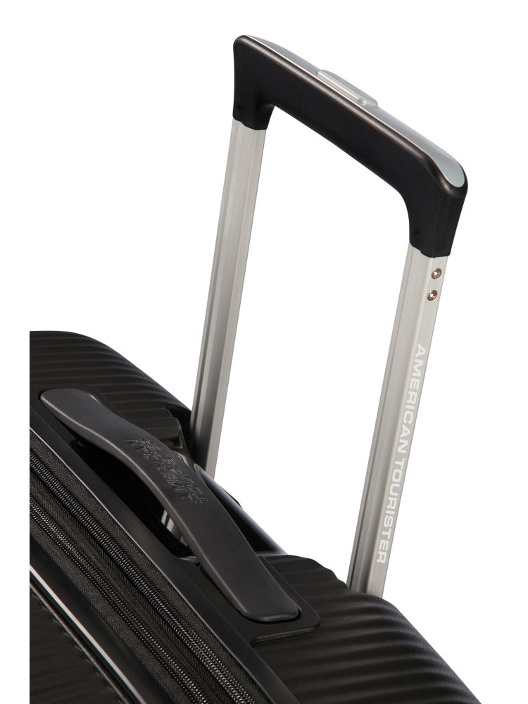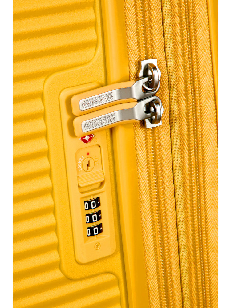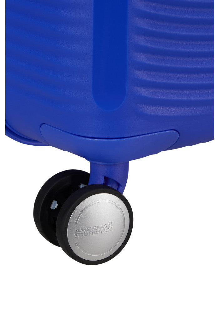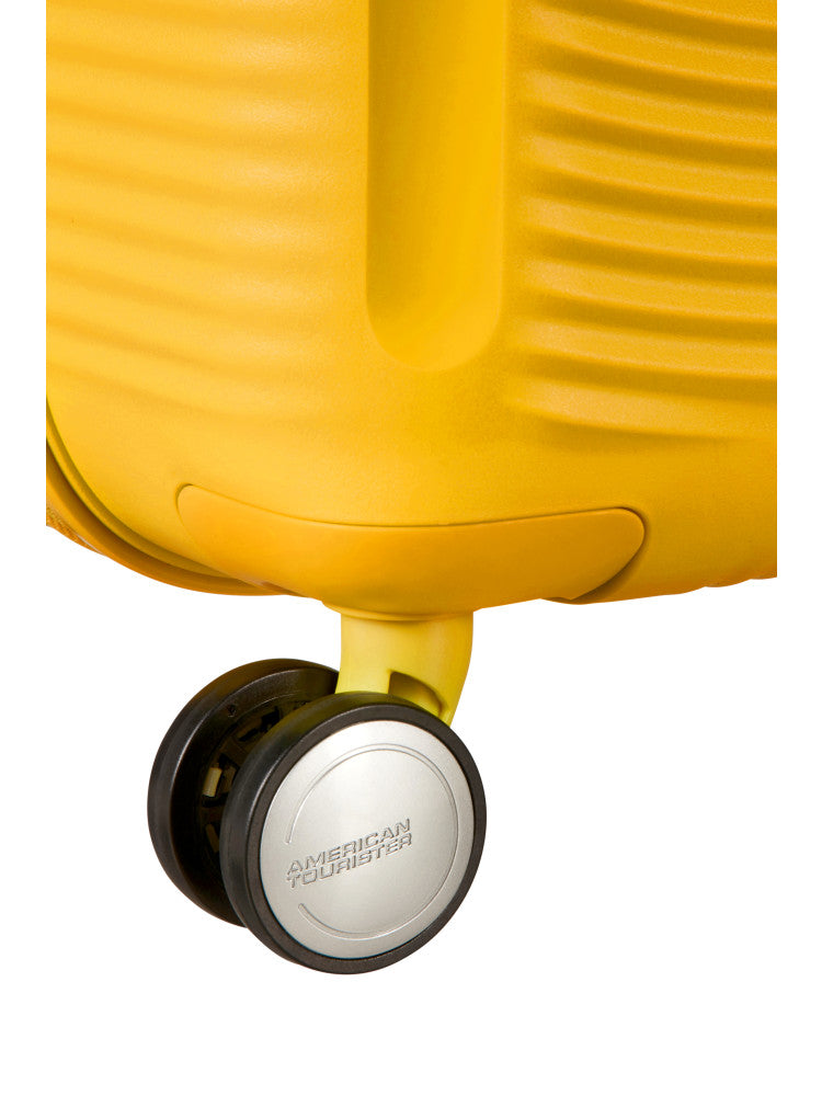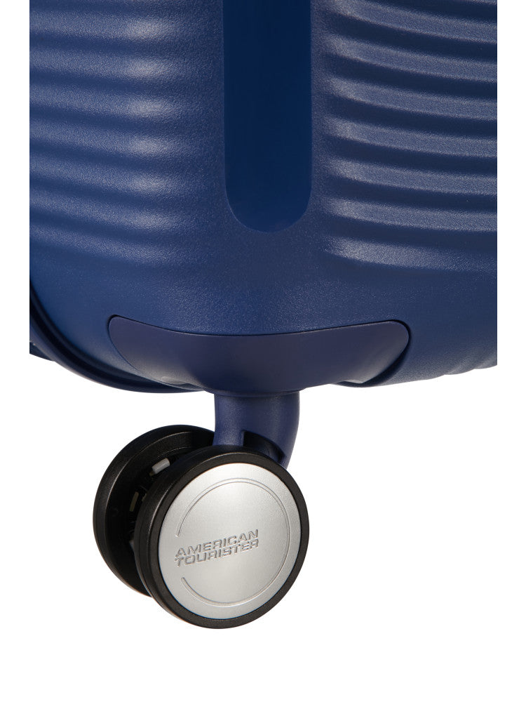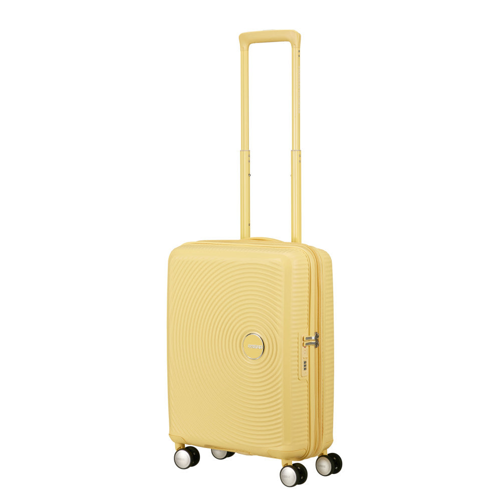 Soundbox kabinväska från American Tourister kombinerar en ikonisk design med smart funktionalitet. Den karakteristiska ytan, inspirerad av en vinylskiva, gör att väskan verkligen sticker ut i mängden. Detta unika utseende är inte bara estetiskt tilltalande utan också praktiskt, då det bidrar till väskans slagtåliga egenskaper.