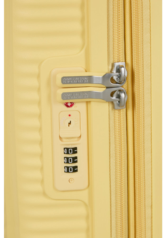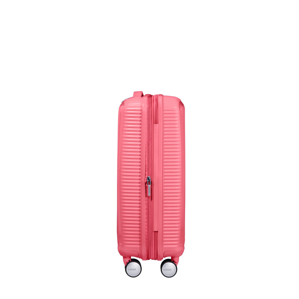Denna kabinväska erbjuder en expanderbar funktion som ger extra utrymme när det behövs, vilket är perfekt för kortare resor eller weekends. Tillverkad i slitstark polypropylen, kombinerar Soundbox låg vikt med hög tålighet mot stötar och tryck. Väskan är utrustad med fyra dubbelhjul för smidig rullning åt alla håll, samt ett justerbart teleskophandtag.
