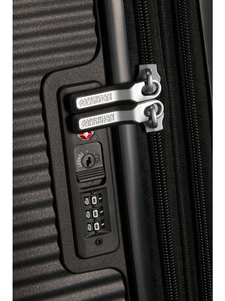 Interiören i Soundbox är väldesignad med både fack och packningsband som håller dina tillhörigheter på plats under resan. Detta gör packningen organiserad och enkel, vilket sparar tid och ansträngning. Dessutom finns ett integrerat tresiffrigt TSA-lås för ökad säkerhet.