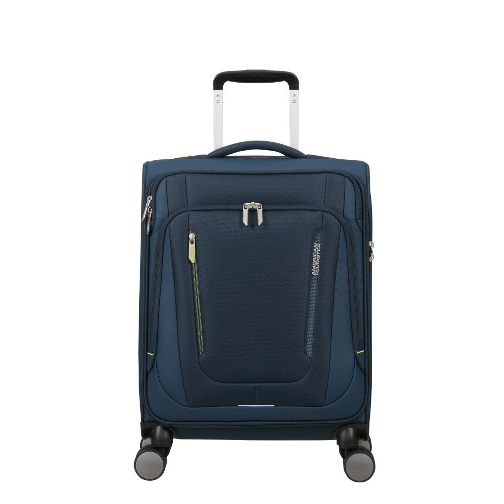 American Tourister Wanderlite är en kabinväska i mjuk konstruktion tillverkad av 100 % återvunnen polyester. Den låga vikten på 2,3 kg gör den smidig att hantera vid resor. Måtten är 55 x 40 x 20 cm och volymen är 44 liter. Formatet är anpassat för kabinbruk.