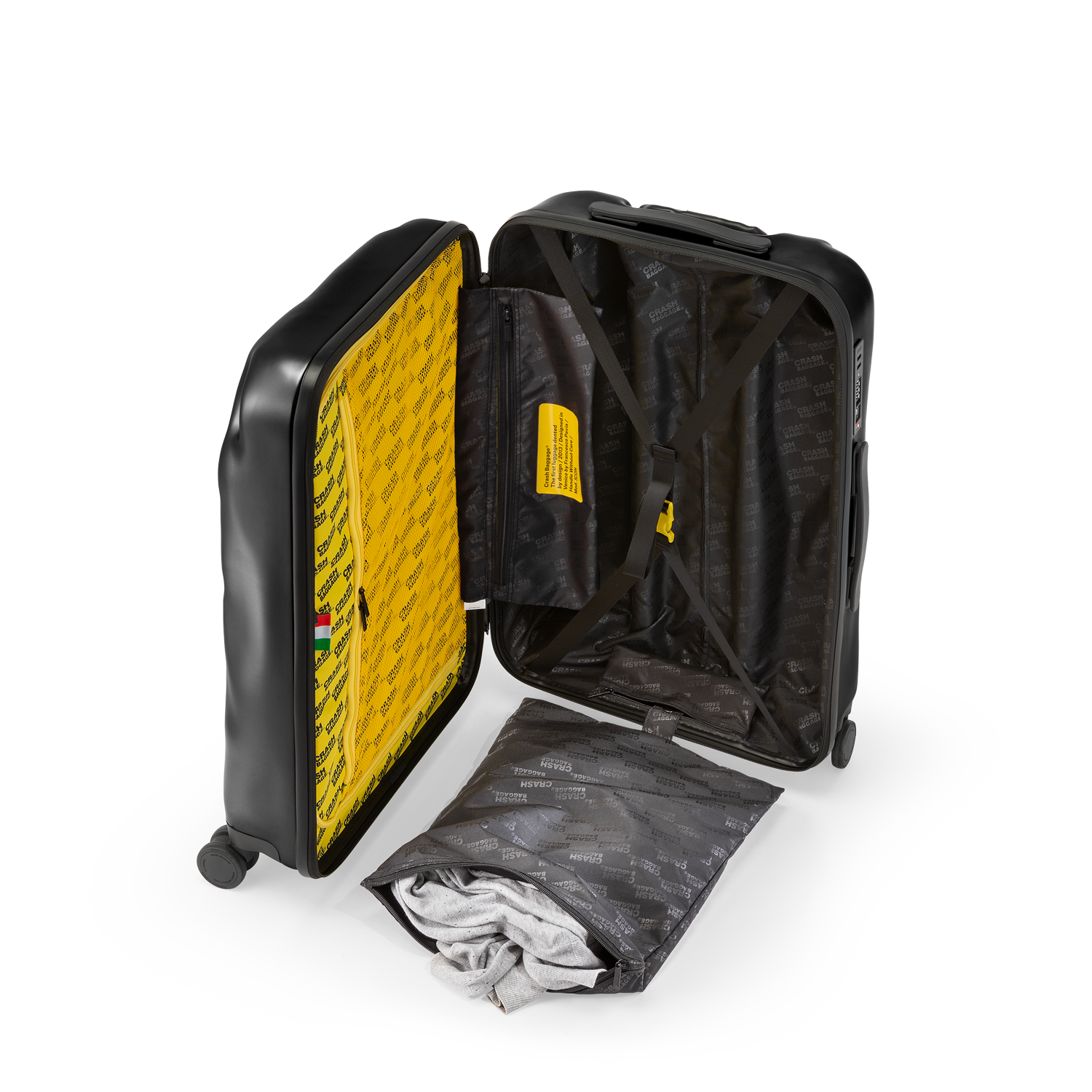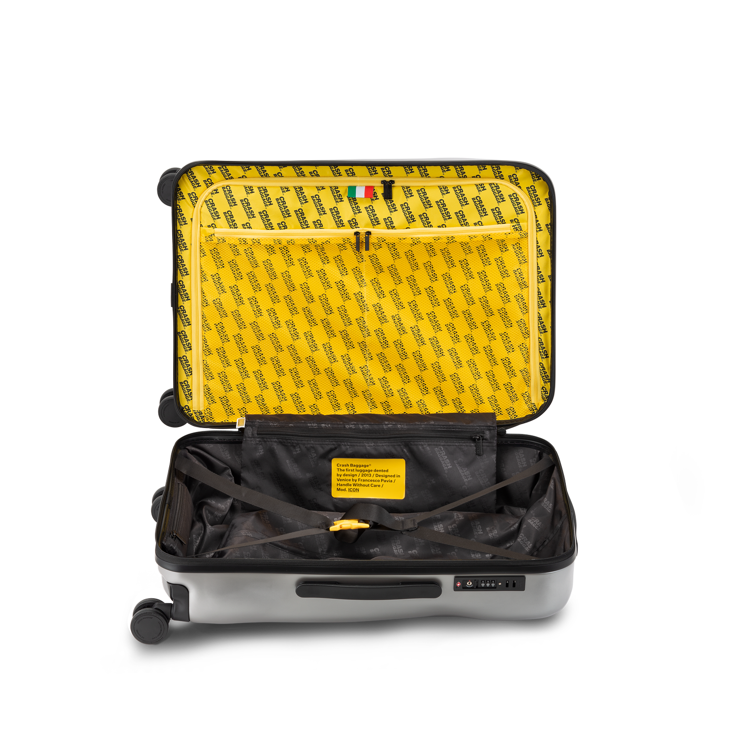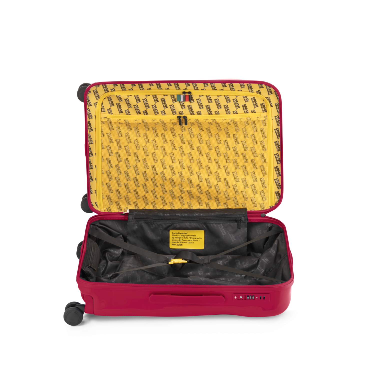 Crash Baggage Icon är en resväska som verkligen sticker ut med sin unika design. Den är medvetet skapad med inbyggda bucklor, vilket gör den till en äkta representation av Crash Baggage’s rebelliska anda. Detta gör den inte bara till en praktisk följeslagare utan även till ett stilfullt uttryck för personlig stil.