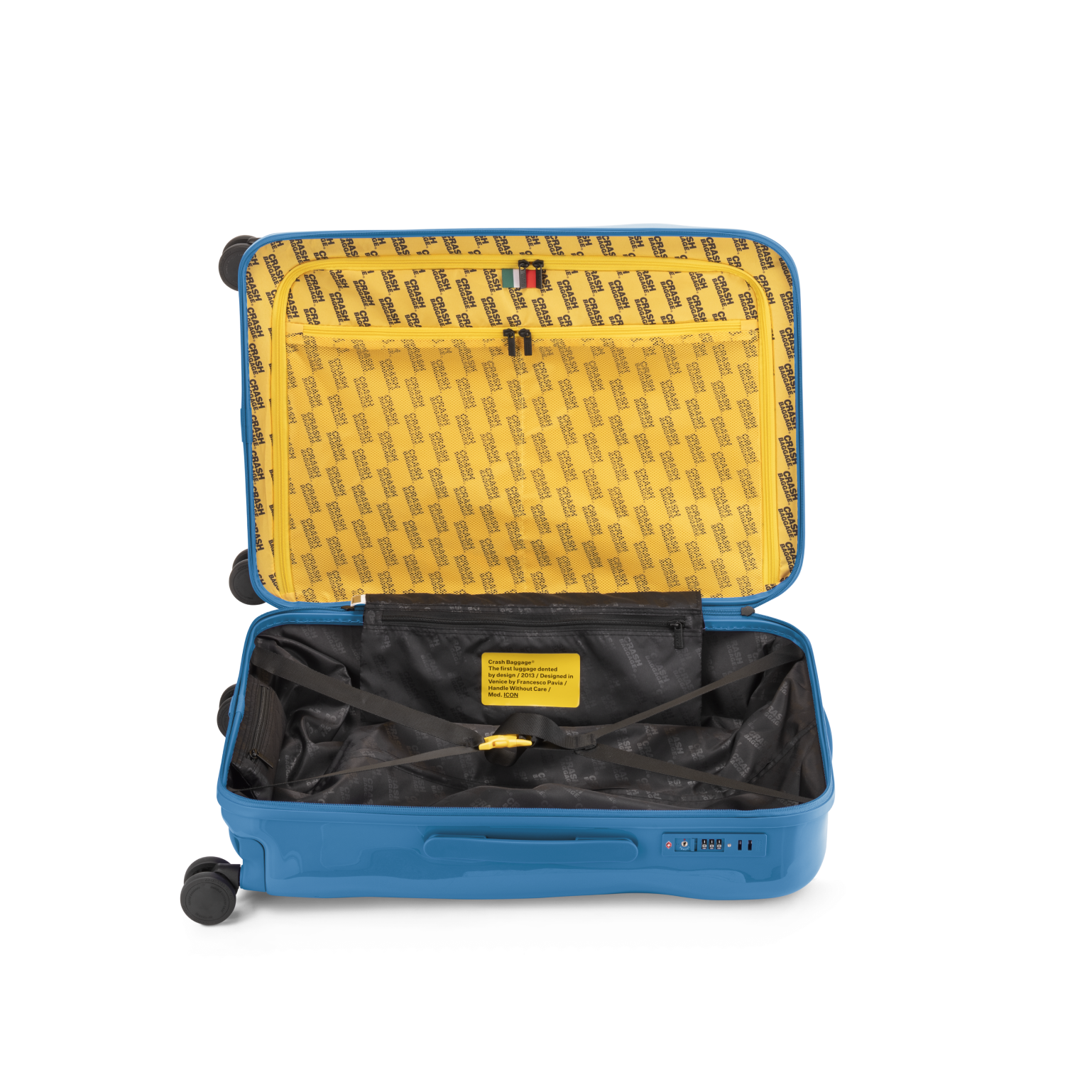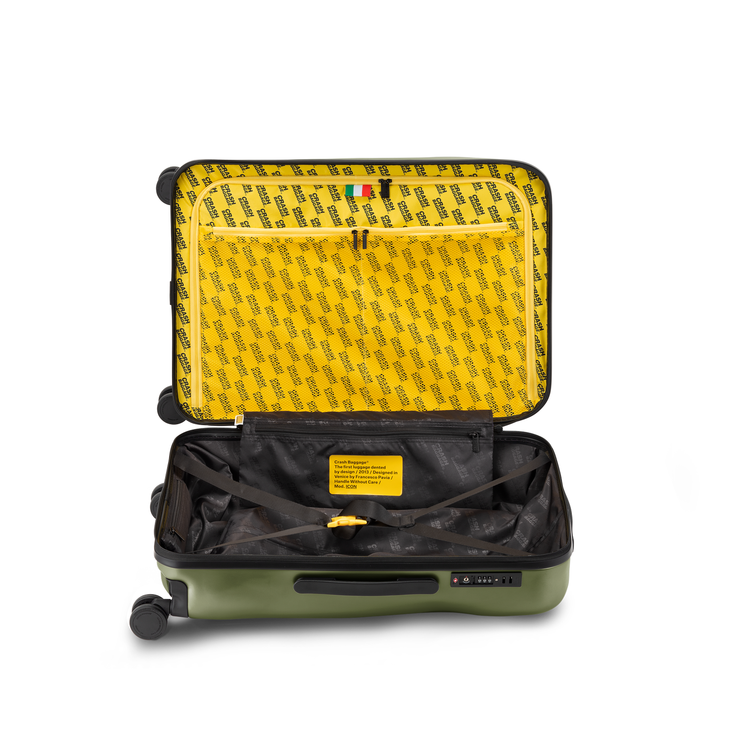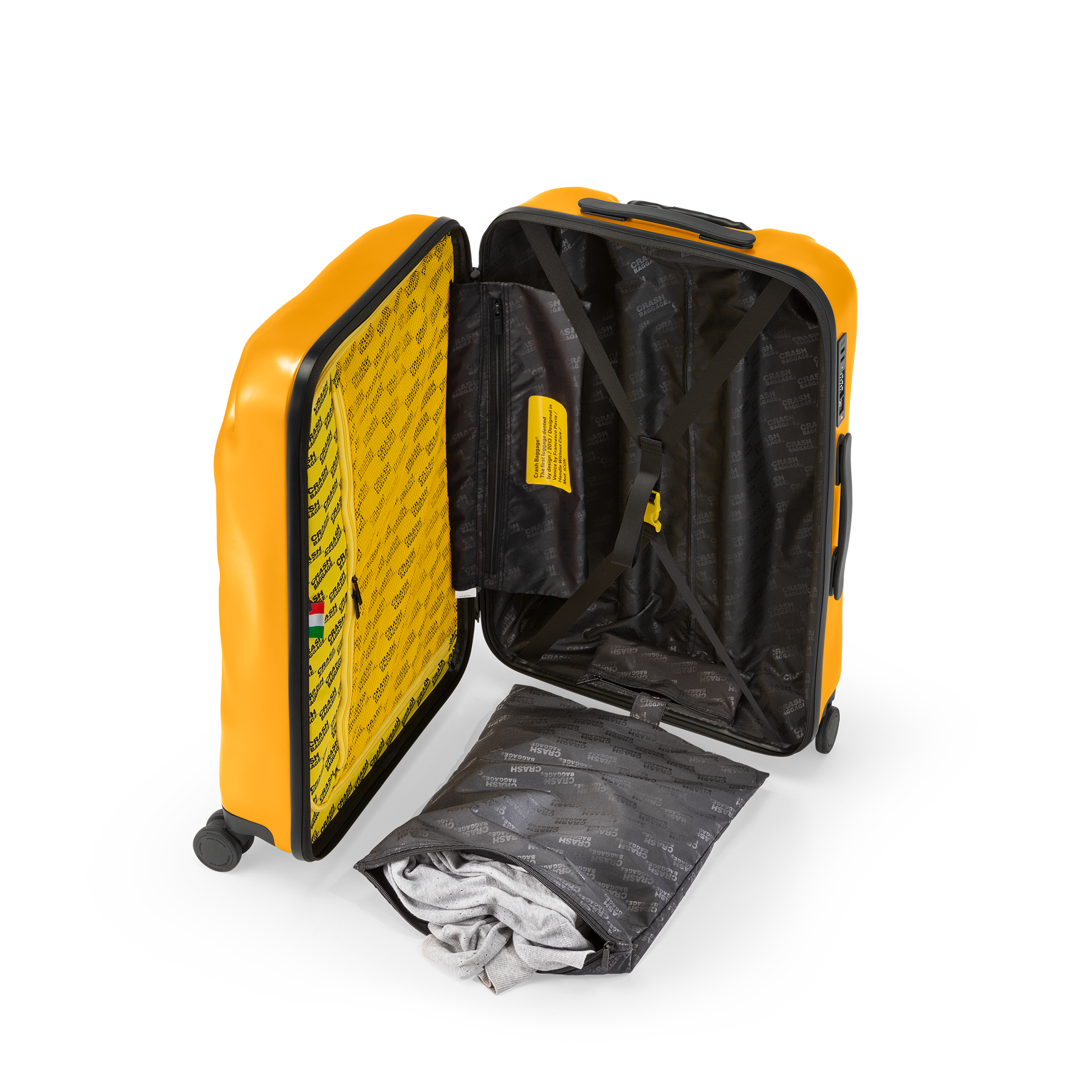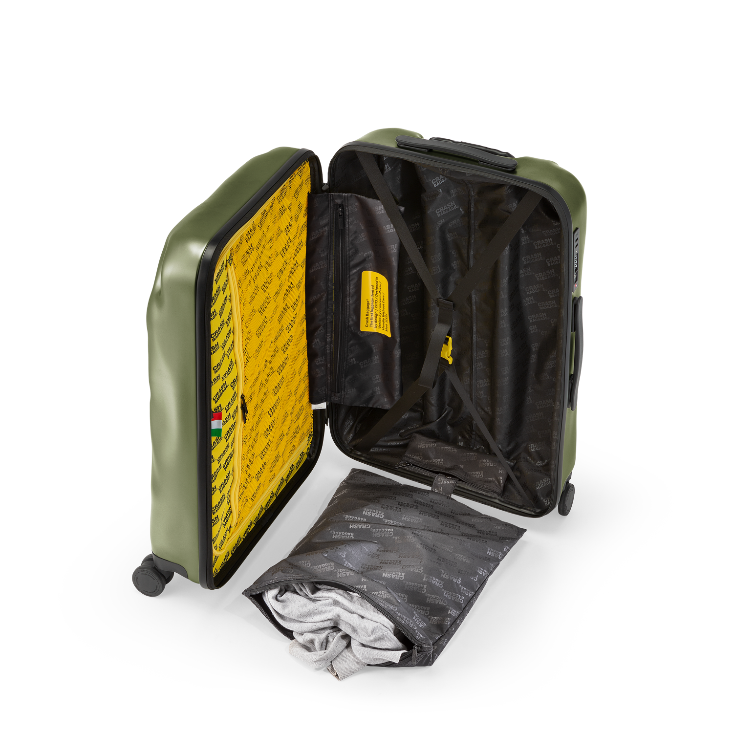 Crash Baggage Icon är en resväska som verkligen sticker ut med sin unika design. Den är medvetet skapad med inbyggda bucklor, vilket gör den till en äkta representation av Crash Baggage’s rebelliska anda. Detta gör den inte bara till en praktisk följeslagare utan även till ett stilfullt uttryck för personlig stil.