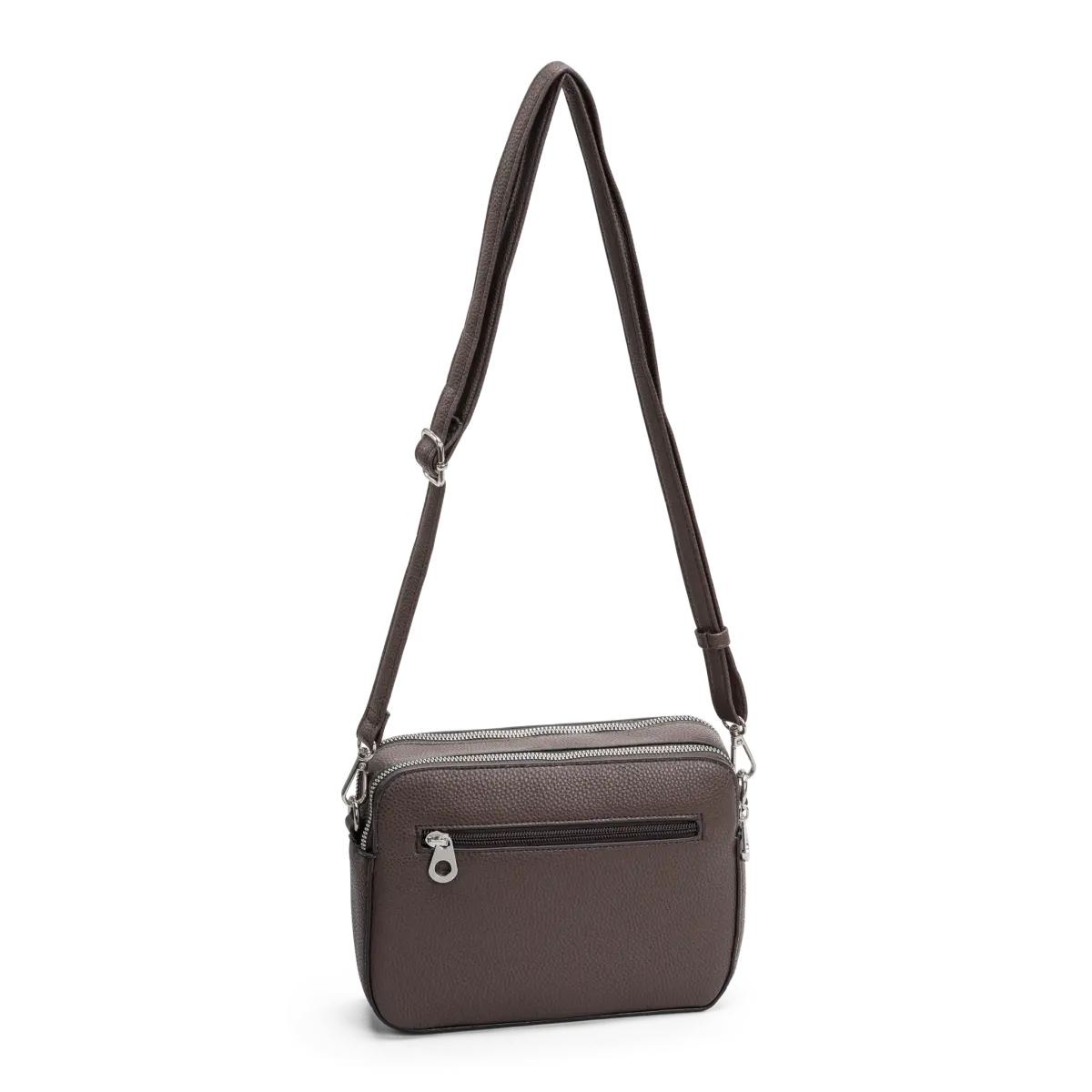 Väskan är inte bara snygg, utan också funktionell. Med två separata huvudfack utrustade med dragkedjor i silverlook, kan du enkelt organisera dina tillhörigheter. Invändigt finns en blixtlåsficka och ett öppet fack, vilket gör det enkelt att förvara mobiltelefon eller andra småprylar. Ett extra blixtlåsförsett fack på baksidan ger säker förvaring för dina viktigaste ägodelar.