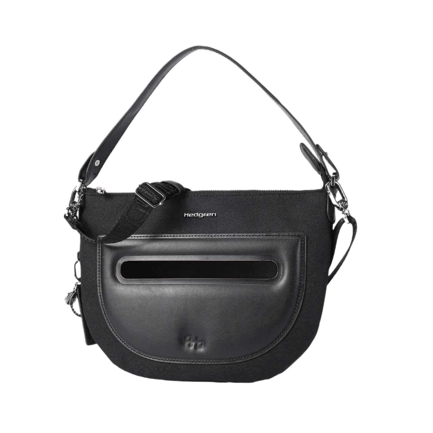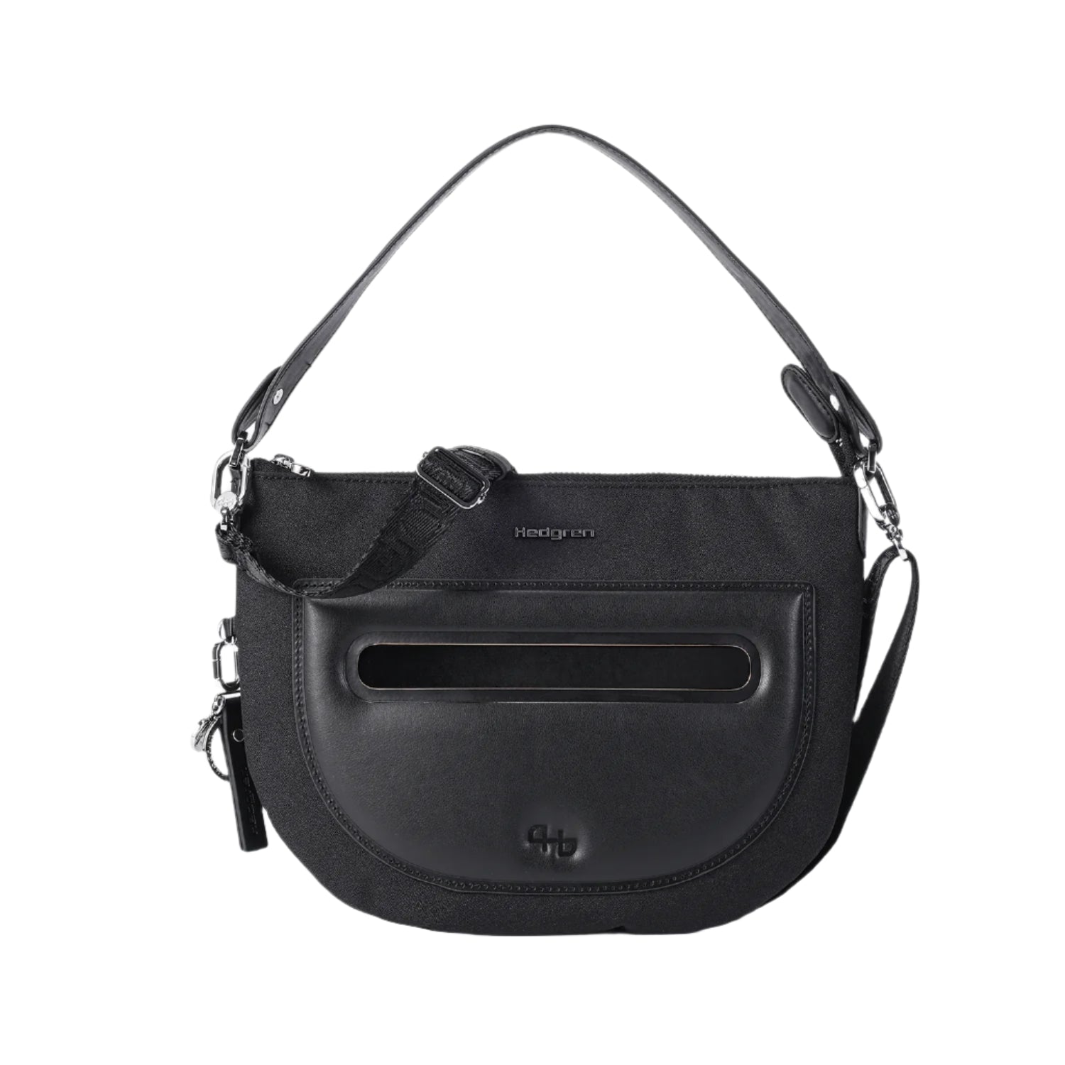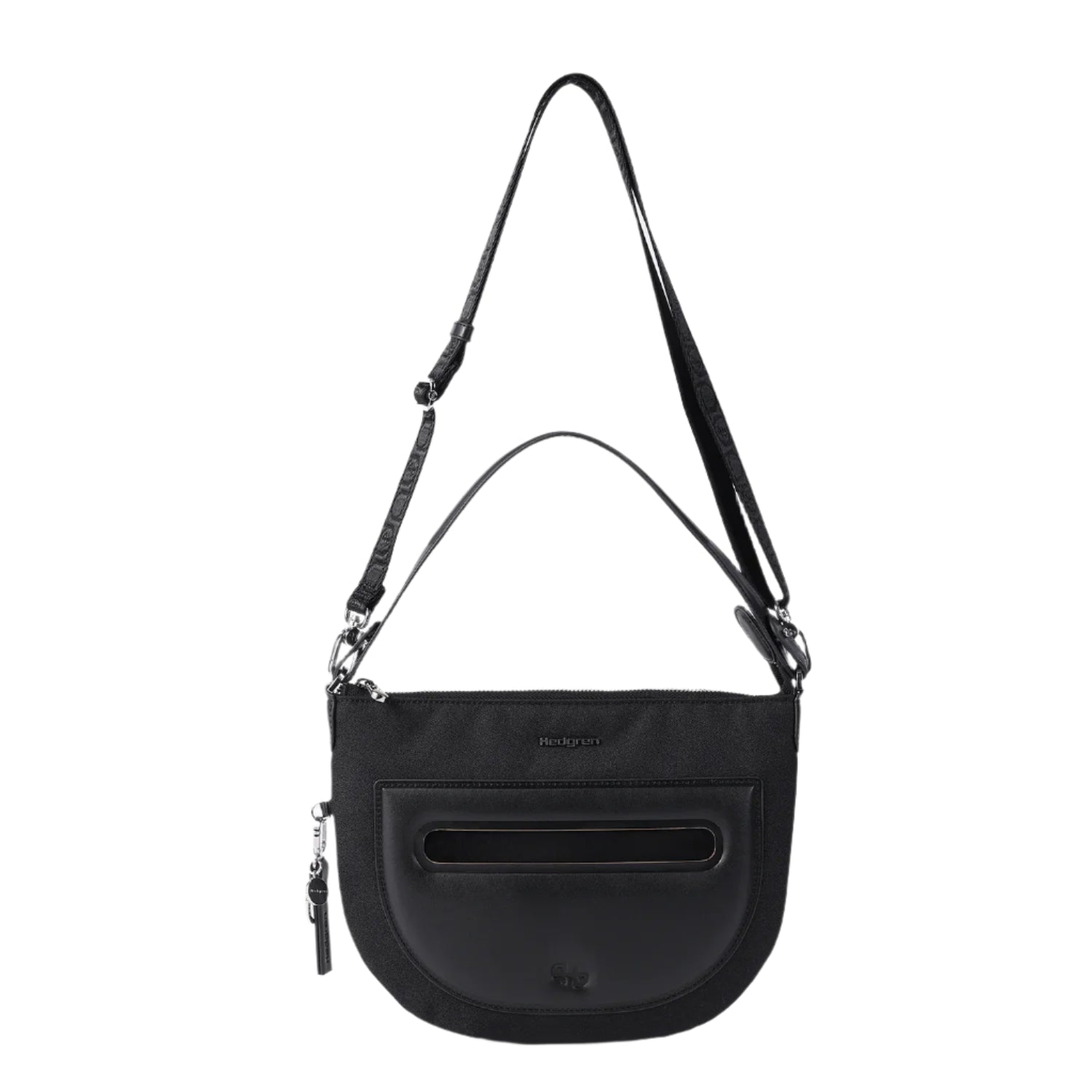 Fynda nuHedgren Bonbon L är en mångsidig och elegant halvmåneformad väska som smidigt växlar mellan vardag och kväll. Denna större version av Hedgrens populära halvmåneväska kombinerar trend, funktion och flexibilitet. Bär den tvärs över kroppen med den långa, avtagbara axelremmen för en avslappnad look, eller använd det korta handtaget i läderlook för en mer uppklädd stil.