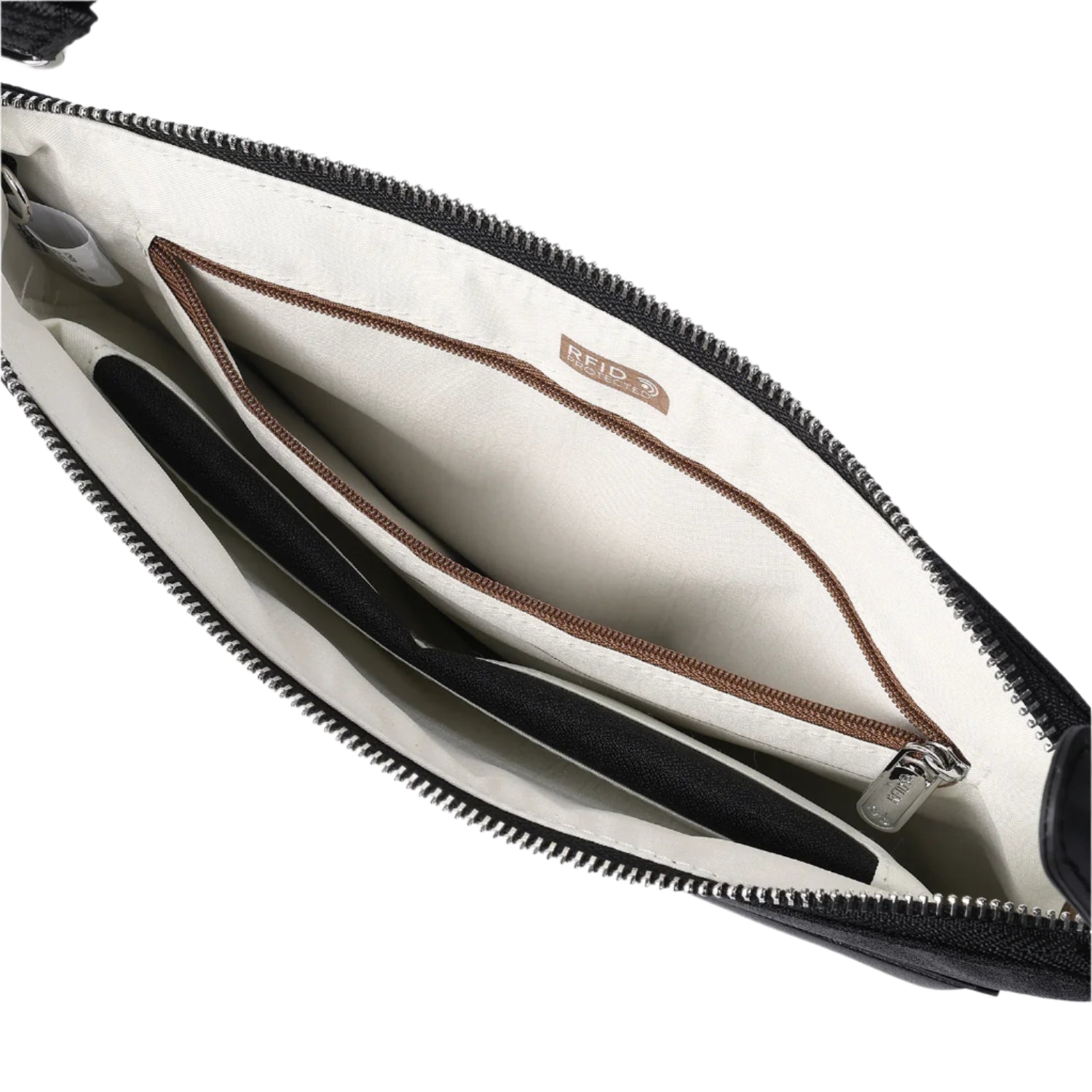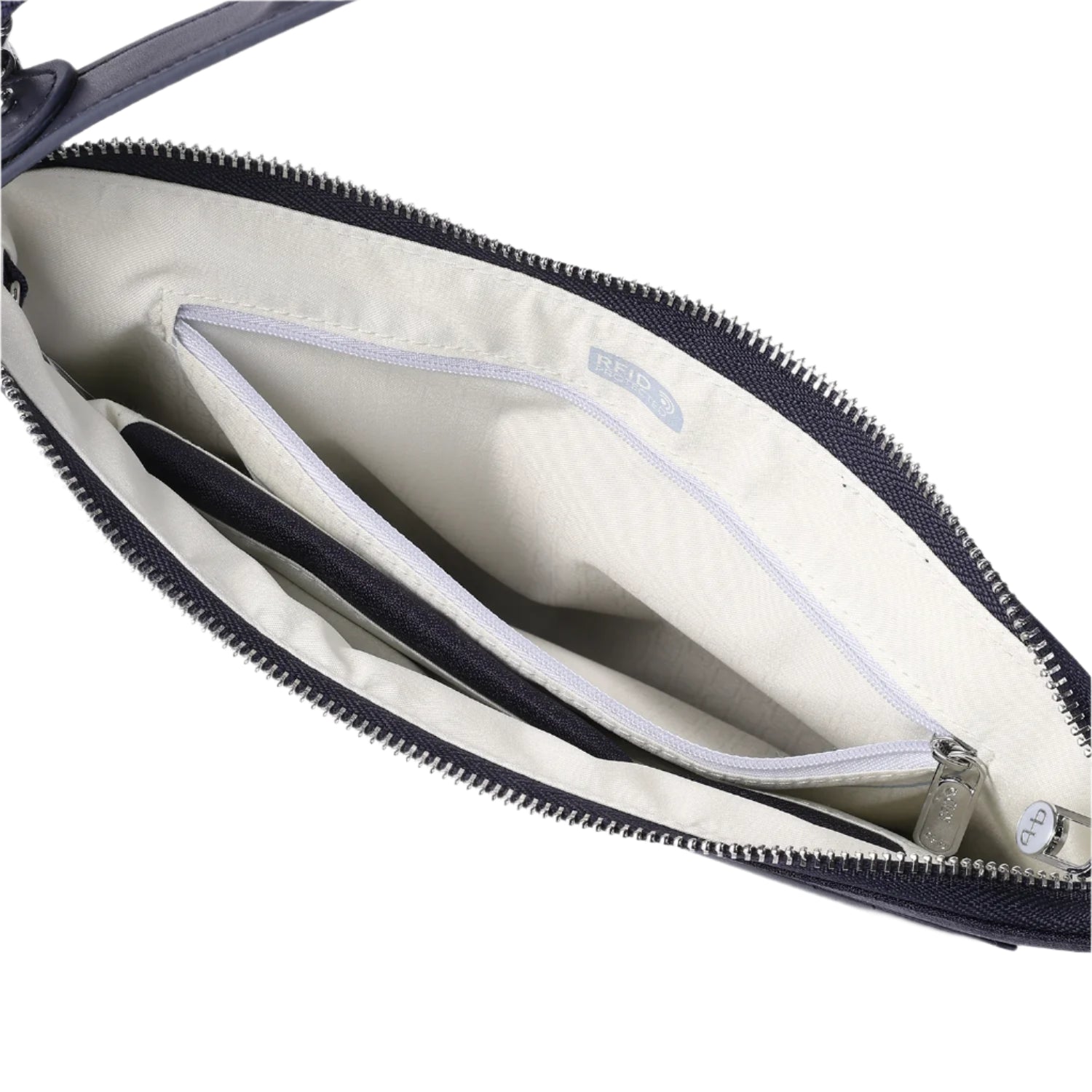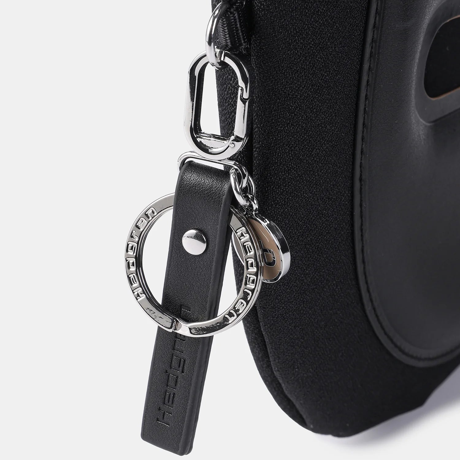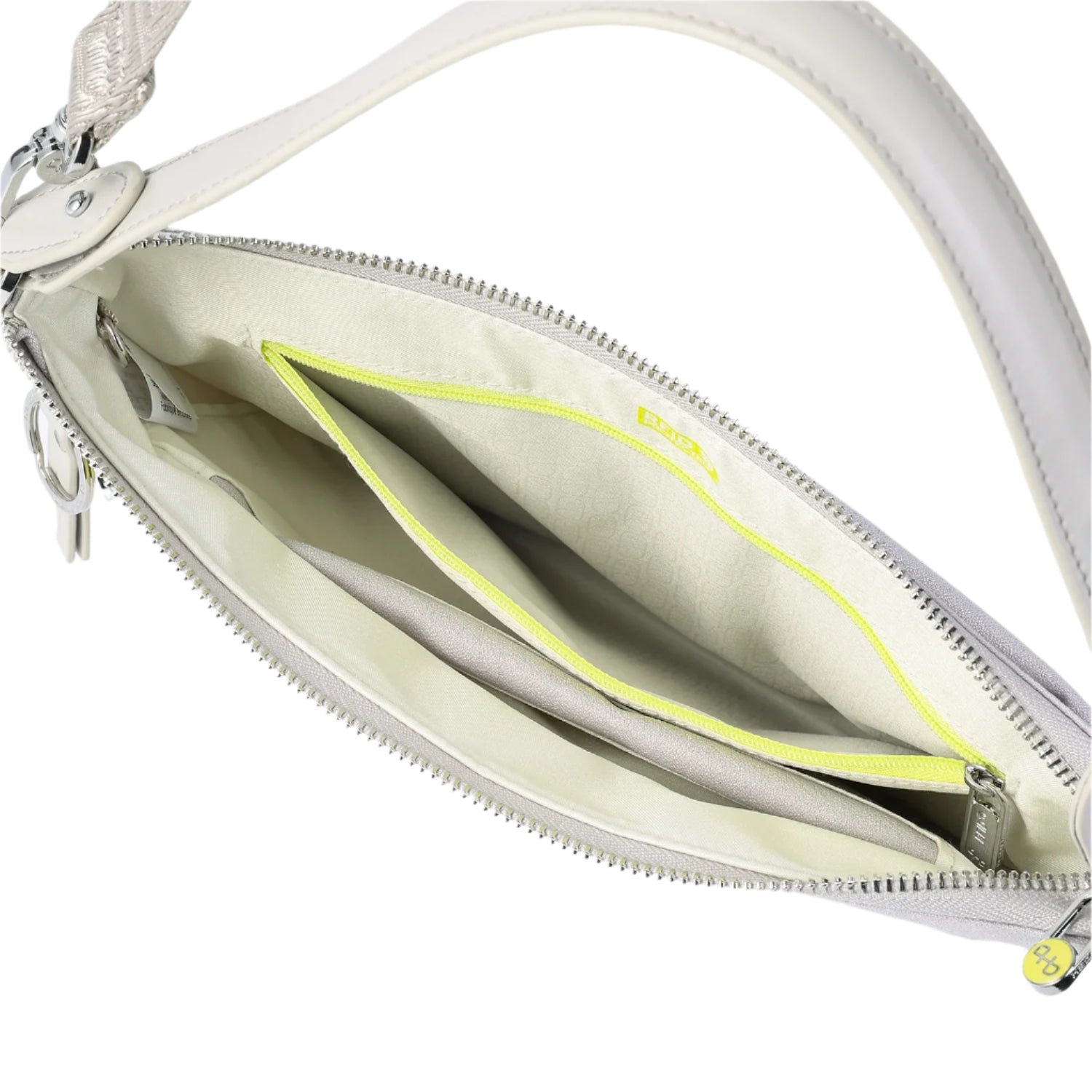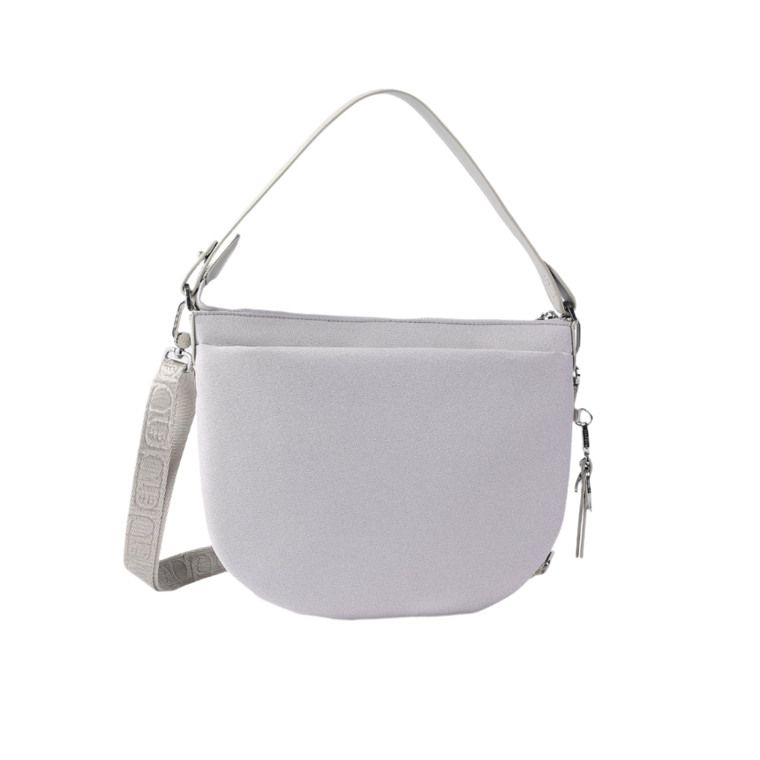 Väskan är tillverkad i mjukt, vattenavvisande återvunnet tyg och har rundade kanter samt stilrena metalldetaljer. Interiören är smart organiserad med ett vadderat mobilfack och en RFID-skyddad ficka för dina kort. Dessutom finns ett blixtlåsfack för extra säkerhet. På utsidan erbjuder väskan ett lättåtkomligt frontfack och en säkerhetsficka baktill nära kroppen.