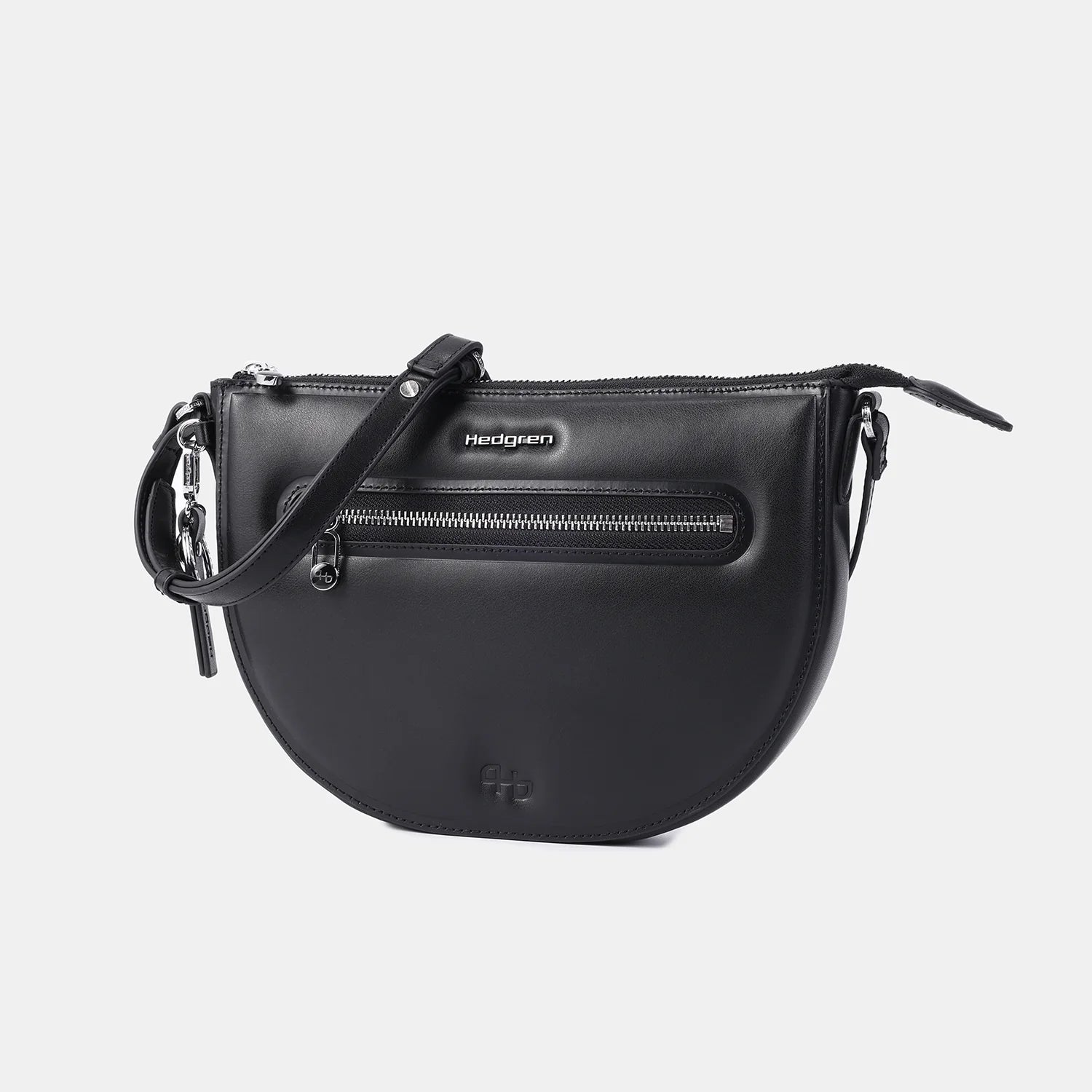 Hedgren Bonbon M+ är en trendig halvmåneformad crossbody-väska som kombinerar smart organisering med en stilren design. Den är perfekt för alla tillfällen och erbjuder en modern och avslappnad look. Väskan är tillverkad i mjukt veganskt PU-läder, vilket är delvis återvunnet, och har rundade kanter samt diskreta metalldetaljer.