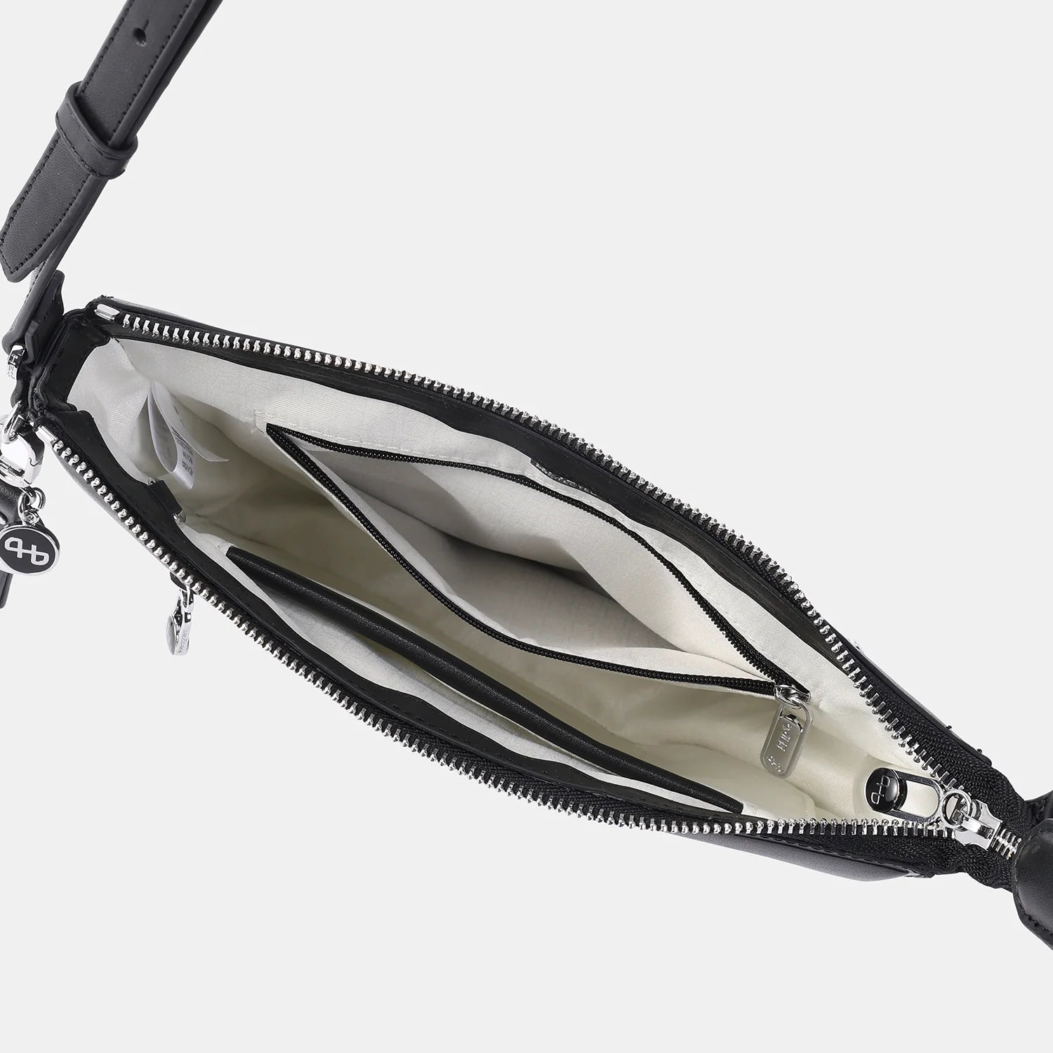 Denna medelstora väska är idealisk för dig som vill bära det viktigaste med stil. Invändigt finns ett vadderat mobilfack och en RFID-skyddad ficka för kort, vilket ger trygg förvaring. Dessutom finns ett blixtlåsfack för små tillhörigheter. Utsidan erbjuder en stor frontficka med dragkedja och en säkerhetsficka på baksidan.