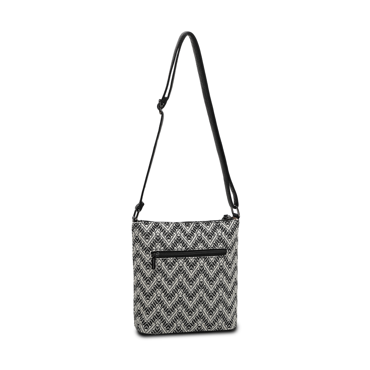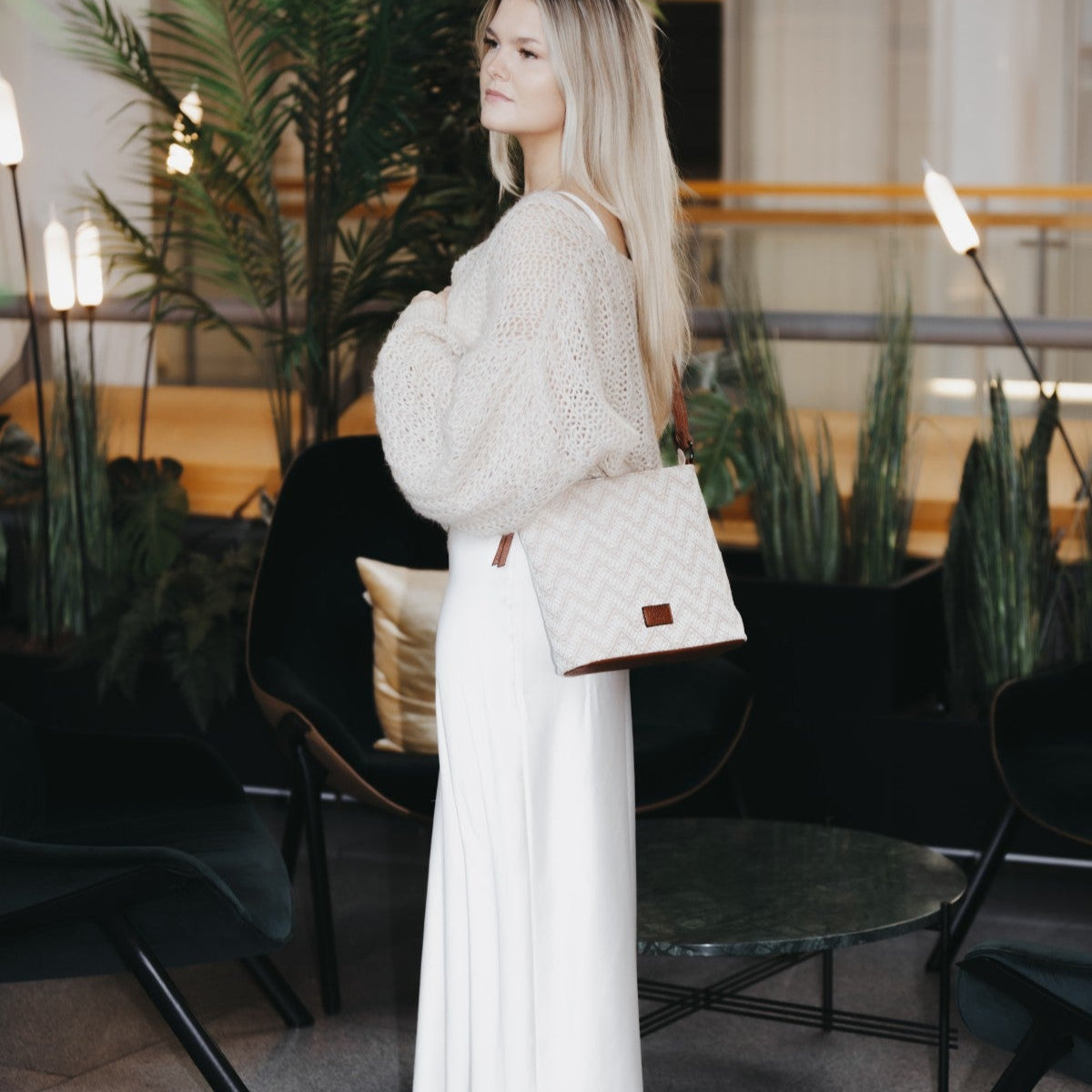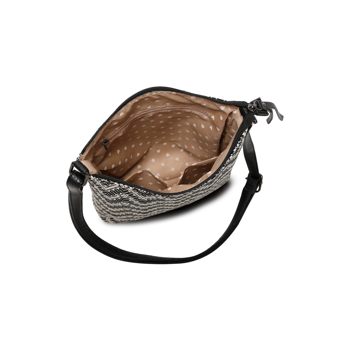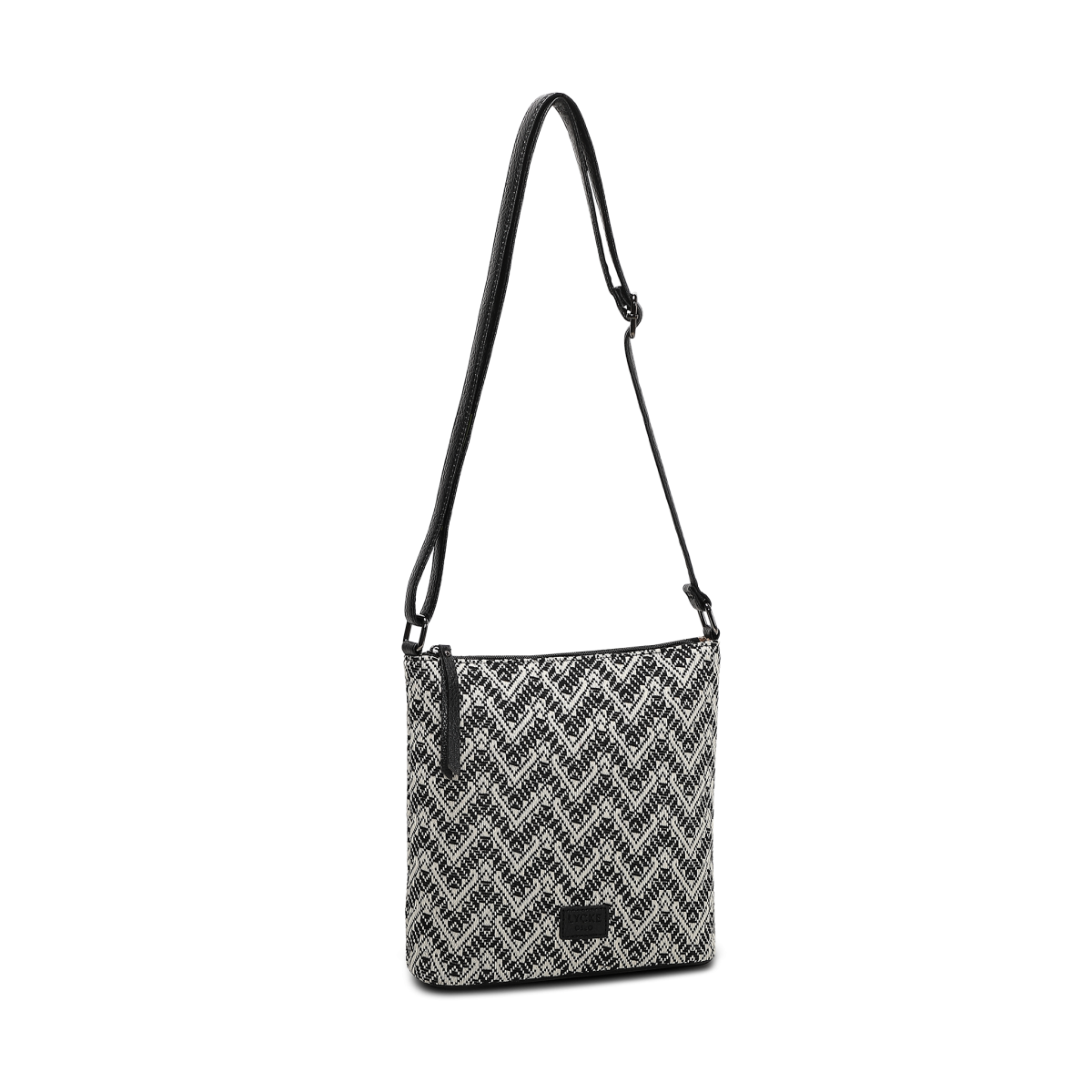Flora från Lycke Oslo är en crossover-väska som kombinerar stil och funktion. Den är tillverkad i ett grafiskt svartvitt mönstrad textil, vilket ger ett tidlöst uttryck med karaktär. Den moderna och luftiga känslan förstärks av dekorativa detaljer och en botten i mjuk, svart skinnimitation som är veganvänlig. Detta ger en fin kontrast och gör väskan till ett elegant val för både vardag och cityäventyr.