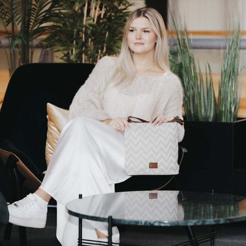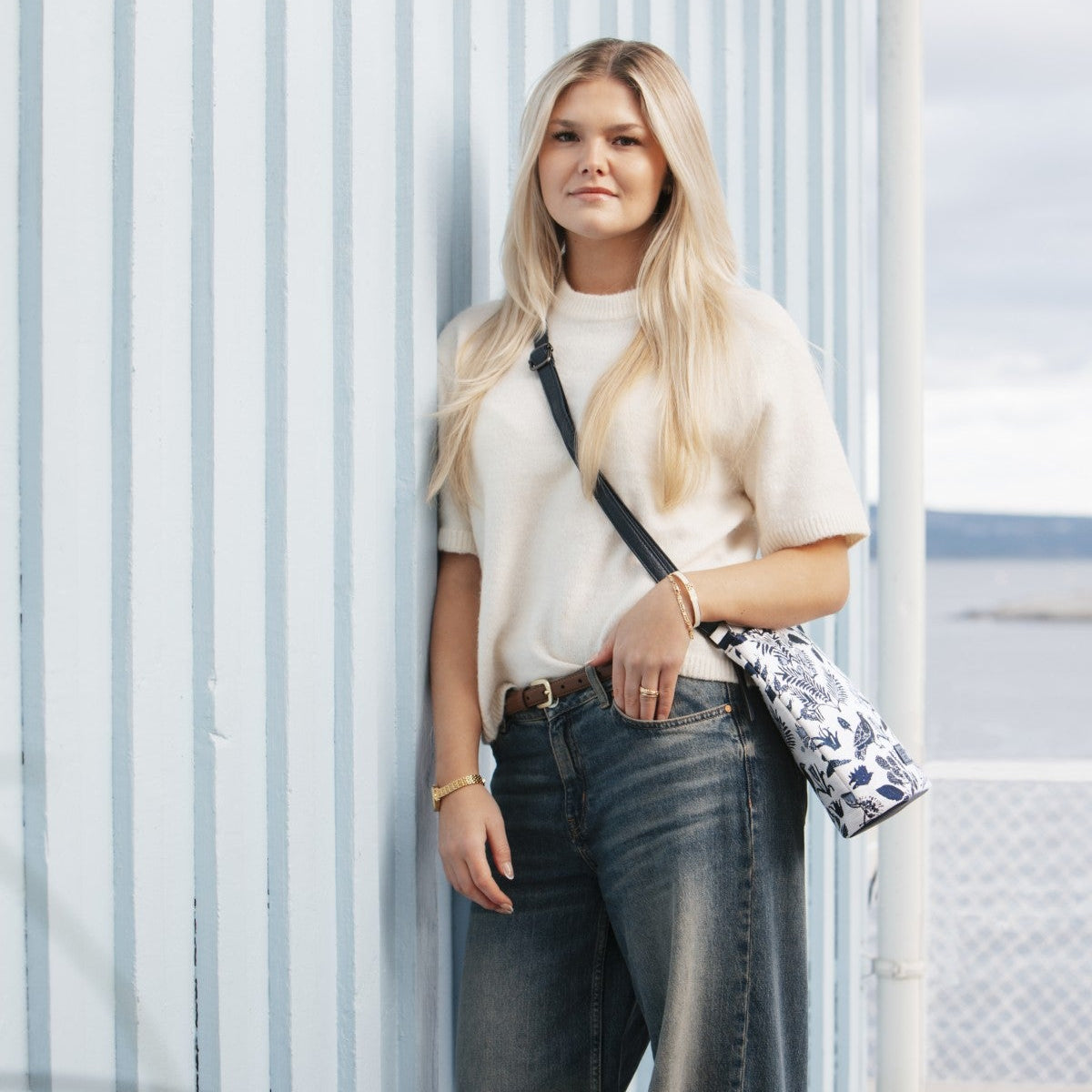 Fynda nuFlora från Lycke Oslo är en crossover-väska som kombinerar stil och funktion. Den är tillverkad i ett grafiskt svartvitt mönstrad textil, vilket ger ett tidlöst uttryck med karaktär. Den moderna och luftiga känslan förstärks av dekorativa detaljer och en botten i mjuk, svart skinnimitation som är veganvänlig. Detta ger en fin kontrast och gör väskan till ett elegant val för både vardag och cityäventyr.