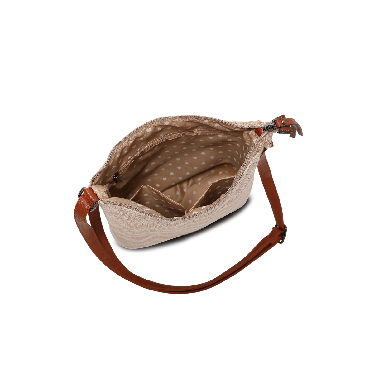 Väskan är utrustad med smart förvaring för att underlätta din vardag. Huvudfacket med dragkedja skyddar dina tillhörigheter, medan det invändiga blixtlåsfickan och de två öppna facken är perfekta för mobil och nycklar. På baksidan finns ett ytterfack med dragkedja för snabb åtkomst. Den justerbara och avtagbara axelremmen i skinnimitation gör att du kan bära väskan precis som du vill.
