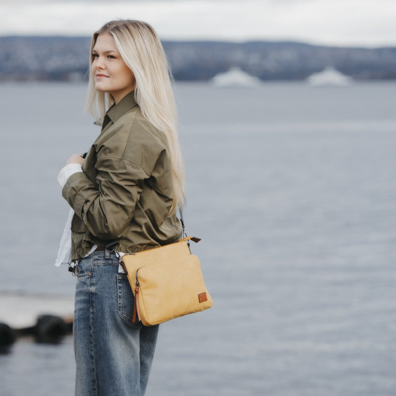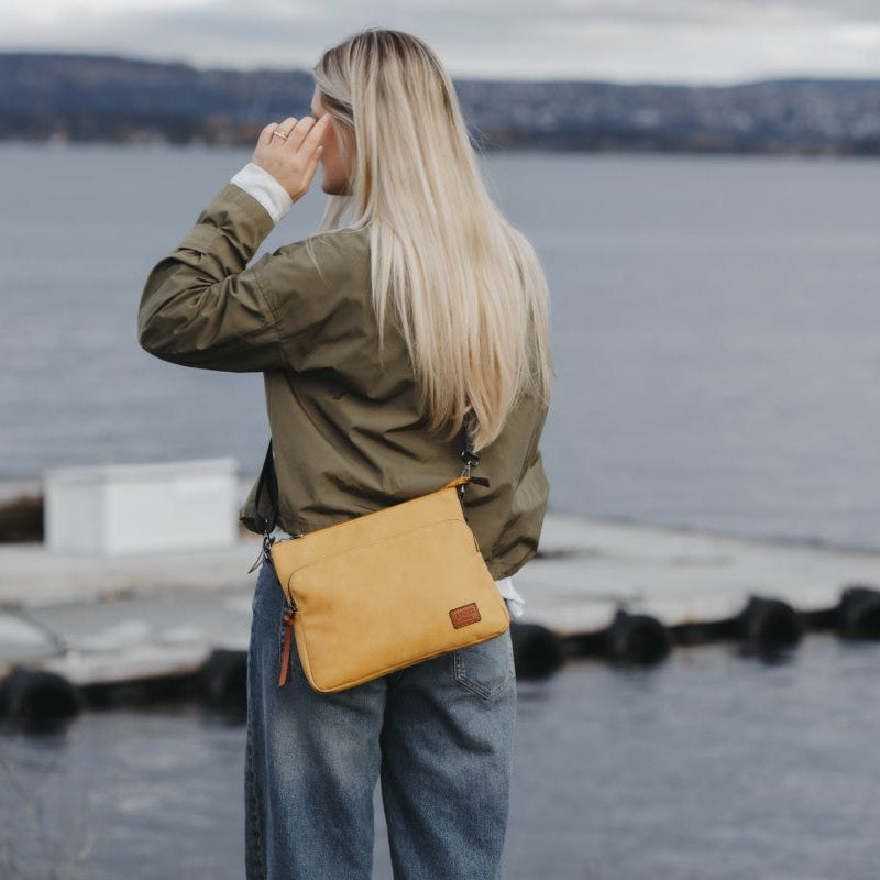 Fynda nuDenna crossoverväska från Lycke Oslo kombinerar funktionalitet med en stilren och sportig design. Tillverkad i mjuk skinnimitation med nubuckeffekt, erbjuder den en naturlig och exklusiv känsla. Väskan är helt veganvänlig, vilket gör den till ett utmärkt val för den medvetna konsumenten. Den nätta och slimmade formen gör den perfekt för att bära lätt och hålla koll på dina tillhörigheter.