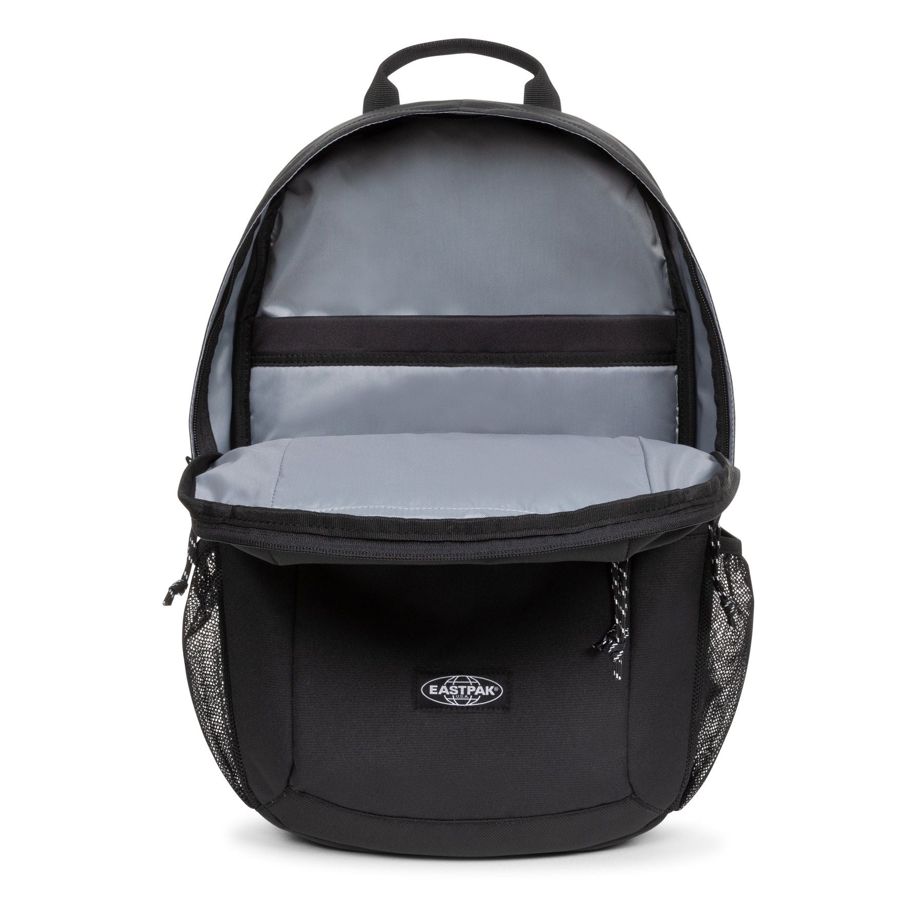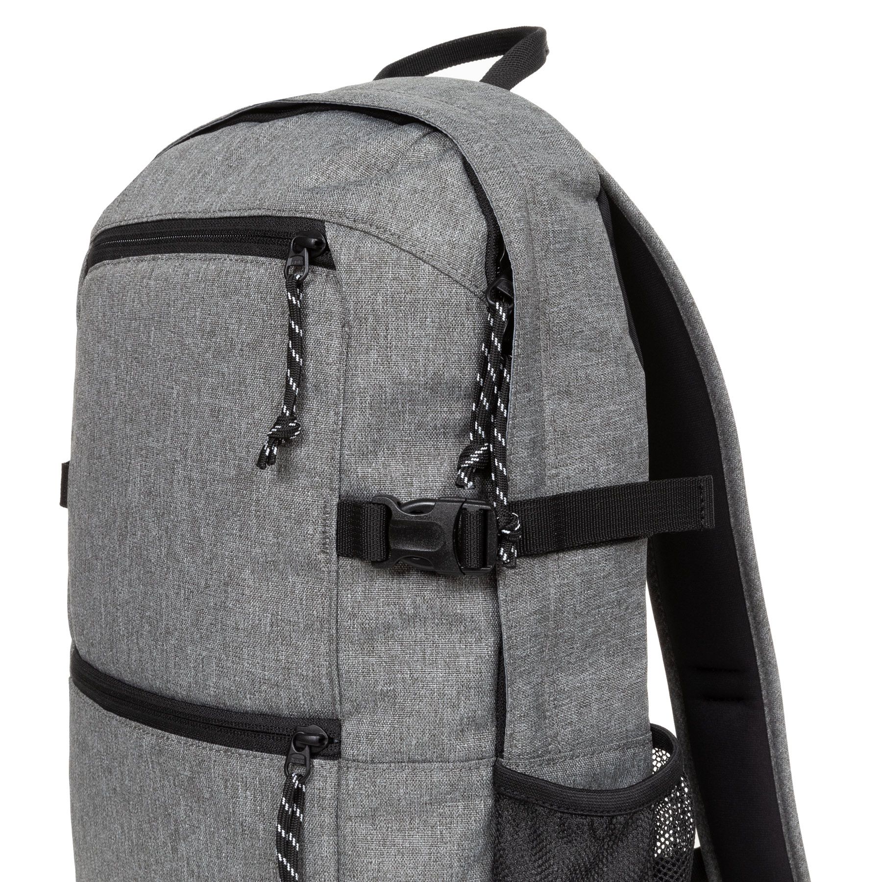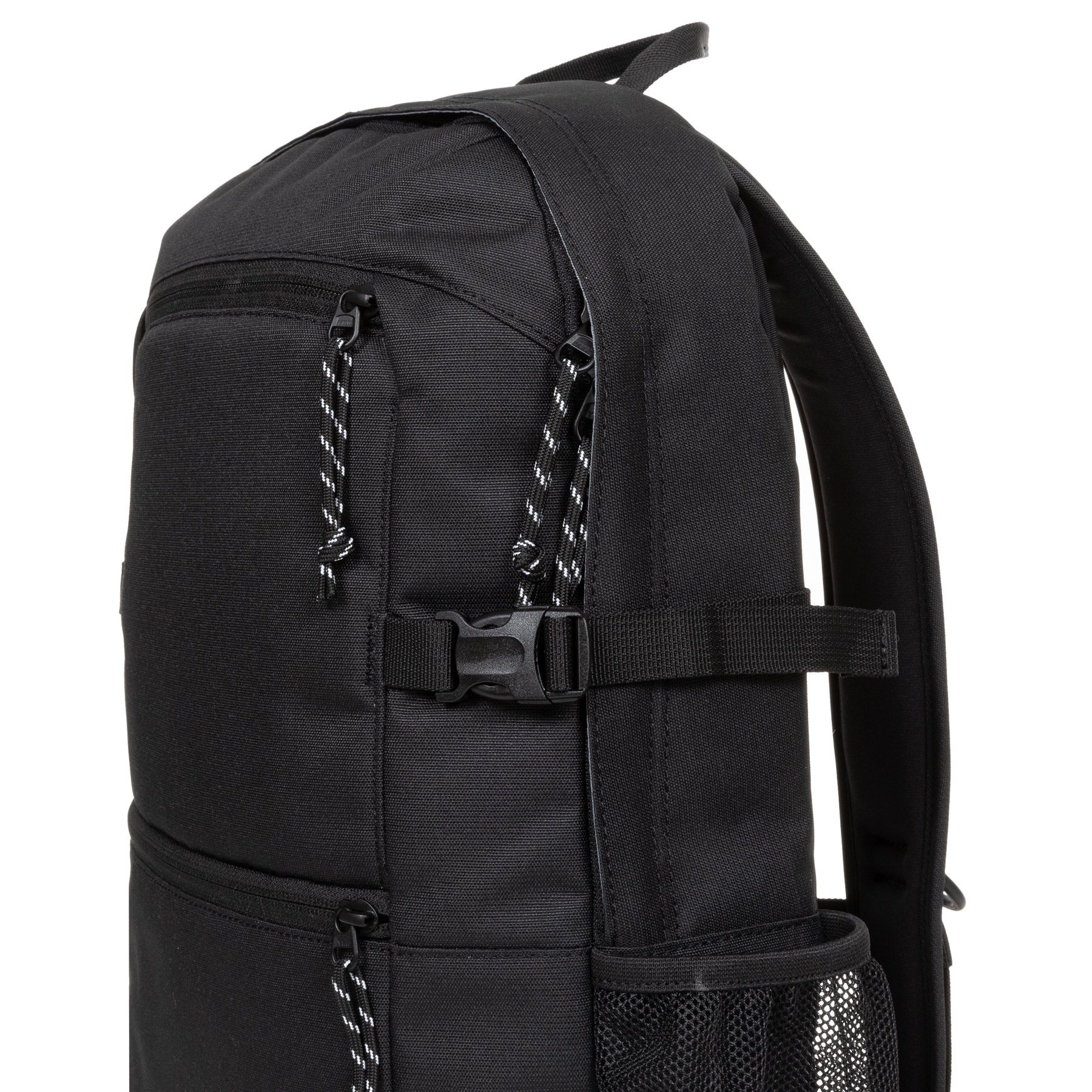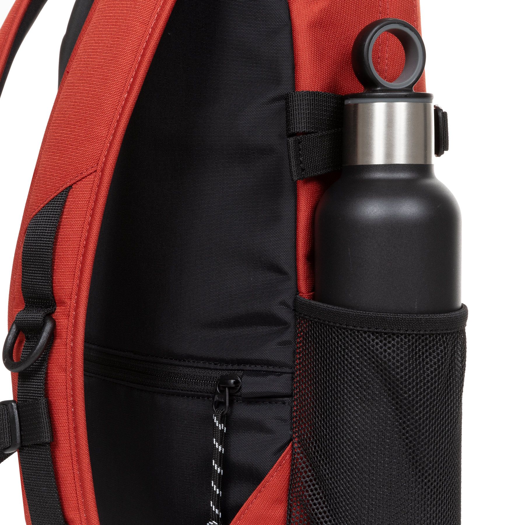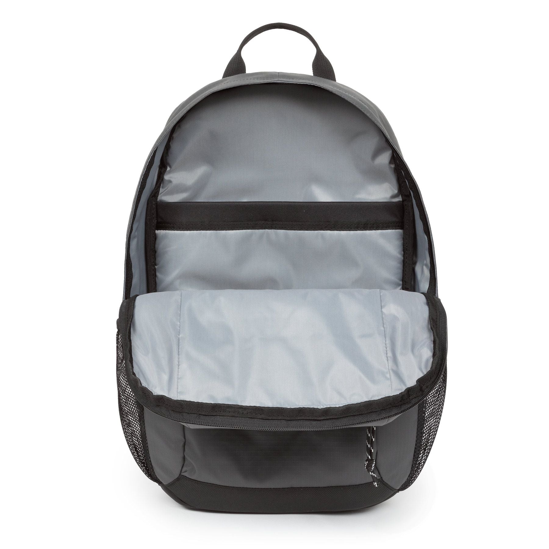 Ryggsäcken har en förstärkt botten för ökad hållbarhet samt två meshfickor på sidorna för vattenflaskor. Materialet är tillverkat i slitstark polyester med vattenresistent yta som skyddar innehållet mot lättare regn och smuts.