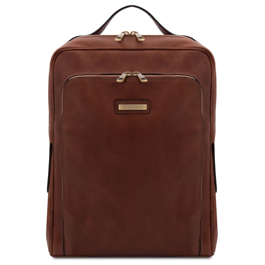 Tuscany Leather Bangkok Small är en ryggsäck i matt fullnarvat handbetsat vegetabiliskt garvat läder. Den halvstyva strukturen gör att väskan håller sin form samtidigt som den är smidig och bekväm att använda. På utsidan finns en framficka med stängning, en praktisk bakficka samt en metallplatta med Toscana-logotypen som framhäver väskans exklusiva karaktär. Kombinationen av borstad mässingstonad hårdvara, silvertonade detaljer och YKK-metalldragkedjor förhöjer känslan av italienskt hantverk och kvalitet.