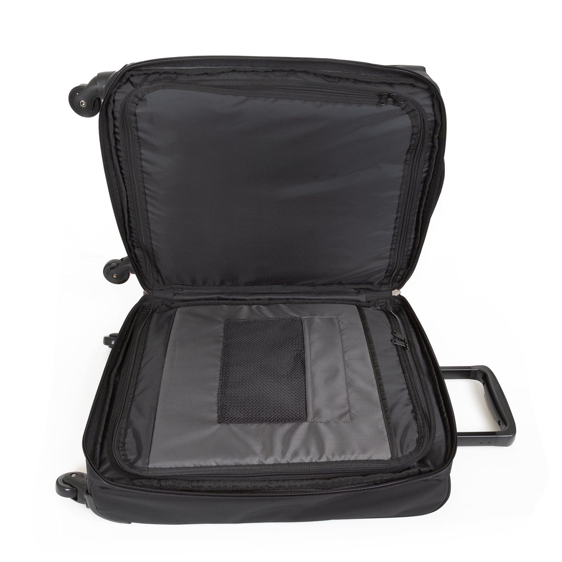Eastpak CNNCT F Wheel är den perfekta resväskan för den urbana resenären. Med sin eleganta design i svart och sin rymliga interiör kombinerar den affärsresans krav med vardagens flexibilitet. Fyra 360° hjul och teleskophandtag ger smidig manövrering i alla lägen.
