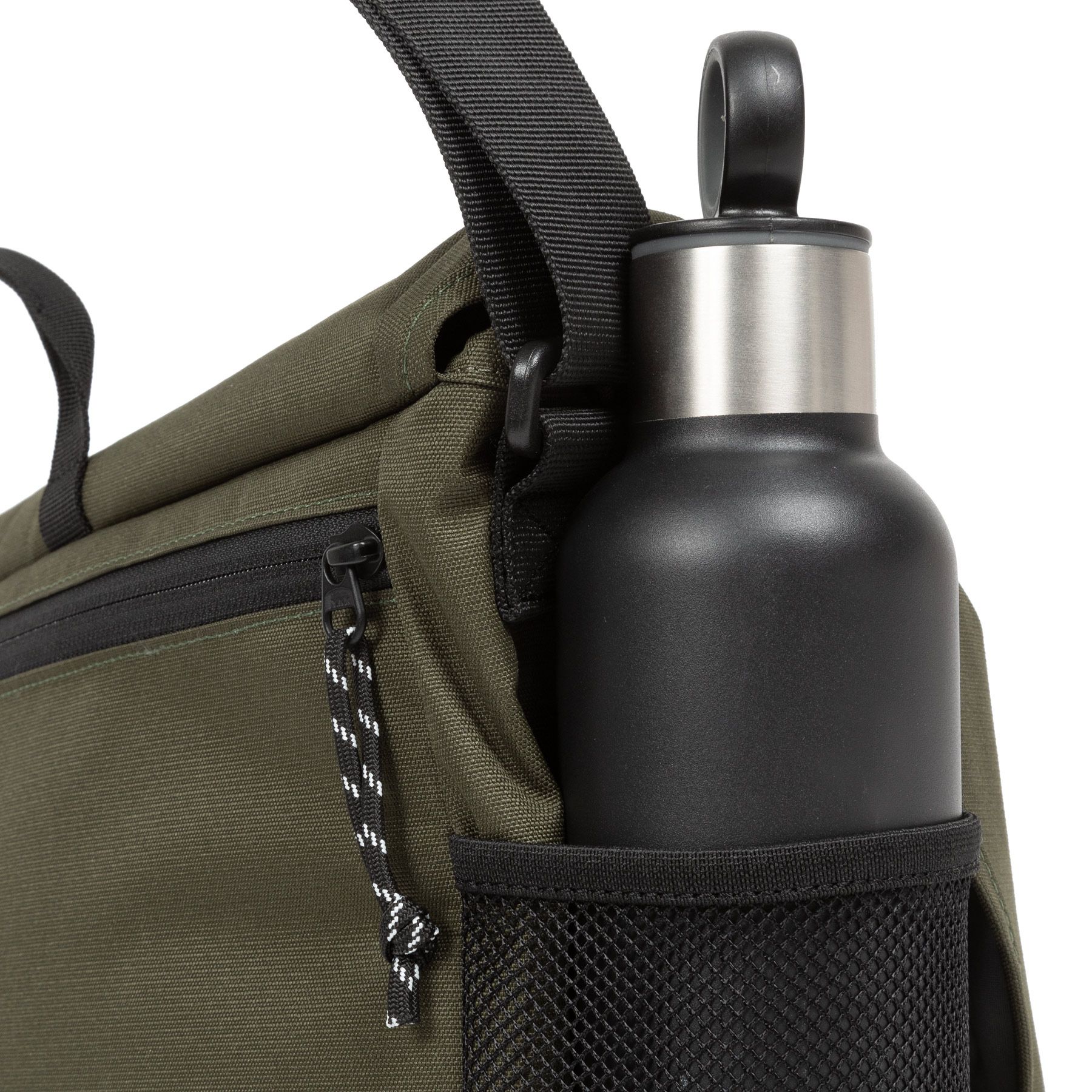 Med snabbspännen och dragkedja får du enkel tillgång till huvudfacket. Inuti finns ett organiseringssystem med nätficka med dragkedja, och på utsidan två flaskhållare samt en krok för nycklar i frontfickan.