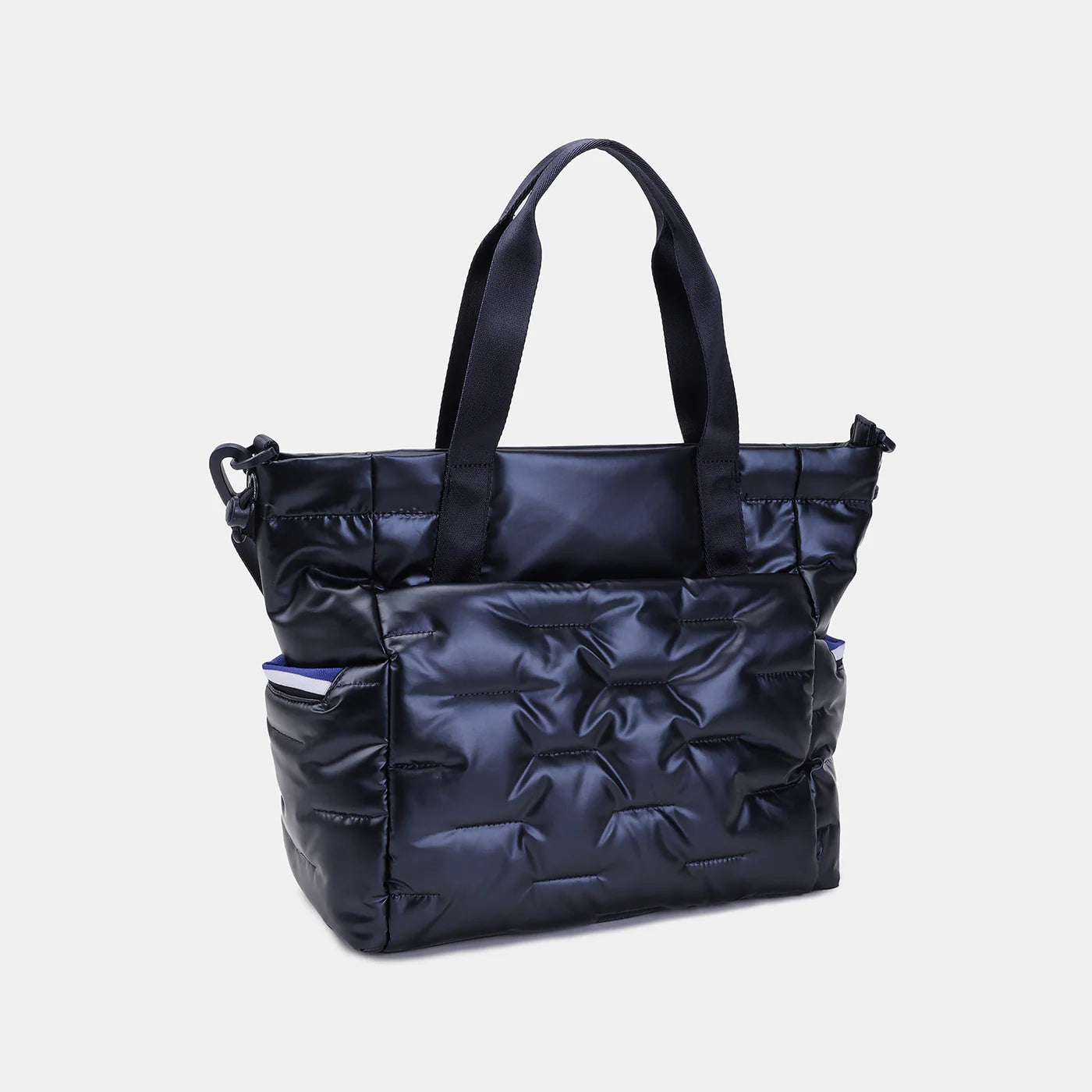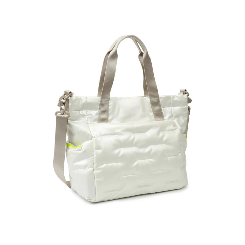 Puffer Tote är utformad för att rymma både böcker, dokument och vardagsprylar. Inuti väskan finns ett dedikerat fack för vattenflaska, mobilficka, öppna sidofack och en praktisk vattentät innerpåse. Nyckelkrok och dolda blixtlåsfickor säkerställer att dina värdesaker hålls på plats, vilket gör den till en perfekt quiltad vardagsväska för jobb, skola eller cityhäng.