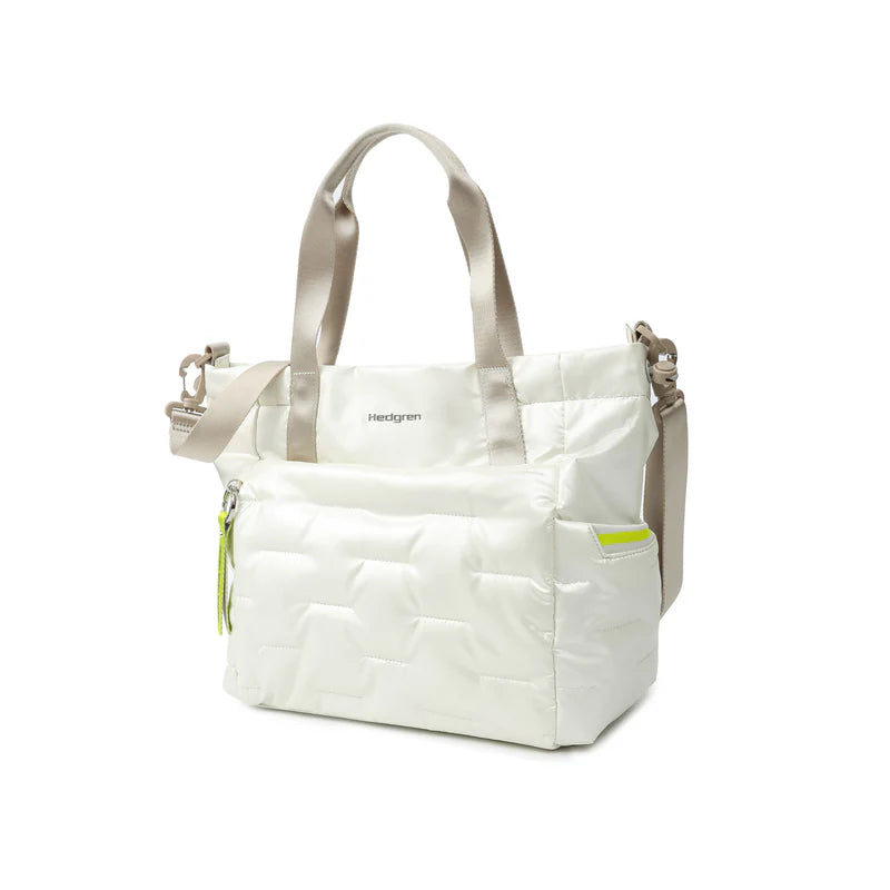 Hedgren Puffer Tote är en rymlig och quiltad totebag som kombinerar stil och komfort med smart förvaring. Med sin lyxigt vadderade design och vattenavvisande ytbehandling är denna väska både praktisk och snygg, vilket gör den idealisk för vardagens äventyr. Inspirerad av naturens färger och subtila kontrastdetaljer, ger den en avslappnad men elegant look till din outfit.