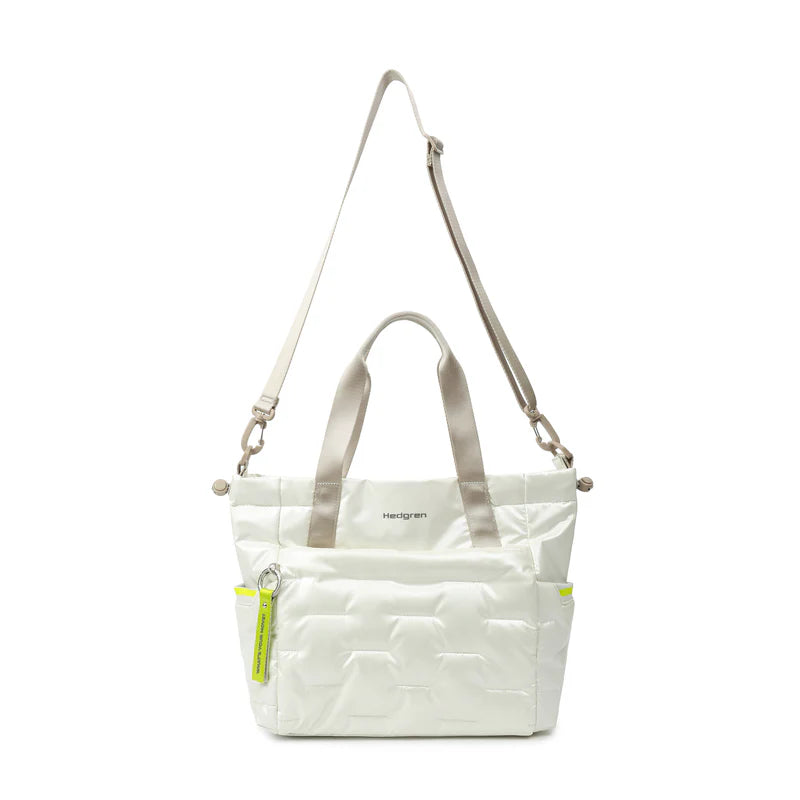 Fynda nuHedgren Puffer Tote är en rymlig och quiltad totebag som kombinerar stil och komfort med smart förvaring. Med sin lyxigt vadderade design och vattenavvisande ytbehandling är denna väska både praktisk och snygg, vilket gör den idealisk för vardagens äventyr. Inspirerad av naturens färger och subtila kontrastdetaljer, ger den en avslappnad men elegant look till din outfit.