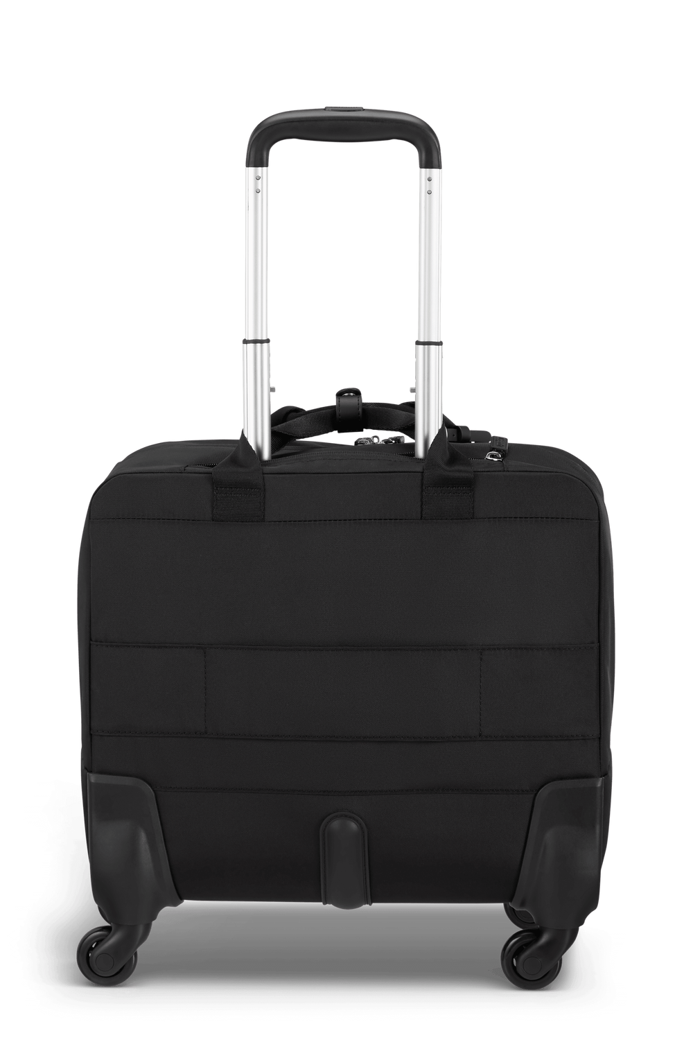 Växla enkelt mellan rullväska och bärbar datorväska med teleskopskaft, vadderade mesh-axelremmar som göms undan och fyra smidiga hjul. En låsbar kombinationsdragkedja och integrerad adressetikett ökar säkerheten, och smart sleeve-funktionen gör den enkel att fästa på kabinbagage.
