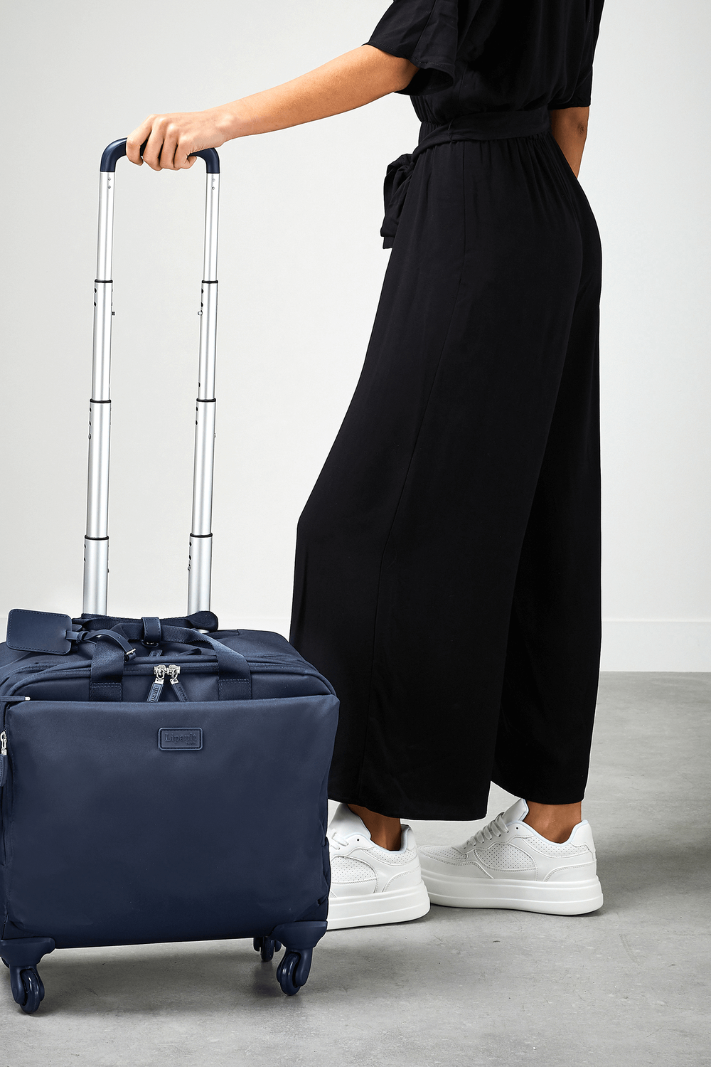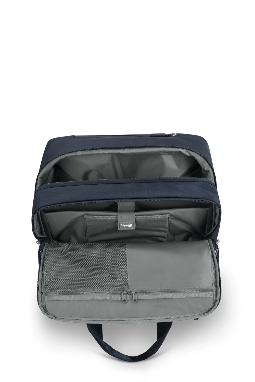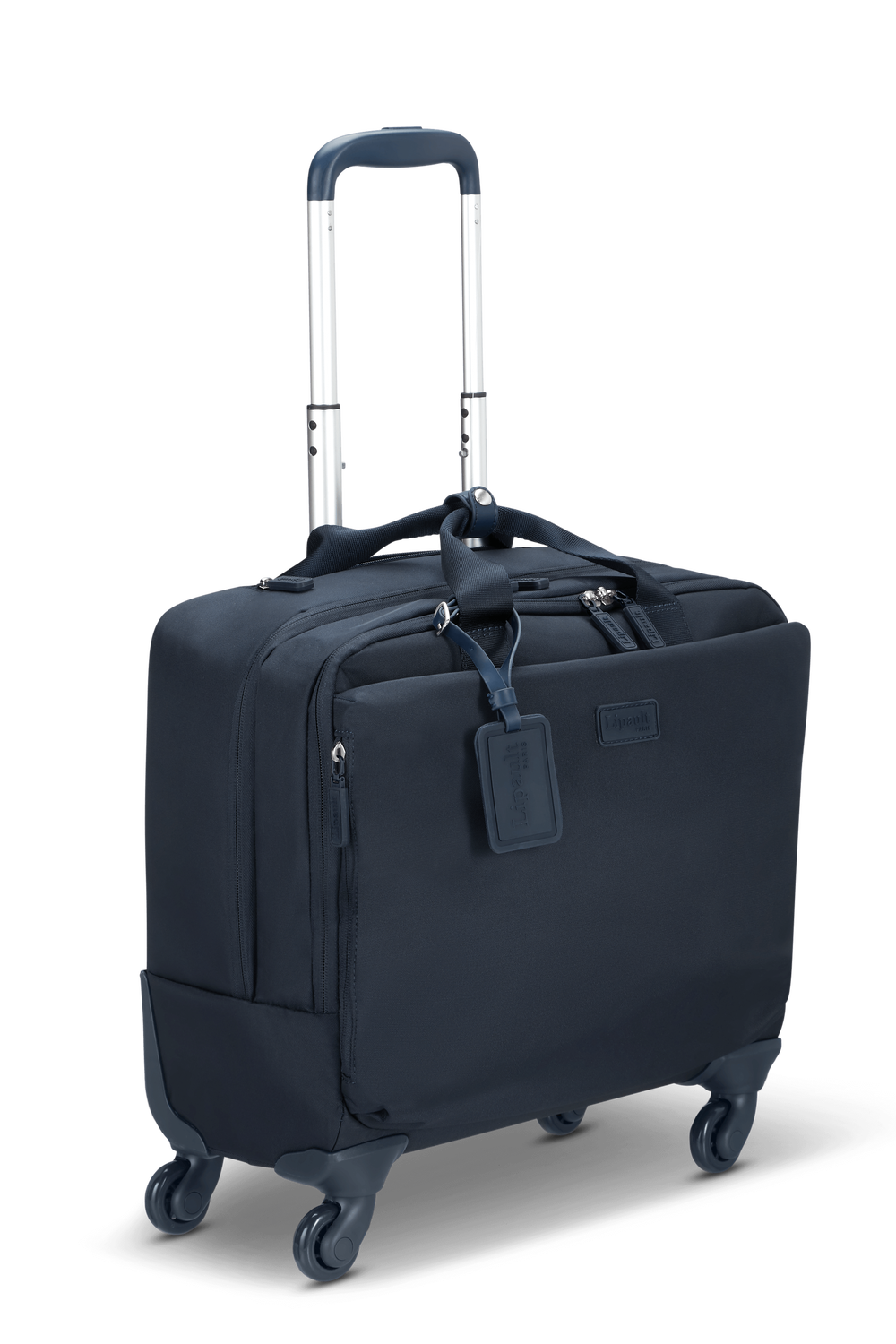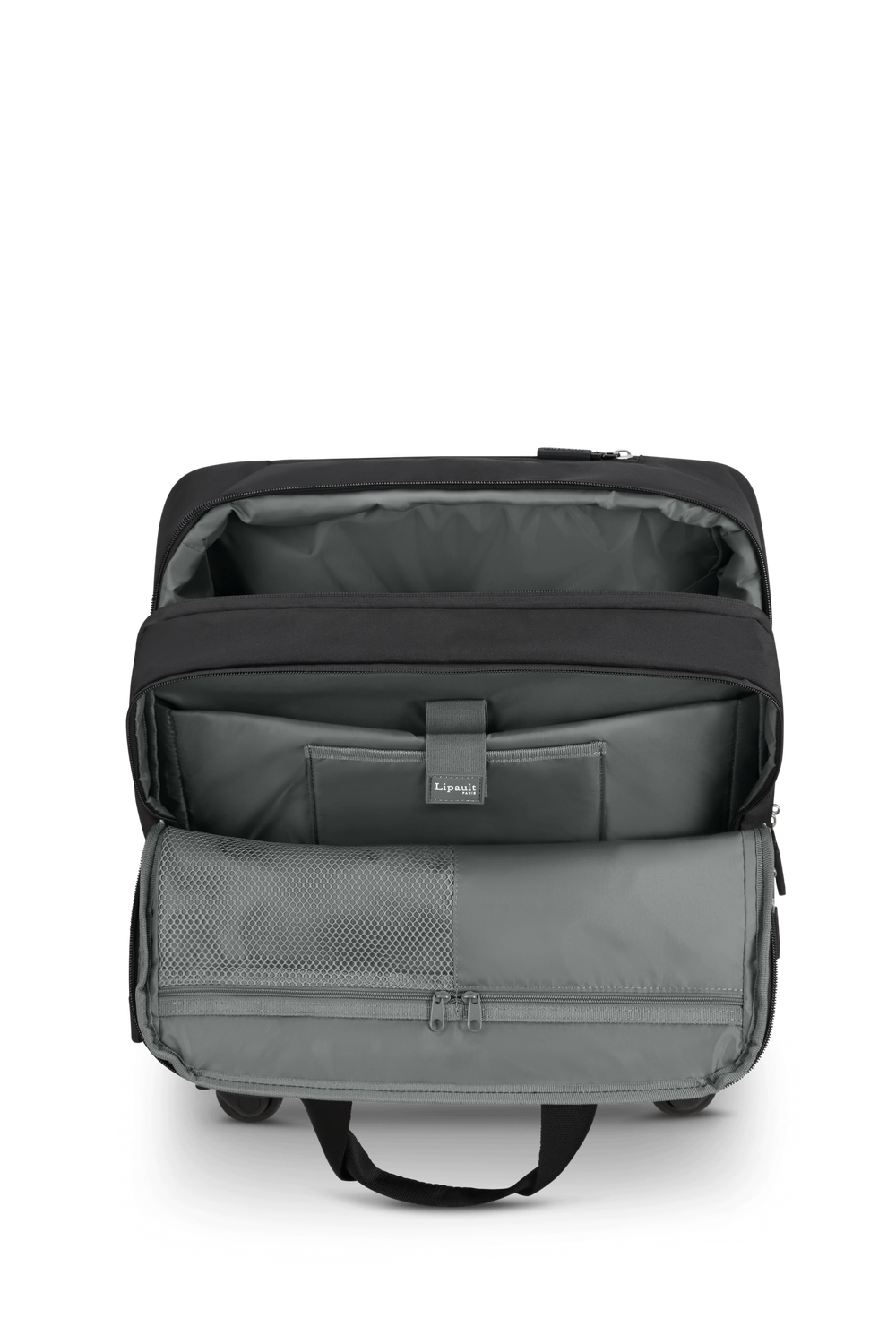 Tillverkad i återvunnen PET‑polyester med vattenavvisande ytbehandling, kombinerar Lipault 4BIZ Datorväska med hjul hållbarhet och funktion. Utrustad med fyra multidirektionella hjul och teleskopskaft, samt två frontfack med dragkedja, smart sleeve-funktion och topphandtag för flexibel transport.