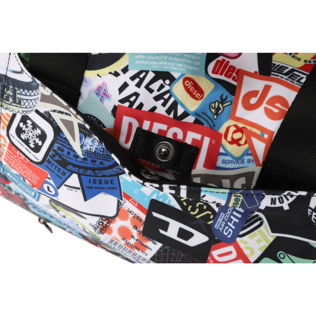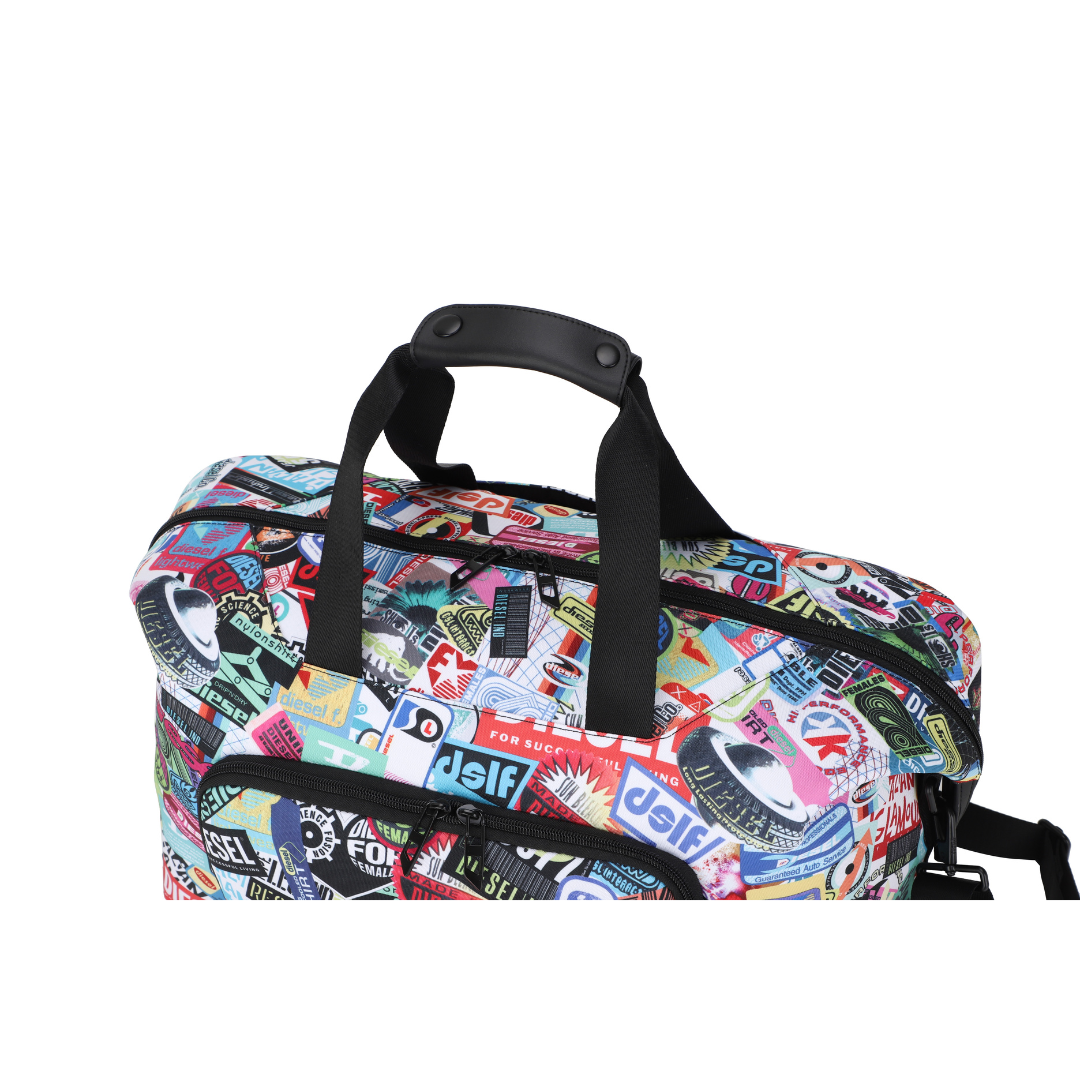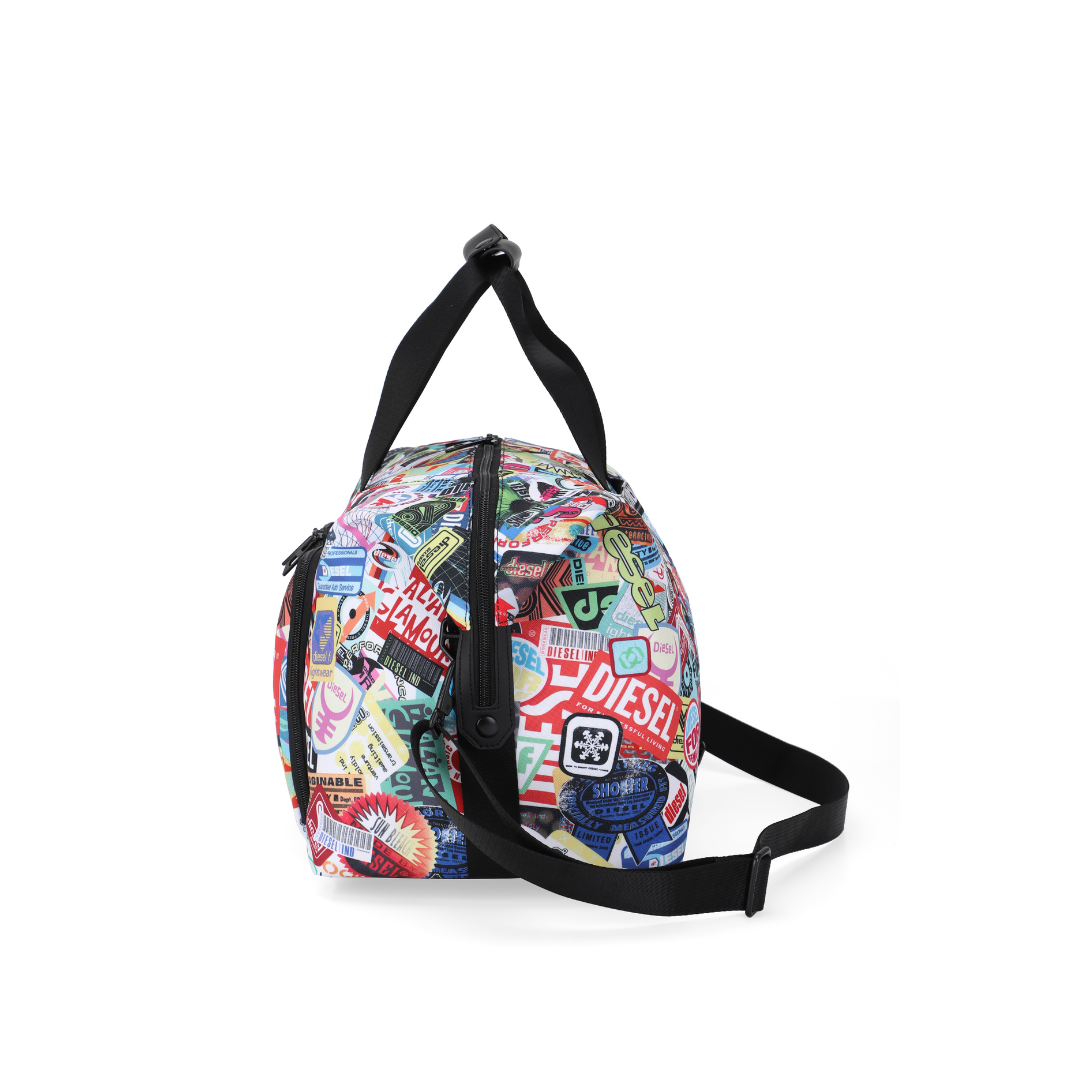 DIESEL DSL-3D är en duffelväska med ett avslappnat och iögonfallande uttryck där sticker-inspirerade mönster kombineras med Diesels klassiska logotyp och grafiska prints. Det släta polyestertyget ger väskan en lätt och följsam känsla samtidigt som designen sticker ut i både vardagliga och mer resrelaterade sammanhang.