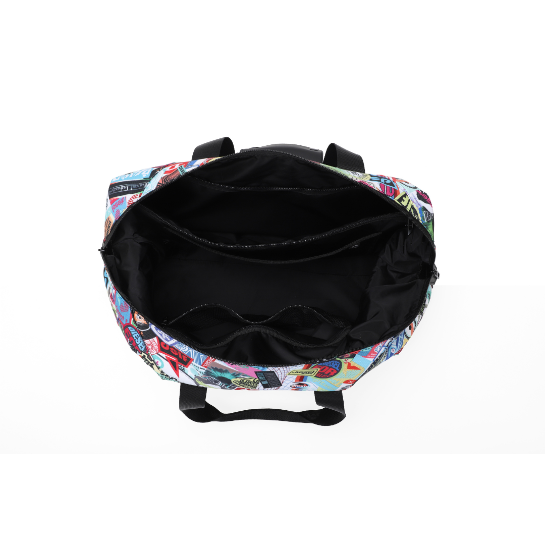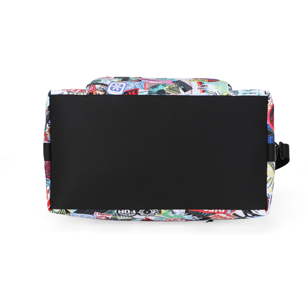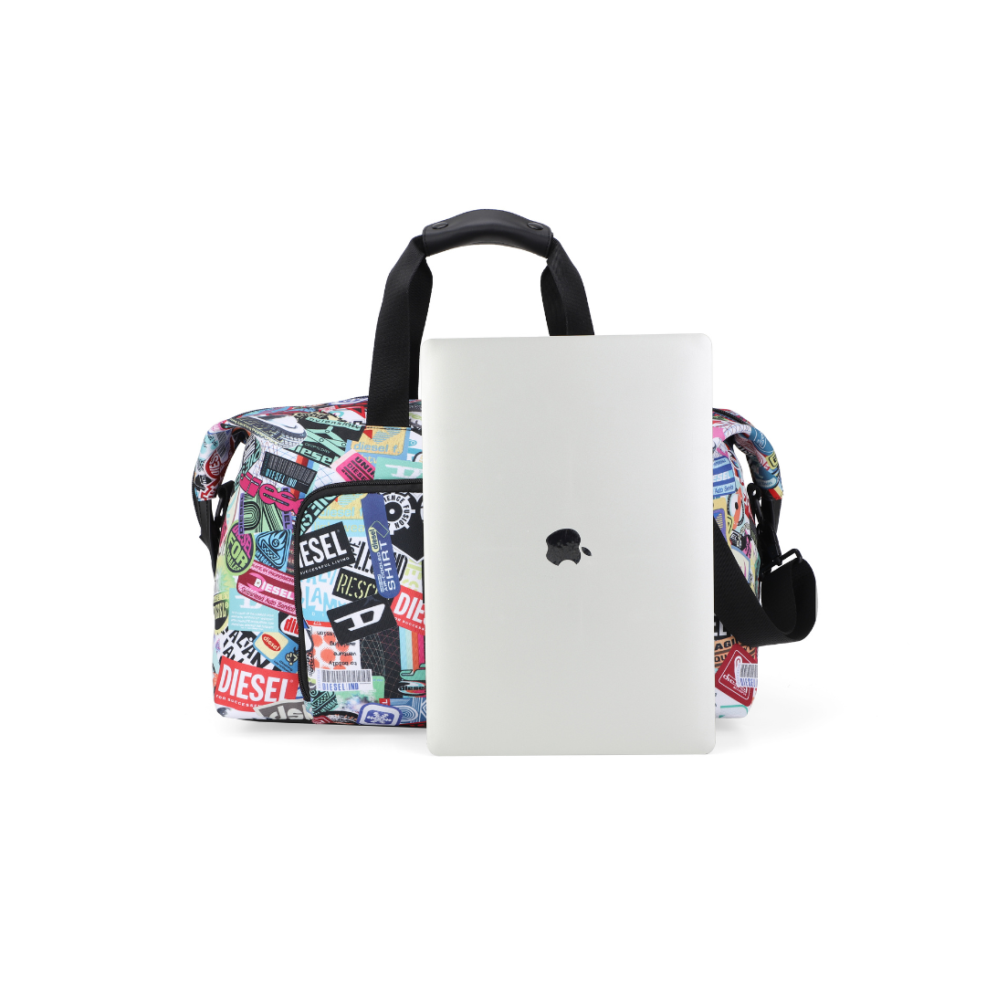 DIESEL DSL-3D är en duffelväska med ett avslappnat och iögonfallande uttryck där sticker-inspirerade mönster kombineras med Diesels klassiska logotyp och grafiska prints. Det släta polyestertyget ger väskan en lätt och följsam känsla samtidigt som designen sticker ut i både vardagliga och mer resrelaterade sammanhang.
