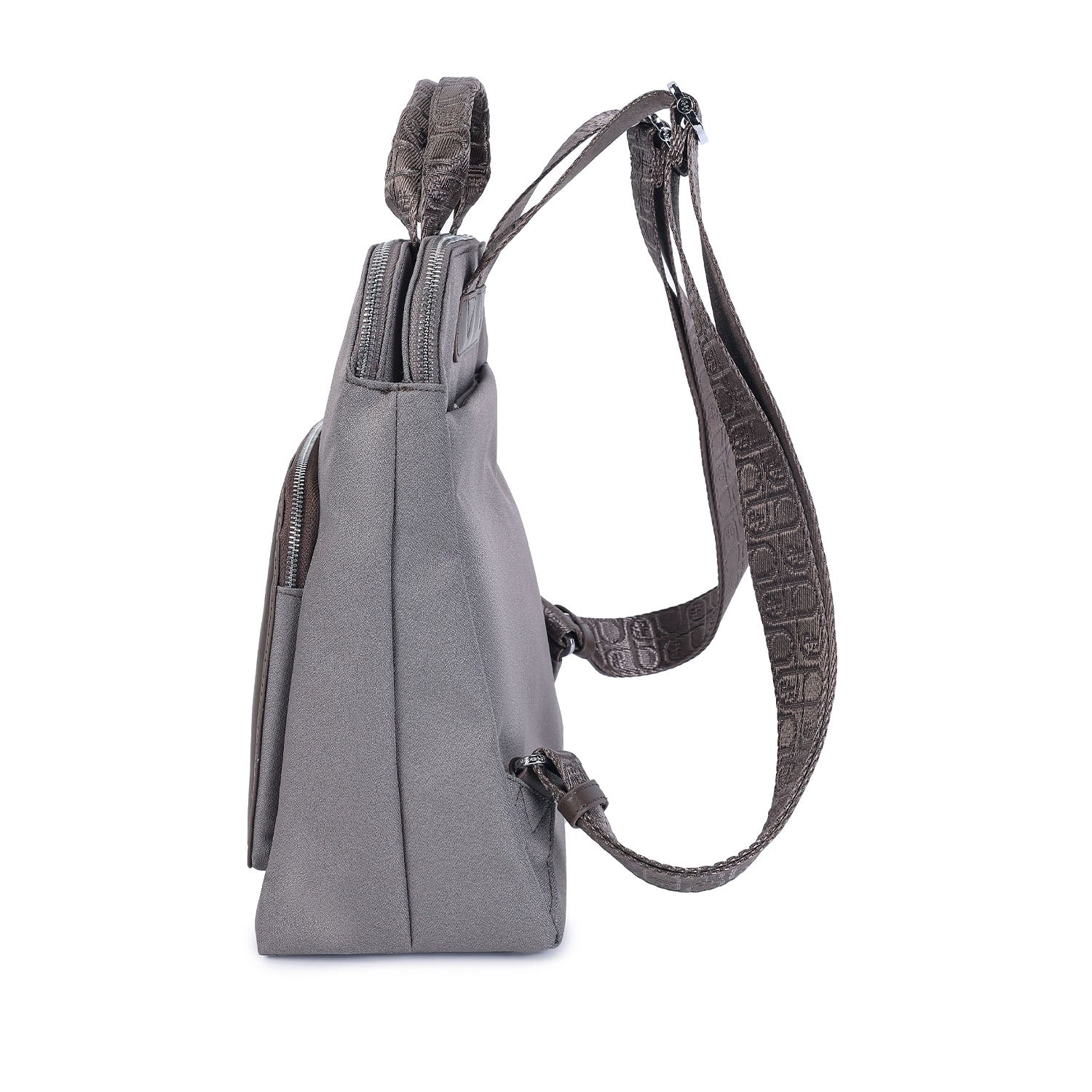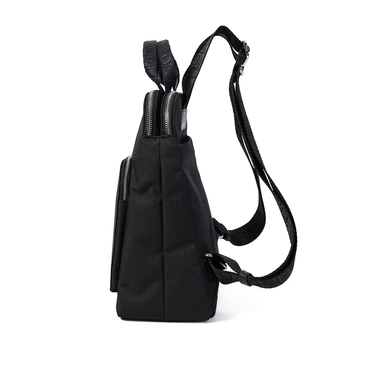 Denna ryggsäck erbjuder en mängd praktiska funktioner för den organiserade användaren. Utsidan har två fickor på framsidan, en säkerhetsficka på baksidan och en magnetiskt stängd ficka i mitten. De justerbara axelremmarna och den avtagbara metallnyckelhängaren ger extra flexibilitet och bekvämlighet.