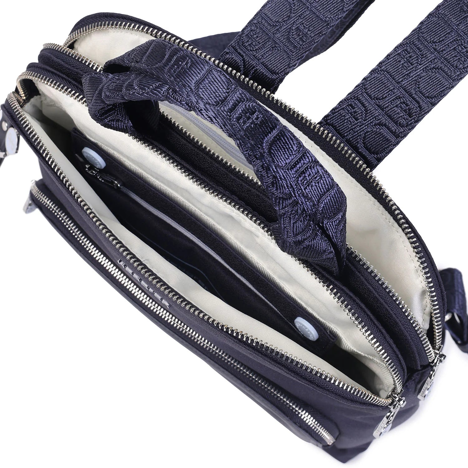 Inuti ryggsäcken finns två huvudfack med dragkedja som erbjuder gott om förvaringsutrymme. En vadderad ficka för mobilen, en multifunktionell ficka och en RFID-säkerhetsficka skyddar dina personuppgifter. Dessutom finns en avtagbar påse för mindre tillhörigheter, vilket gör det enkelt att hålla ordning.