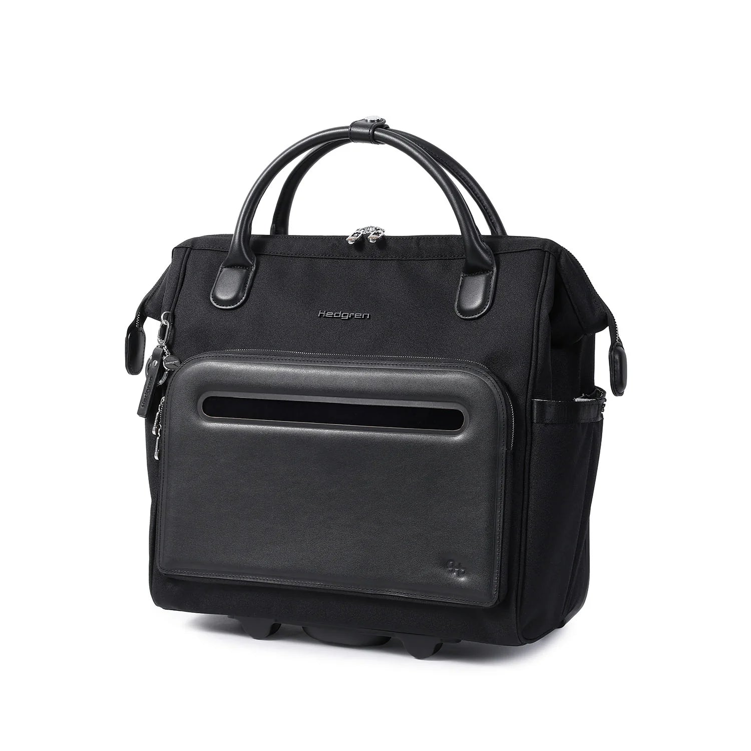 Med Venti Rolling Tote från Hedgren kan du enkelt navigera genom flygplatser med stil. Denna kabinväska är tillverkad av vattentåliga, återvunna material som ger både hållbarhet och elegans. Den smarta sleeve-funktionen gör det möjligt att hänga väskan över handtaget på din resväska, vilket underlättar resandet. Dessutom har väskan en unik framficka med en klar, dammtålig panel som skyddar dina tillhörigheter.
