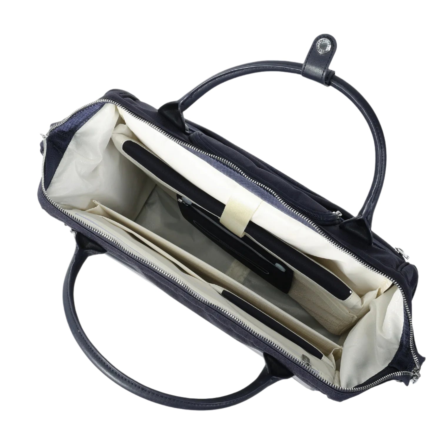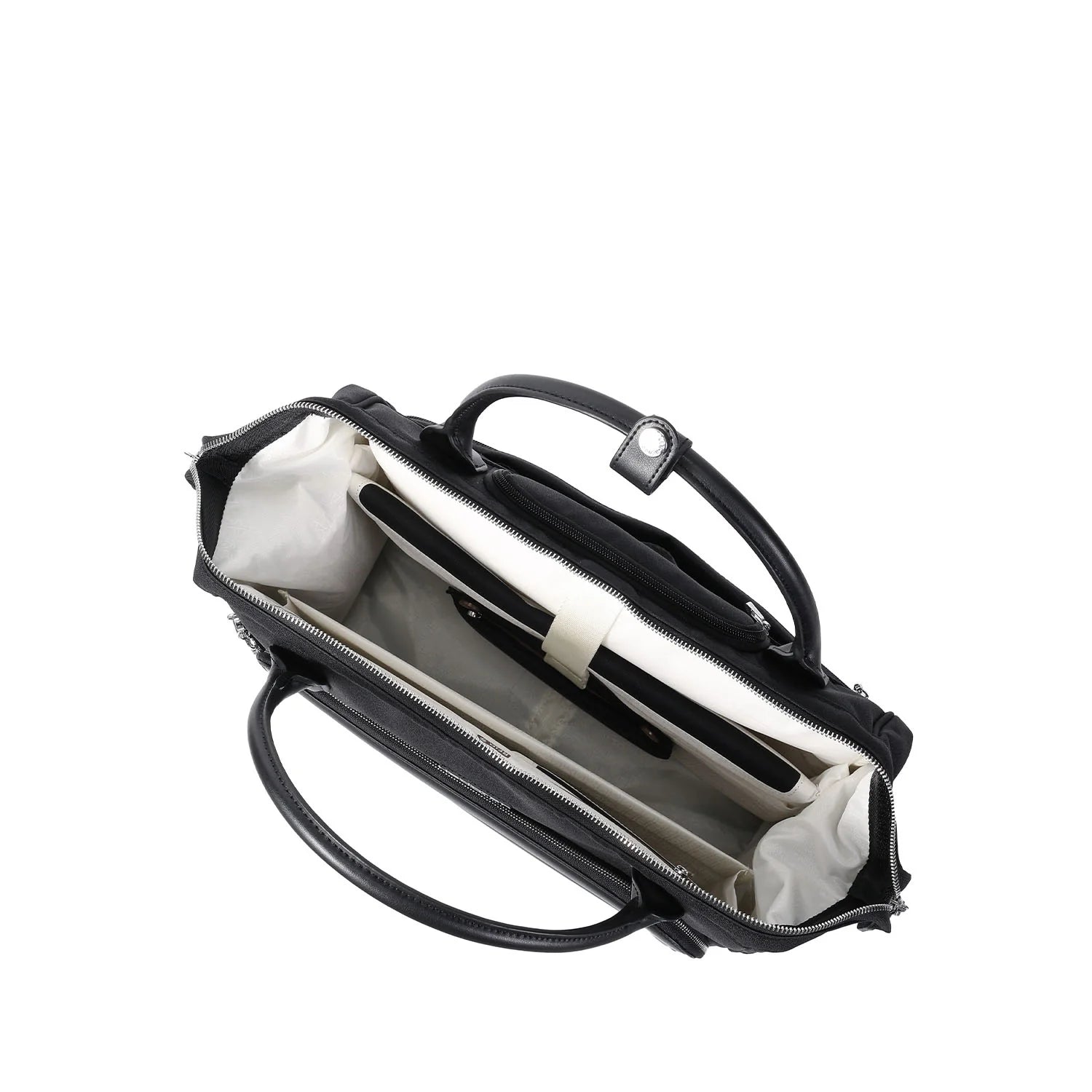 Väskans inre är lika imponerande som dess yttre. Med en RFID-ficka skyddas dina personuppgifter effektivt. Den genomtänkta organisationsstrukturen gör det enkelt att hitta det du behöver snabbt. Inuti finns sex fickor och tre på utsidan, med dedikerade utrymmen för laptop, surfplatta och andra nödvändigheter. En avtagbar ficka för toalettartiklar och en extra bred öppning ger enkel åtkomst.