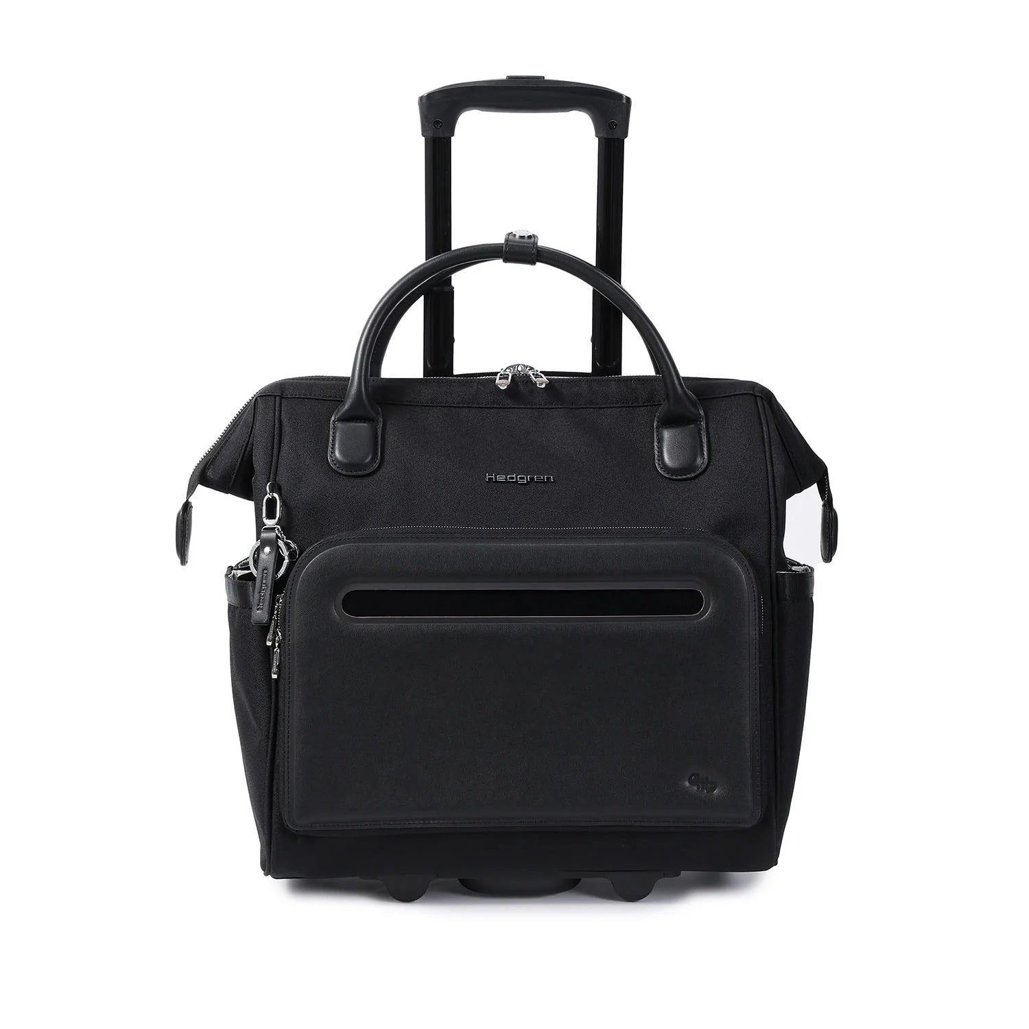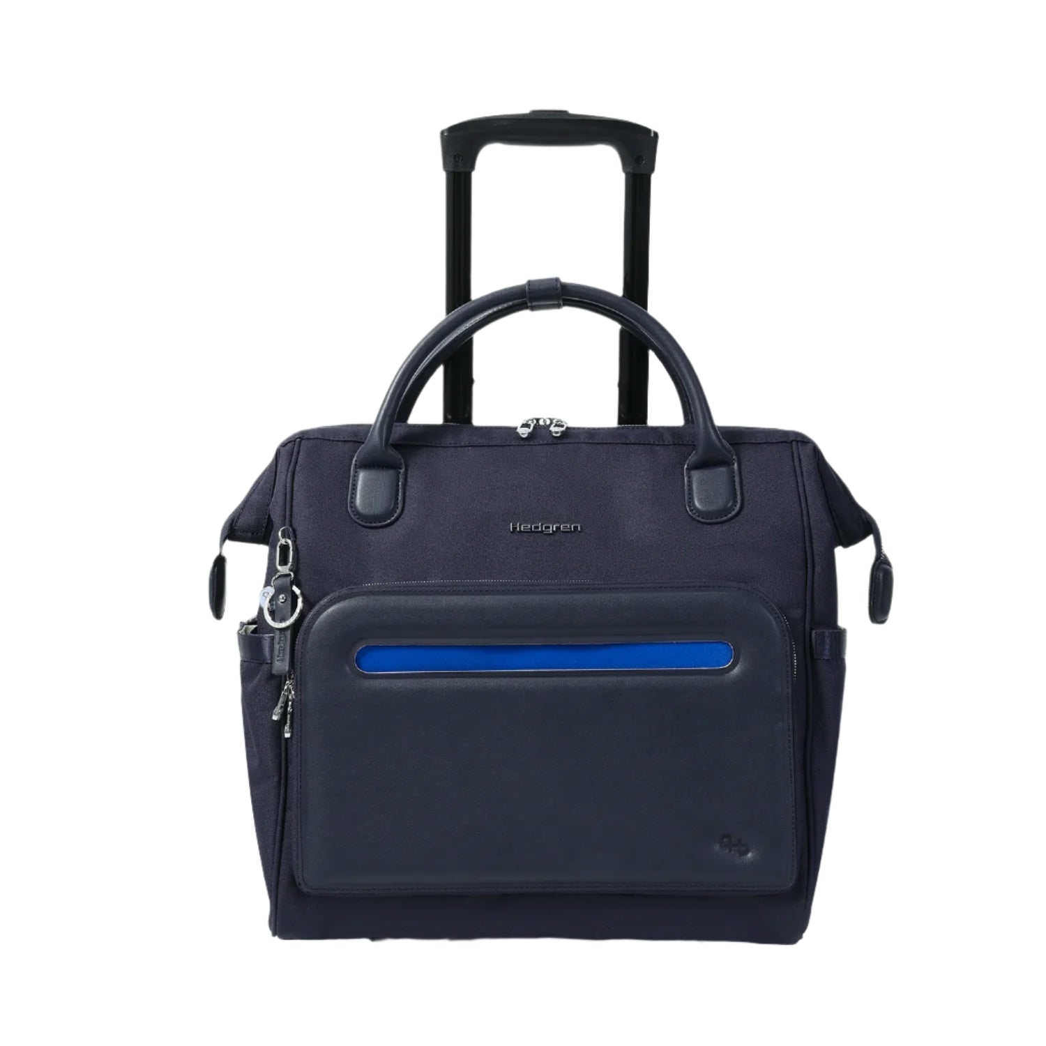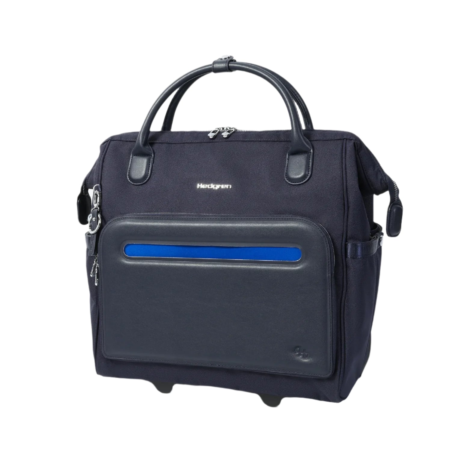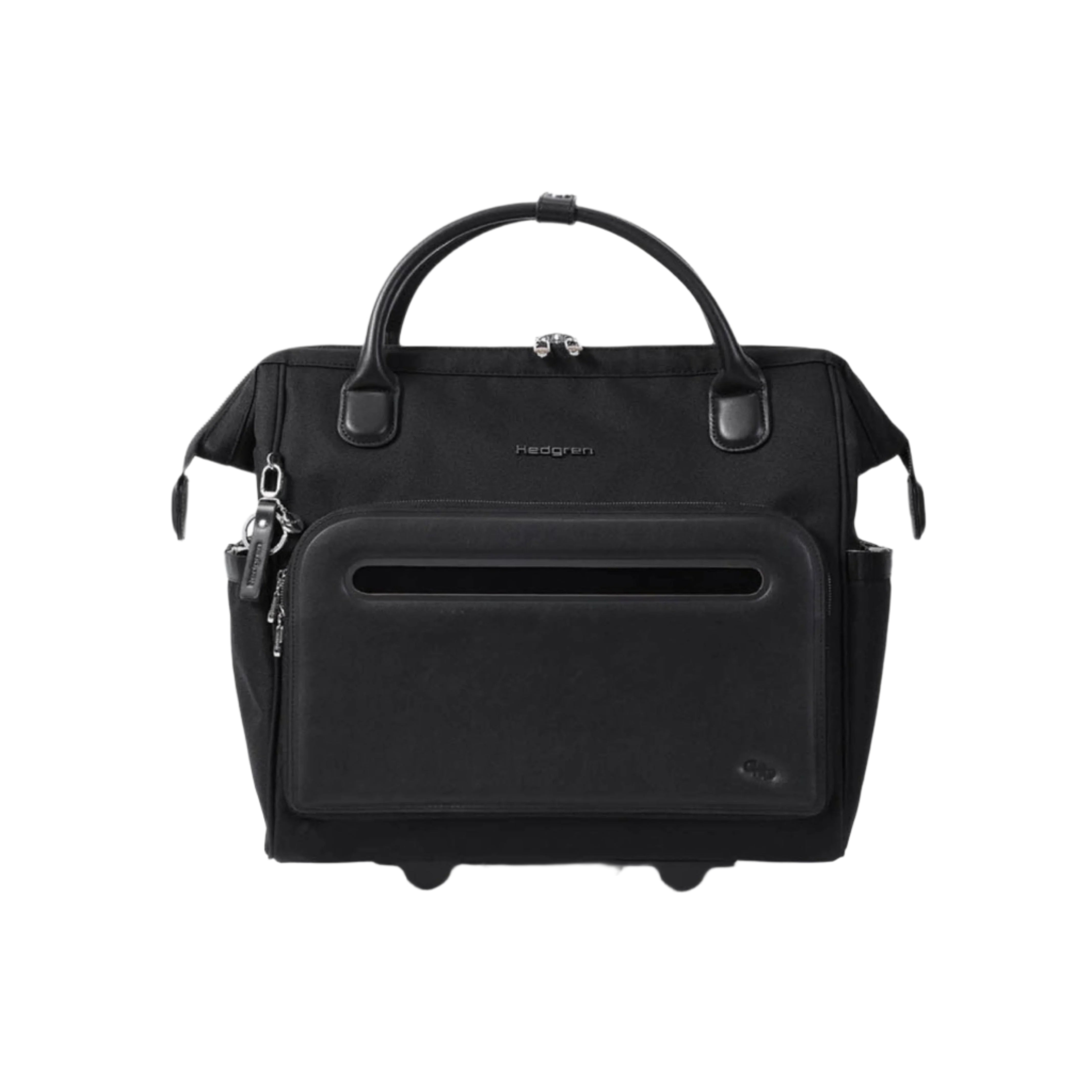 Fynda nuMed Venti Rolling Tote från Hedgren kan du enkelt navigera genom flygplatser med stil. Denna kabinväska är tillverkad av vattentåliga, återvunna material som ger både hållbarhet och elegans. Den smarta sleeve-funktionen gör det möjligt att hänga väskan över handtaget på din resväska, vilket underlättar resandet. Dessutom har väskan en unik framficka med en klar, dammtålig panel som skyddar dina tillhörigheter.