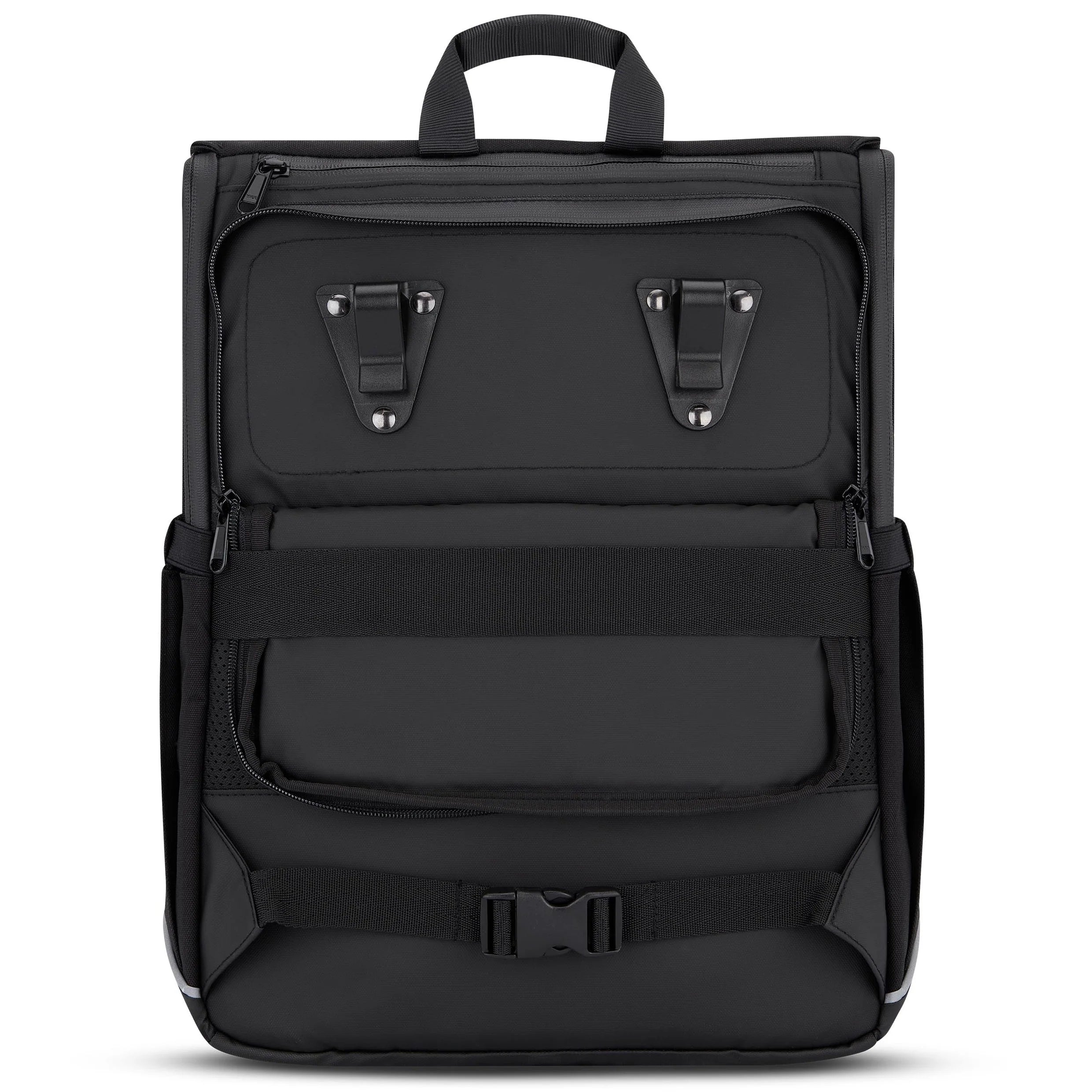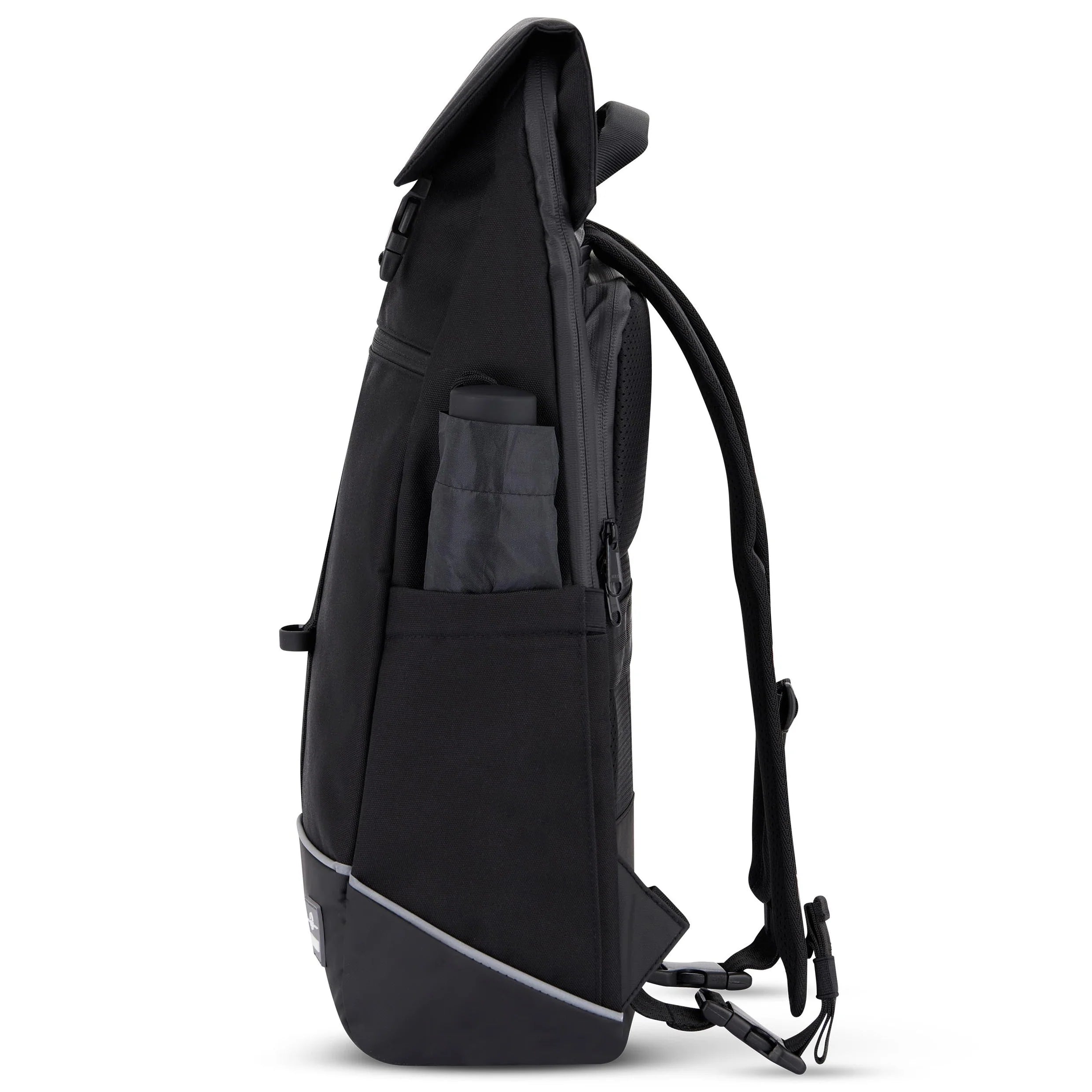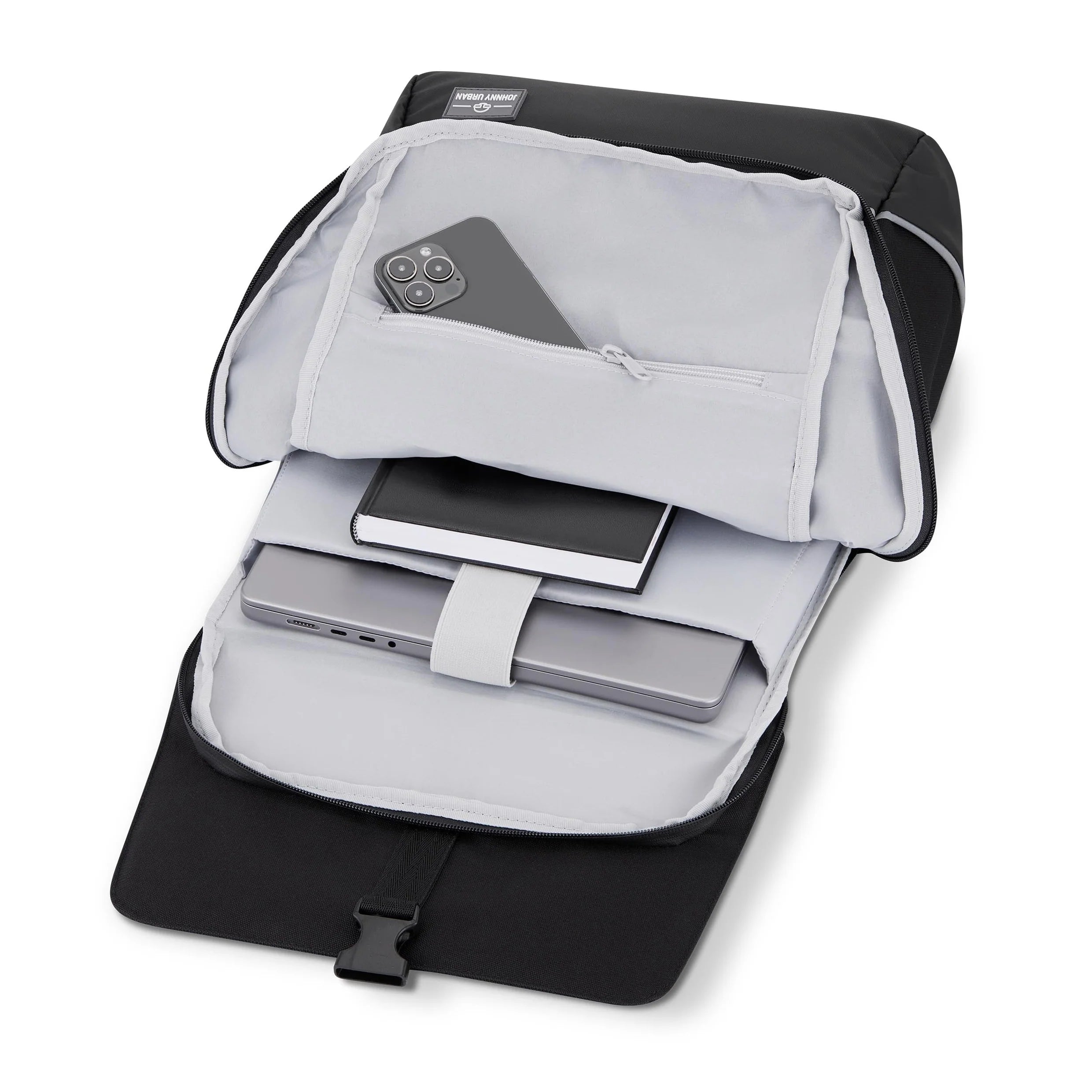 Ryggsäcken erbjuder ett rymligt huvudfack med flexibel volym som kan anpassas efter behov. Inuti finns ett vadderat laptopfack som rymmer bärbar dator upp till 16 tum samt en invändig ficka med dragkedja för mindre tillhörigheter. Utvändigt finns en frontficka med dragkedja samt elastiska sidofack som passar för exempelvis vattenflaska. Den genomtänkta uppdelningen gör det enkelt att organisera både arbetsutrustning och vardagsföremål.