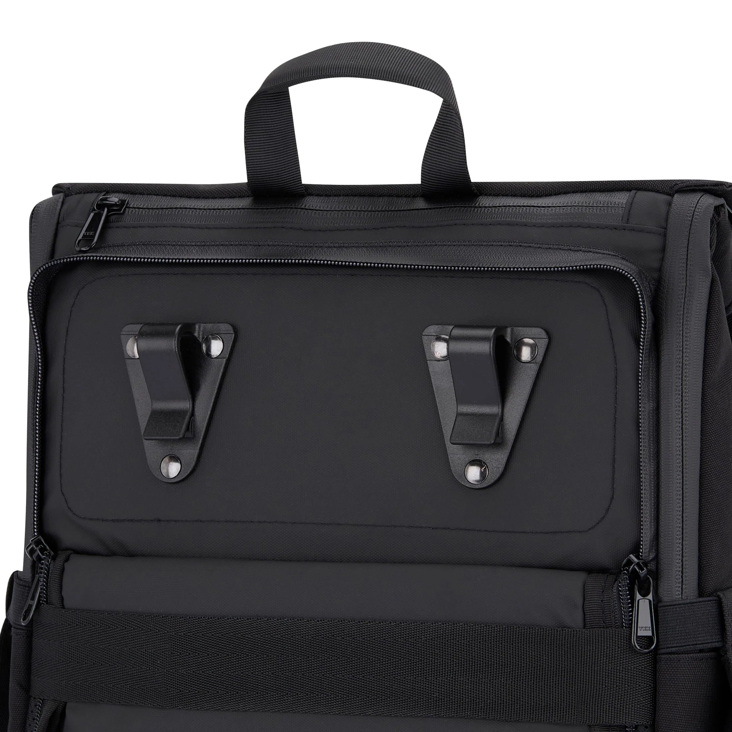 Johnny Urban Mika Bike är en cykelryggsäck som kombinerar funktionerna hos ryggsäck och pakethållarväska i ett och samma format. Den smarta konstruktionen gör det möjligt att använda väskan både på ryggen och monterad på cykelns pakethållare, vilket gör den till ett flexibelt alternativ för pendling och vardagsbruk. Fästkrokarna är diskret placerade bakom en vadderad flik, vilket ger ett stilrent uttryck när ryggsäcken används på ryggen.
