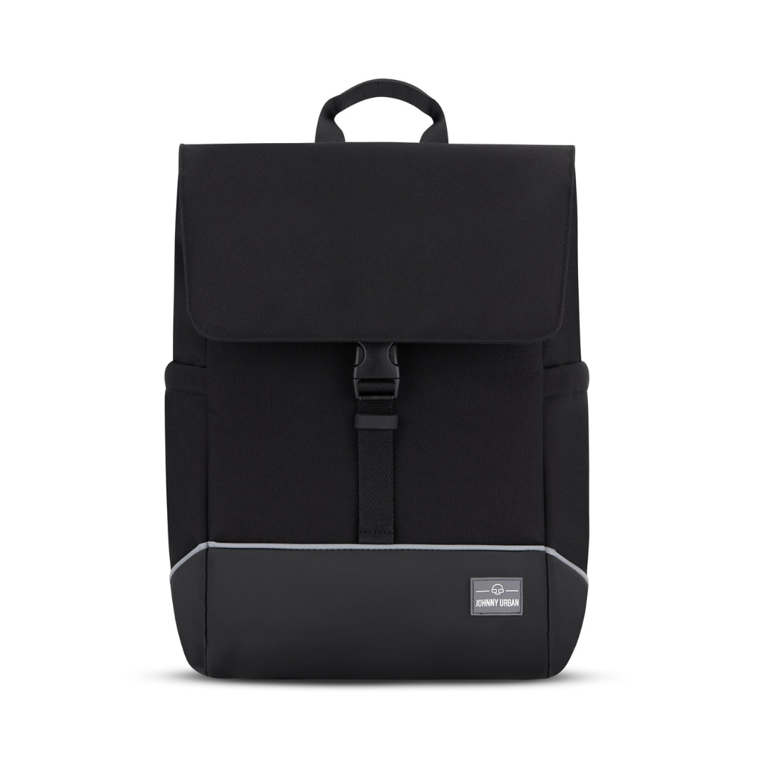 Ryggsäcken är tillverkad av återvunnen polyester från återvunna PET-flaskor och förstärkt med en TPE-beläggning på baksidan. Botten är försedd med en extra PU-beläggning som gör smuts enkel att torka bort. Innerfodret består av 100 % återvunna fibrer och tack vare en PFC-fri impregnering är ryggsäcken vattenavvisande. Reflekterande detaljer bidrar till ökad synlighet i mörker, vilket gör Johnny Urban Mika Bike till ett funktionellt och genomtänkt val för cykelpendling i alla väder.
