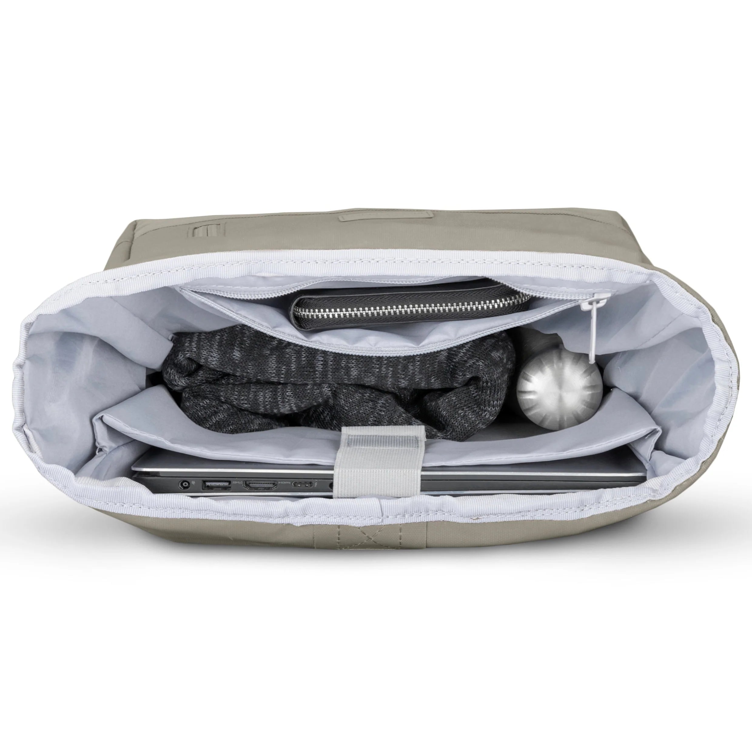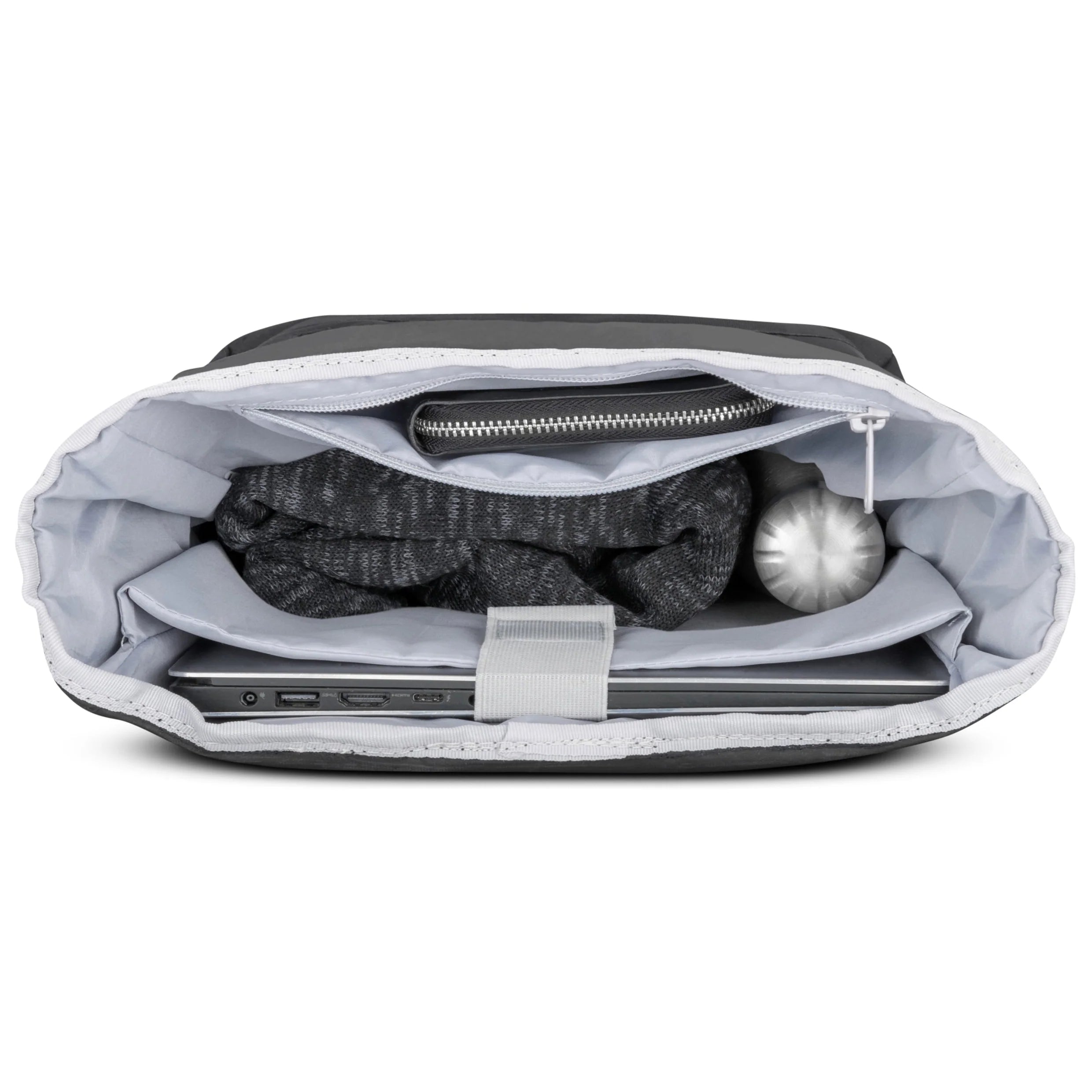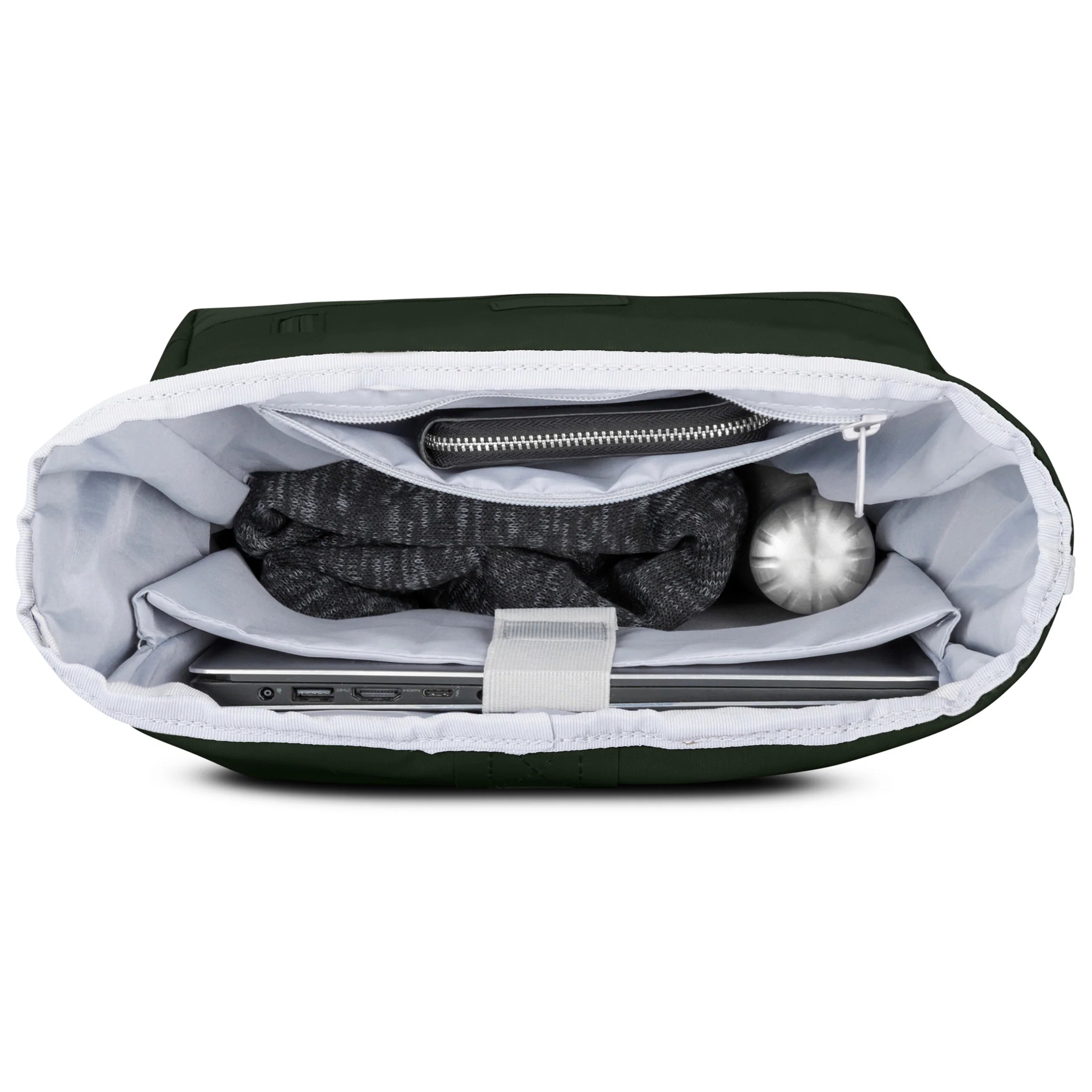 Ryggsäcken är utrustad med ett vadderat laptopfack som rymmer bärbara datorer upp till 16 tum, vilket gör den väl anpassad för arbete och studier. Invändigt finns även en ficka med dragkedja för säker förvaring av mindre föremål. På utsidan finns en ficka framtill med dragkedja samt ett sidofack som passar för exempelvis vattenflaska. Den genomtänkta fördelningen av fack gör det enkelt att hålla ordning på dina tillhörigheter under dagen.
