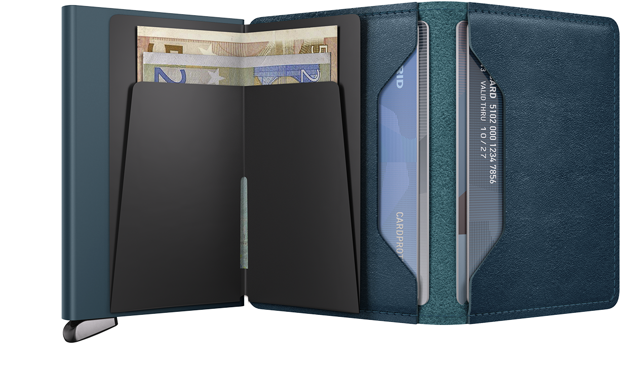 Slimwallet Basco har ett öppet yttre hölje utan knapp eller magnetisk stängning. Denna konstruktion bidrar till en tunnare profil och gör plånboken smidig att använda i vardagen, med snabb åtkomst till innehållet och ett avskalat, funktionellt uttryck.