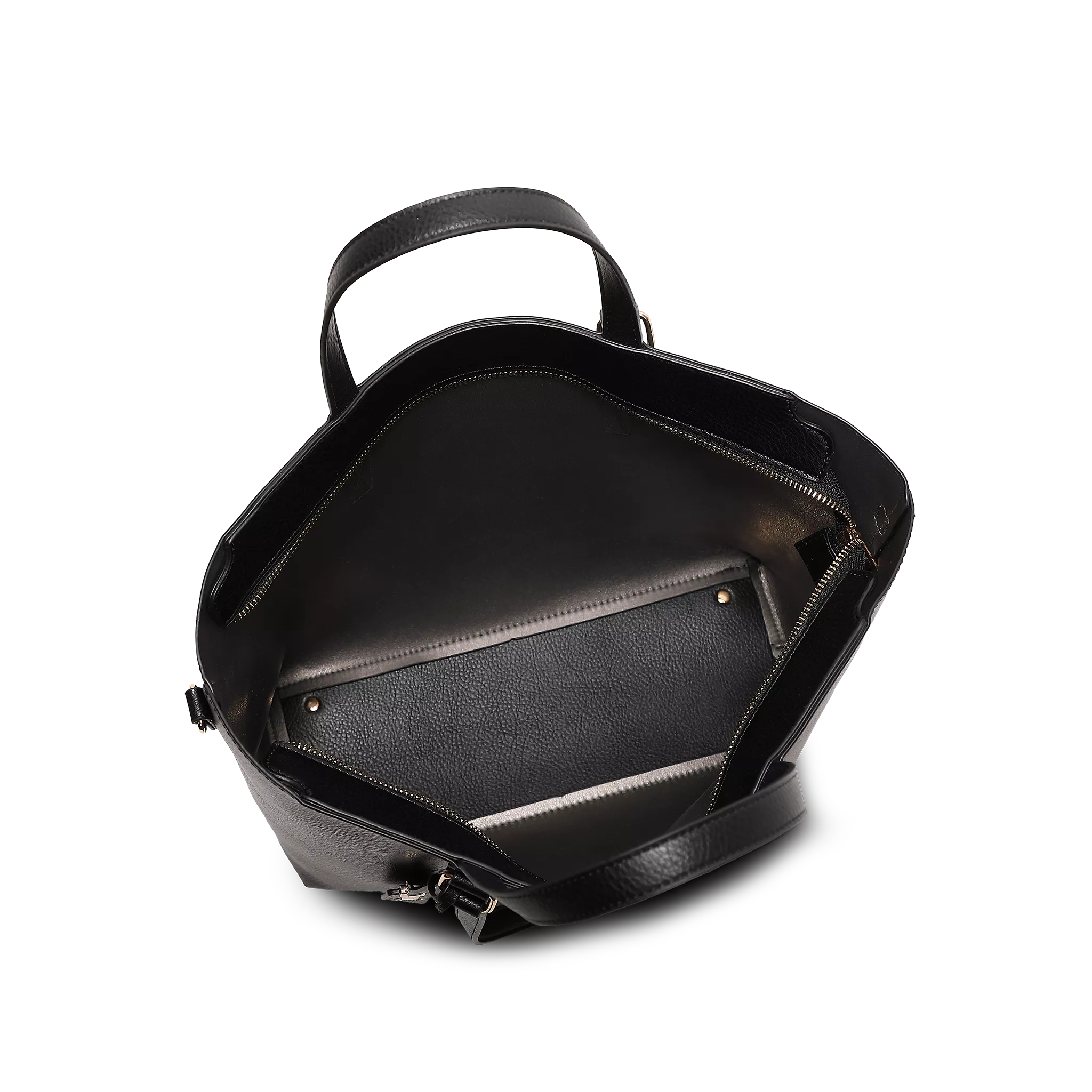 Det som gör Kragerö-modellen unik är den urtagbara innerväskan. Den kan användas separat som en axelväska genom att fästa den avtagbara remmen, eller som en necessär när du är på resande fot. Huvudfacket stängs med dragkedja och rymmer allt från dokument till en bärbar dator. Insidan har dessutom ett metalliskt skimmer som ger en elegant touch.