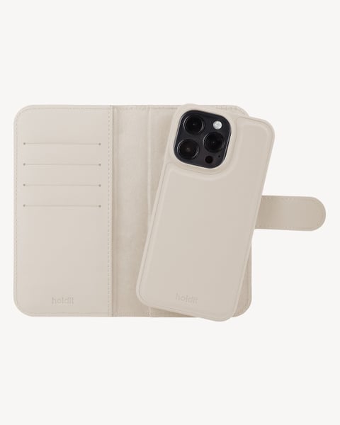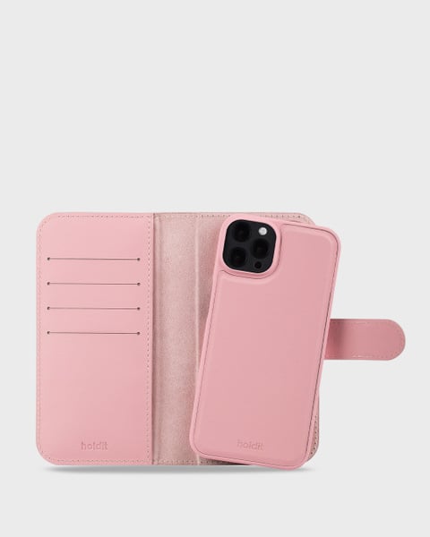 Holdit Mobilskal Walletcase Magnet iPhone 12/12 Pro skyddar kanter och skärm samtidigt som kort och sedlar kan förvaras i samma tillbehör. Omslaget viks över framsidan och hjälper till att skydda telefonen mot repor i ficka eller väska.