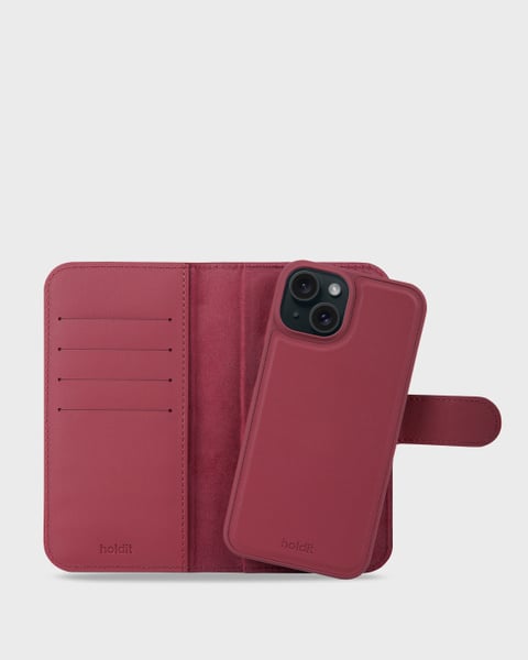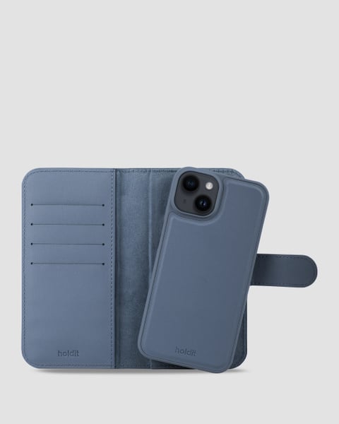 Holdit Mobilskal Walletcase Magnet iPhone 14/13 skyddar skärm och kanter samtidigt som kort och sedlar kan förvaras smidigt i vardagen. Omslaget viks över framsidan och hjälper till att motstå repor i ficka eller väska.