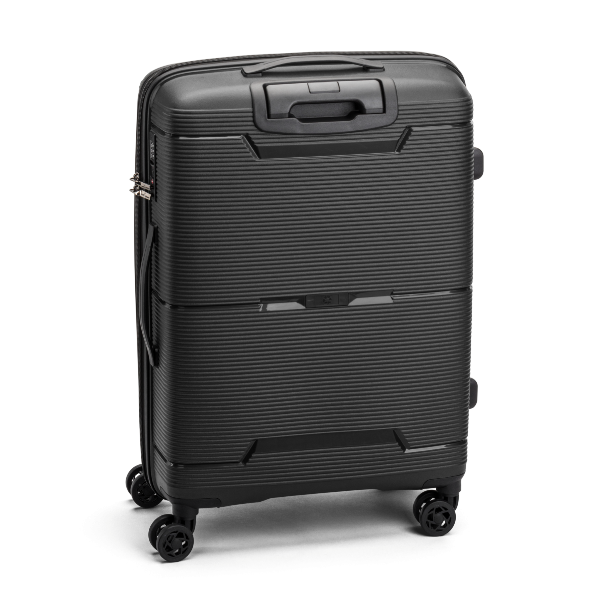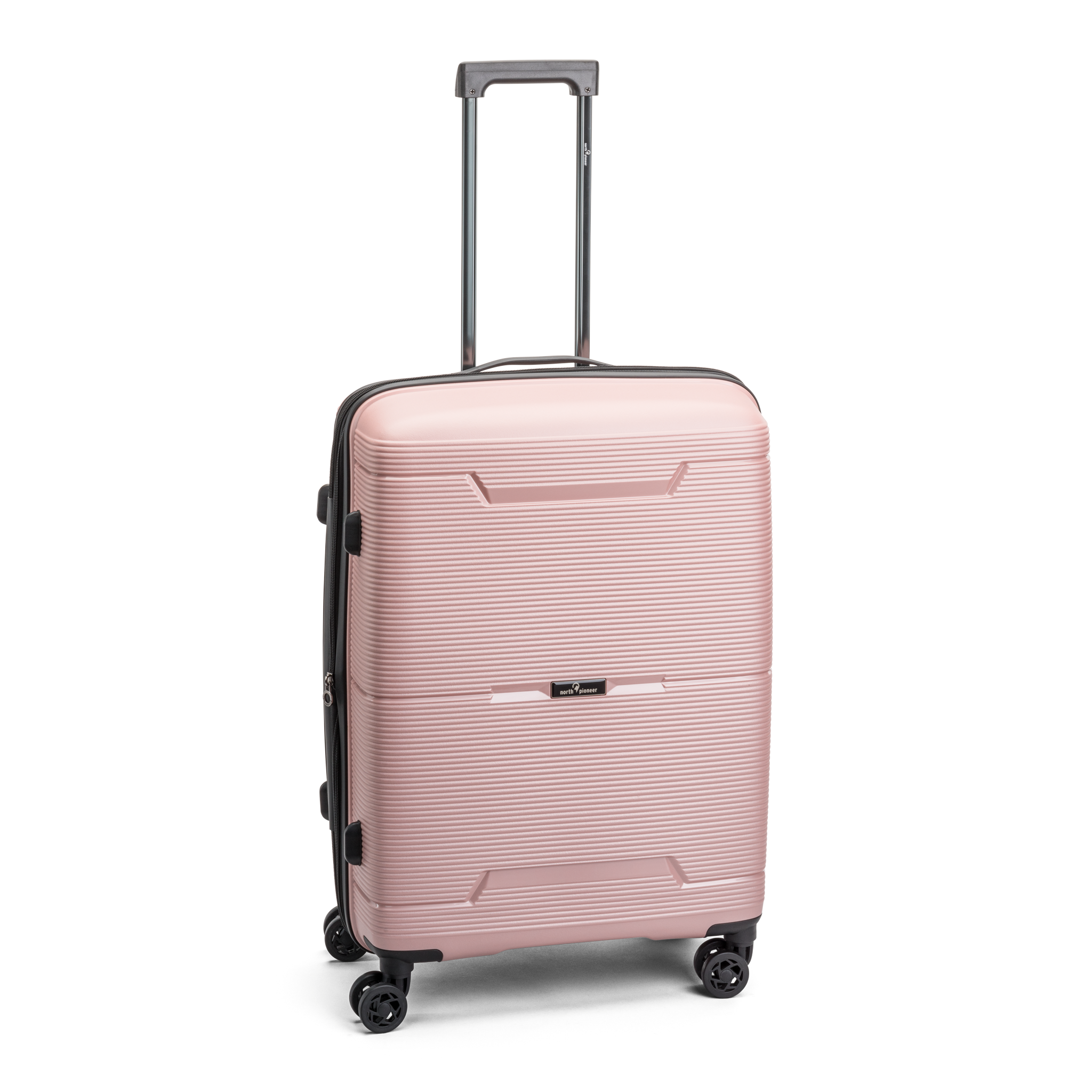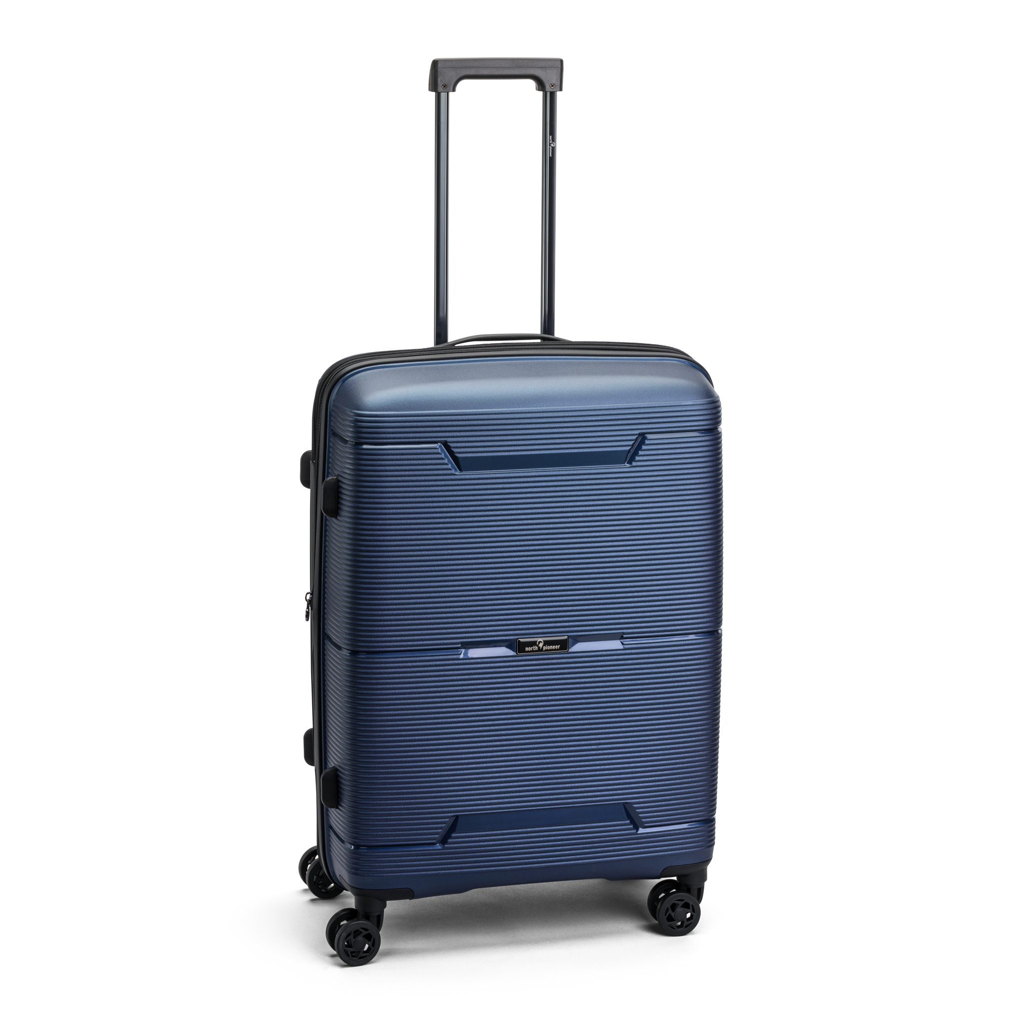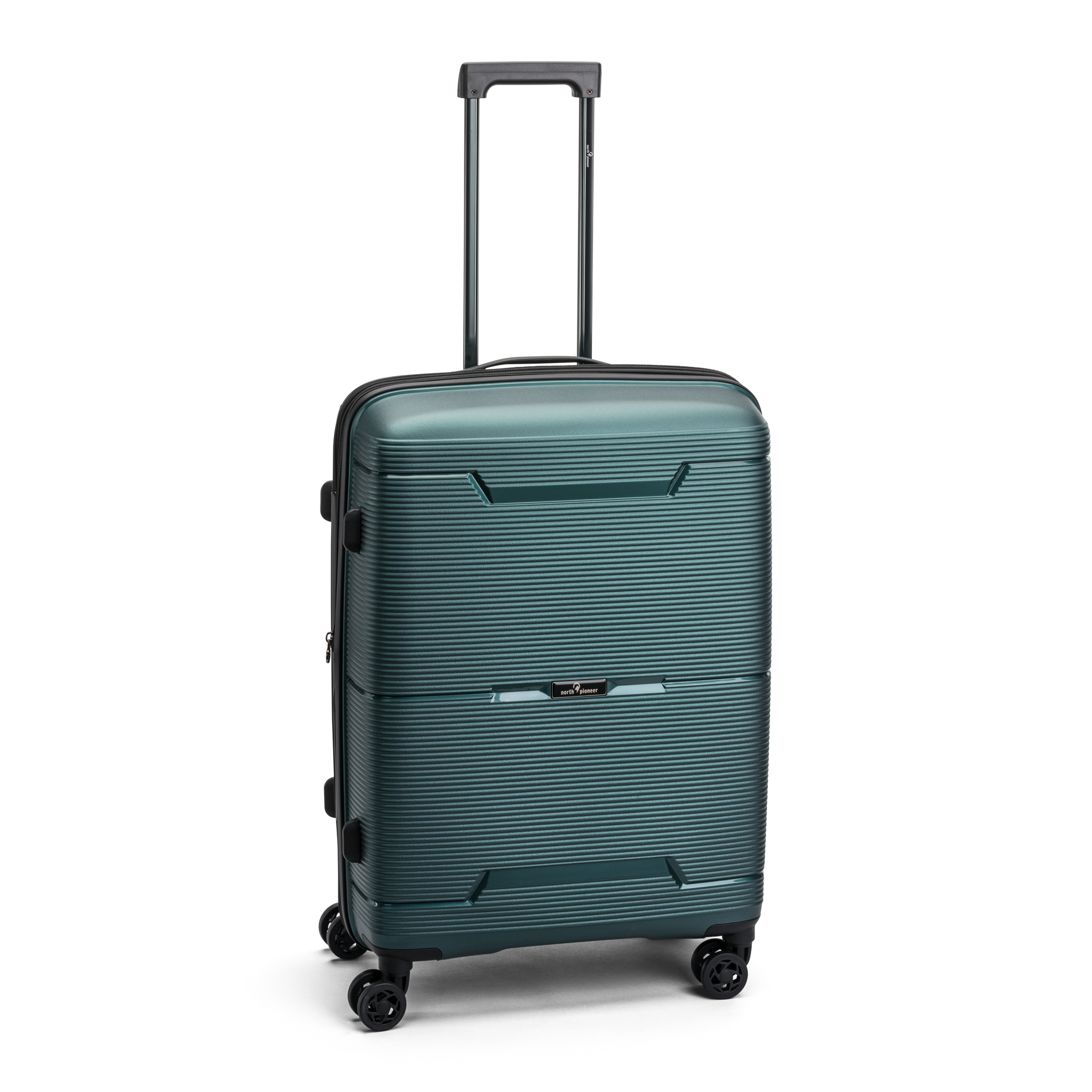 Den mellanstora resväskan från North Pioneers Bergen-serie kombinerar funktionalitet med en elegant design. Tillverkad i slitstark polypropylen, erbjuder den en räfflad yta som skyddar mot stötar. Denna resväska är perfekt för den stilmedvetna resenären som söker både hållbarhet och estetik.