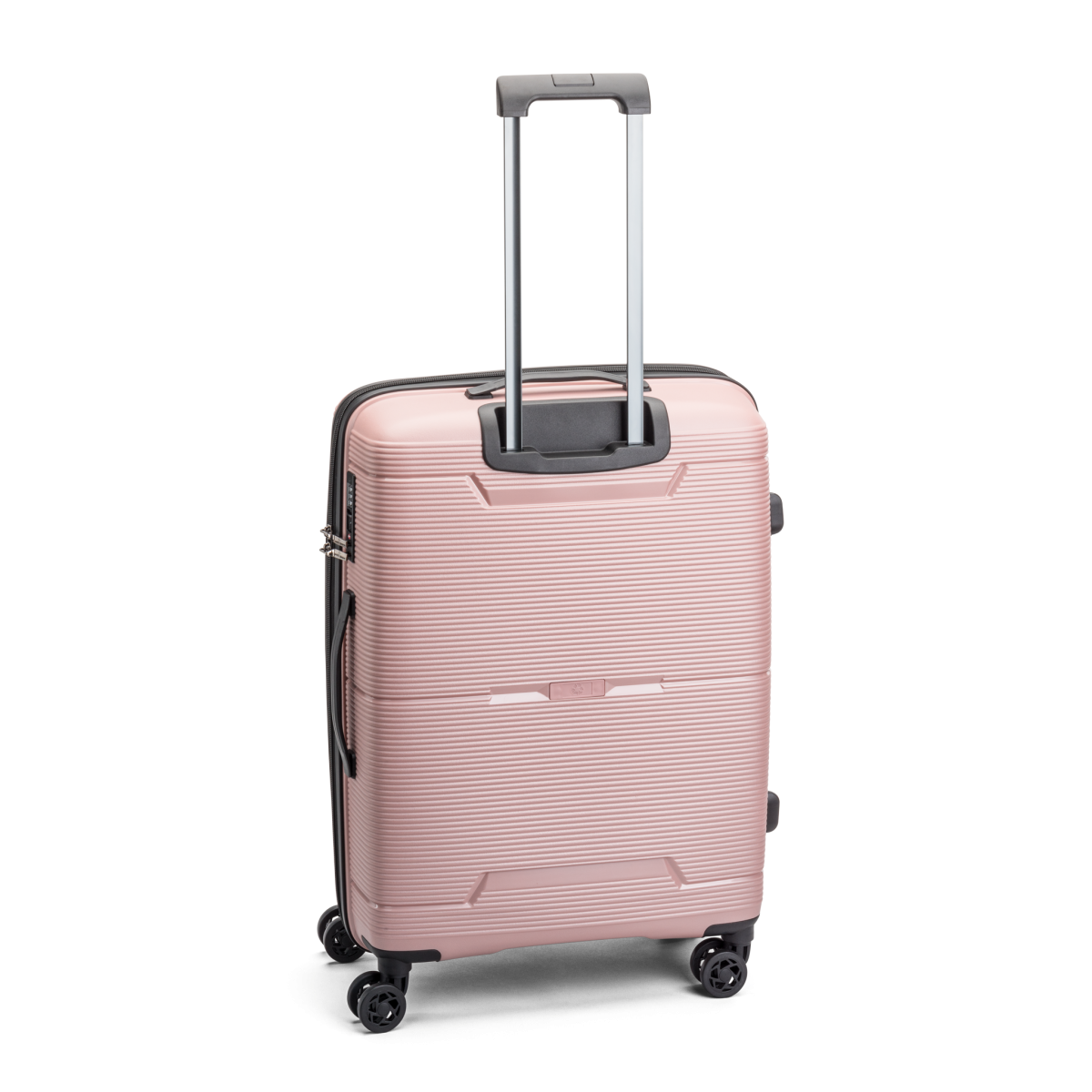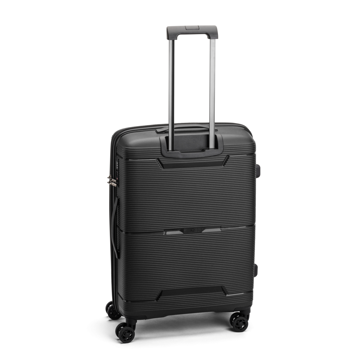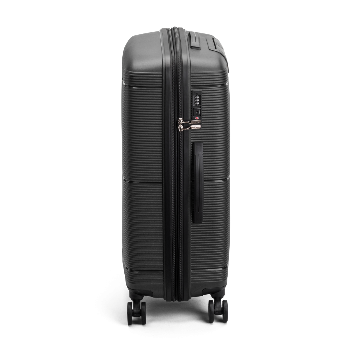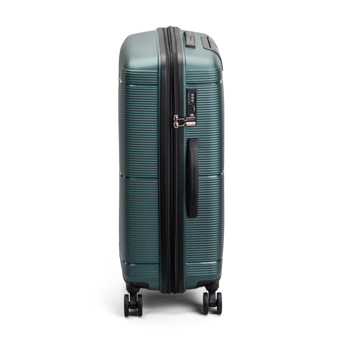 Den mellanstora resväskan från North Pioneers Bergen-serie kombinerar funktionalitet med en elegant design. Tillverkad i slitstark polypropylen, erbjuder den en räfflad yta som skyddar mot stötar. Denna resväska är perfekt för den stilmedvetna resenären som söker både hållbarhet och estetik.