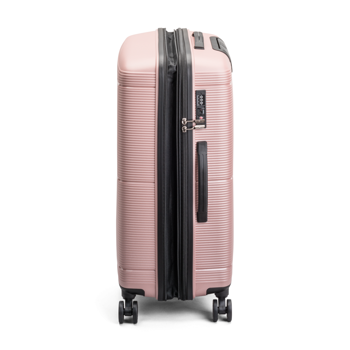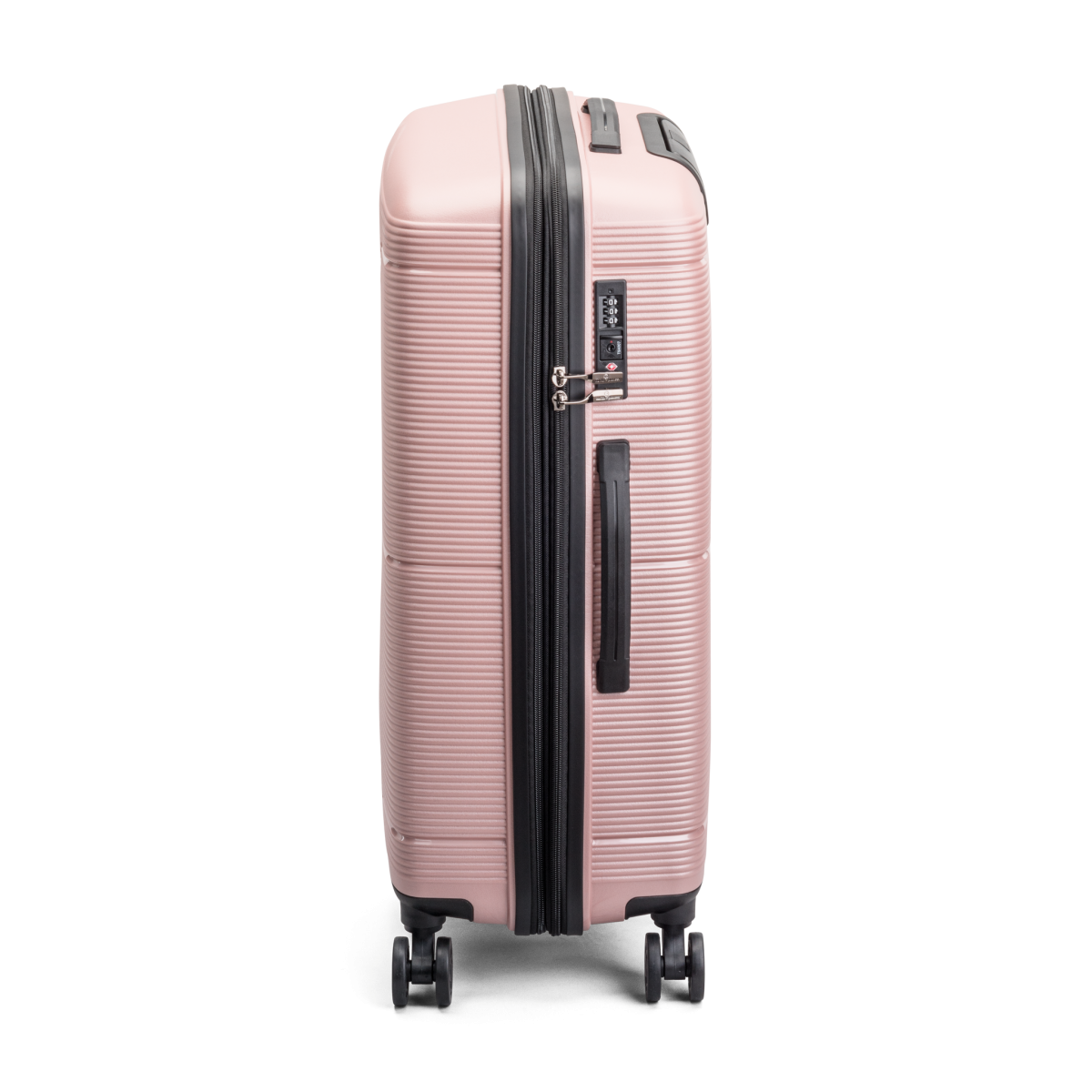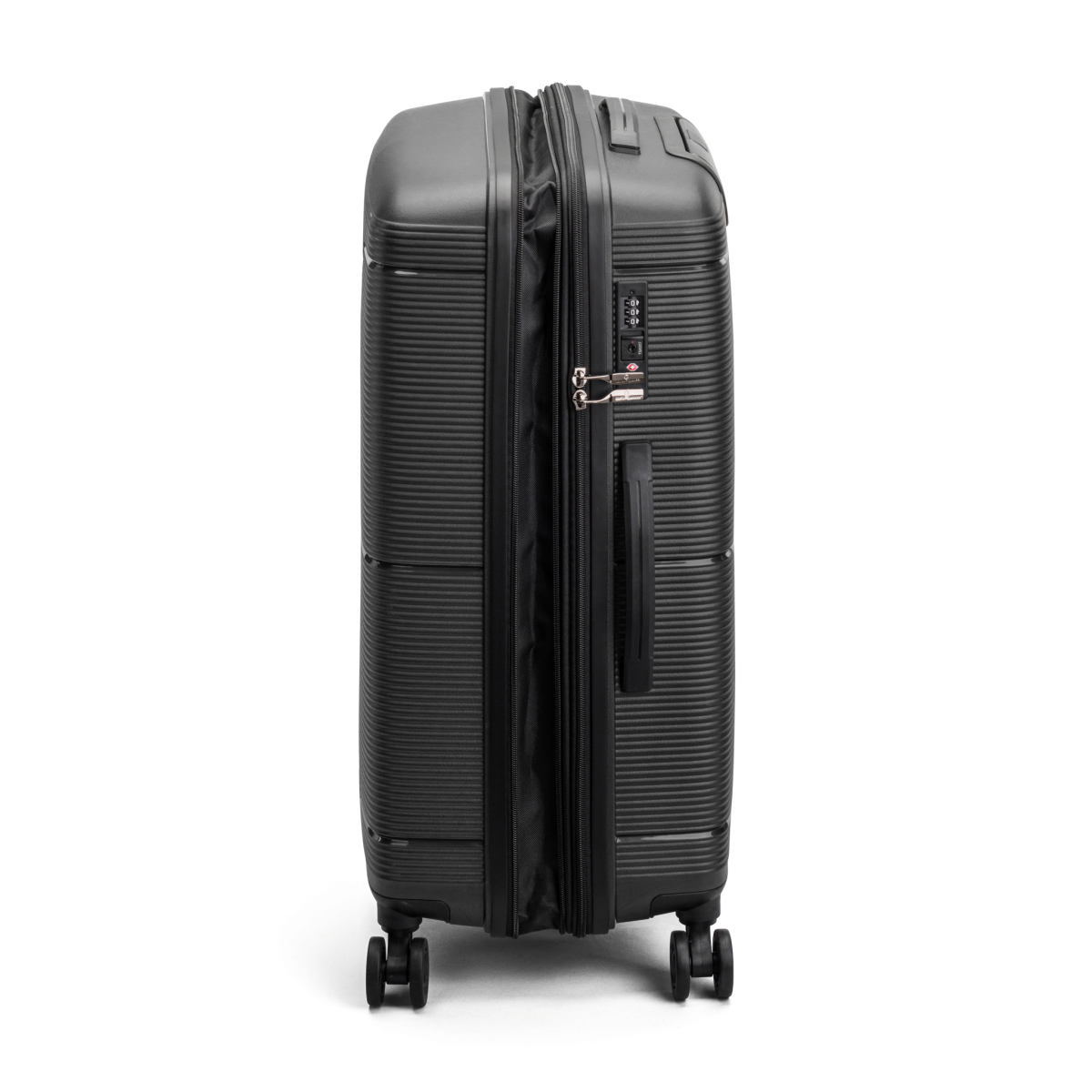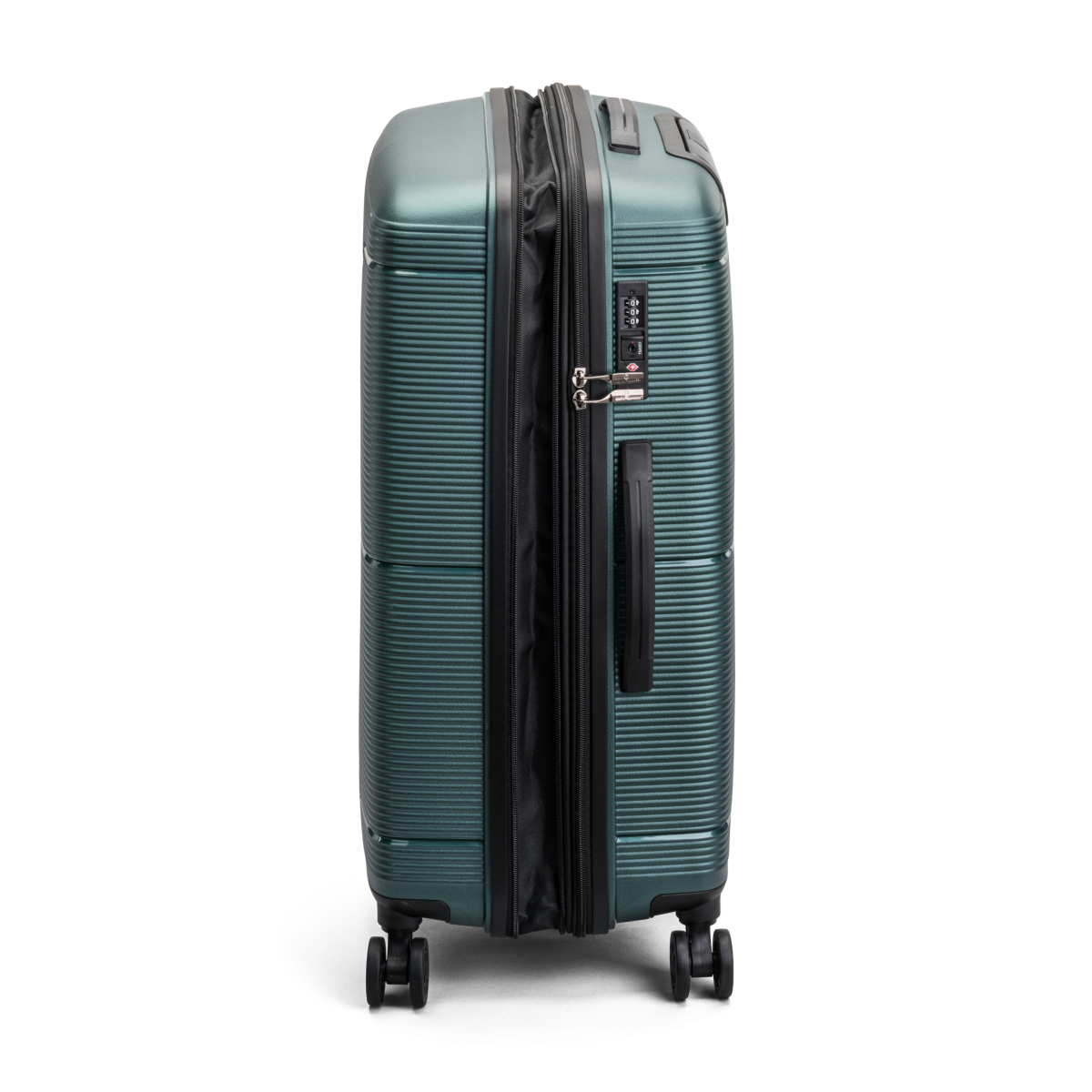 Den mellanstora resväskan från North Pioneers Bergen-serie kombinerar funktionalitet med en elegant design. Tillverkad i slitstark polypropylen, erbjuder den en räfflad yta som skyddar mot stötar. Denna resväska är perfekt för den stilmedvetna resenären som söker både hållbarhet och estetik.