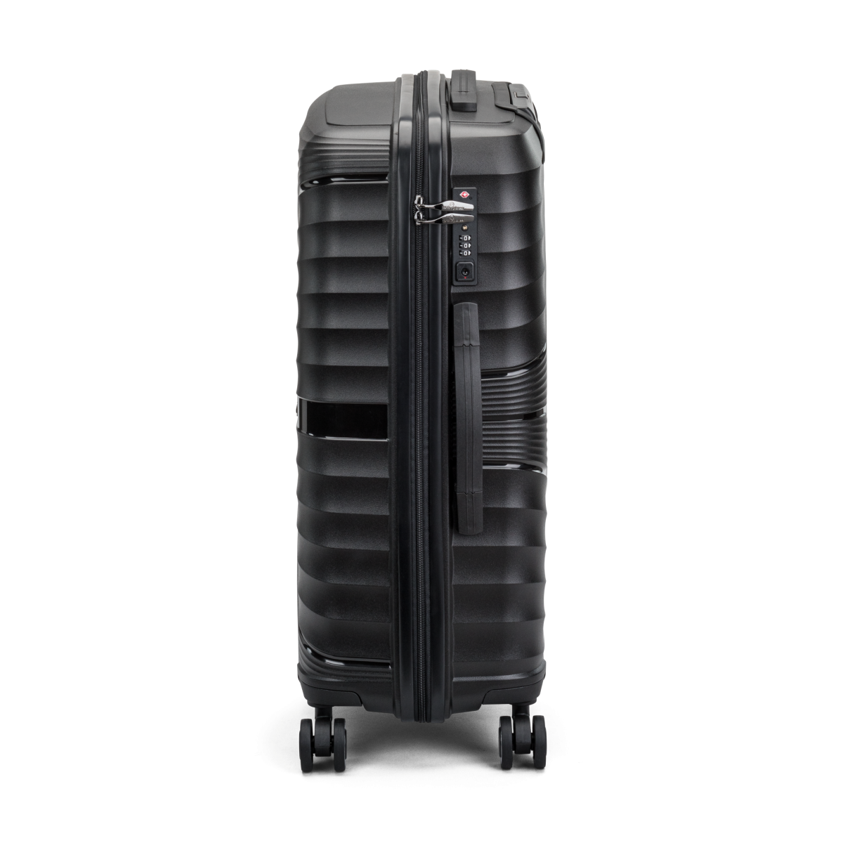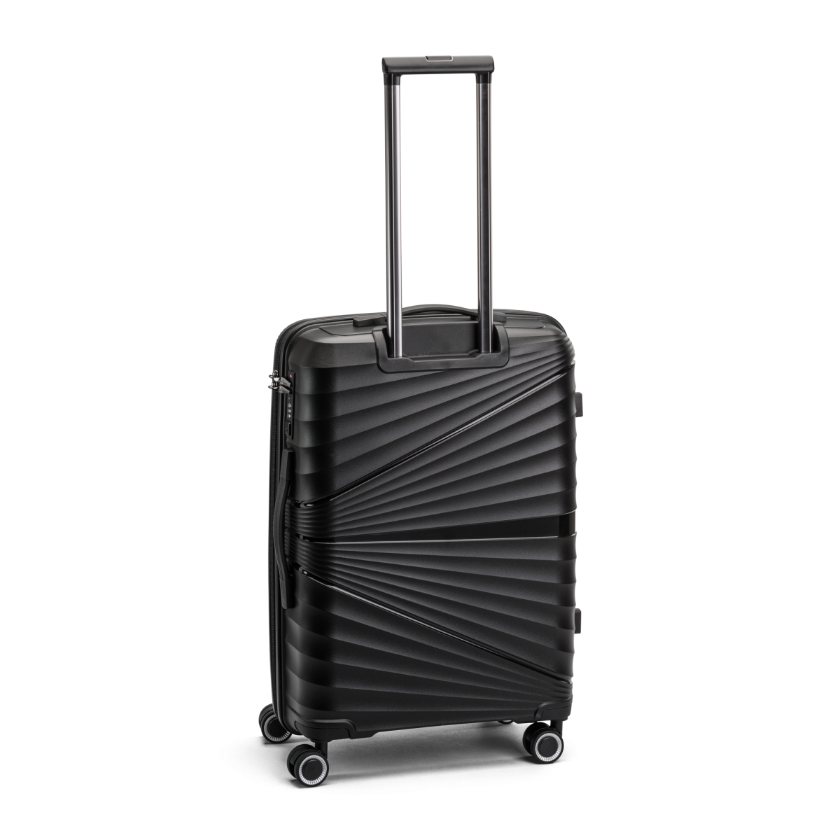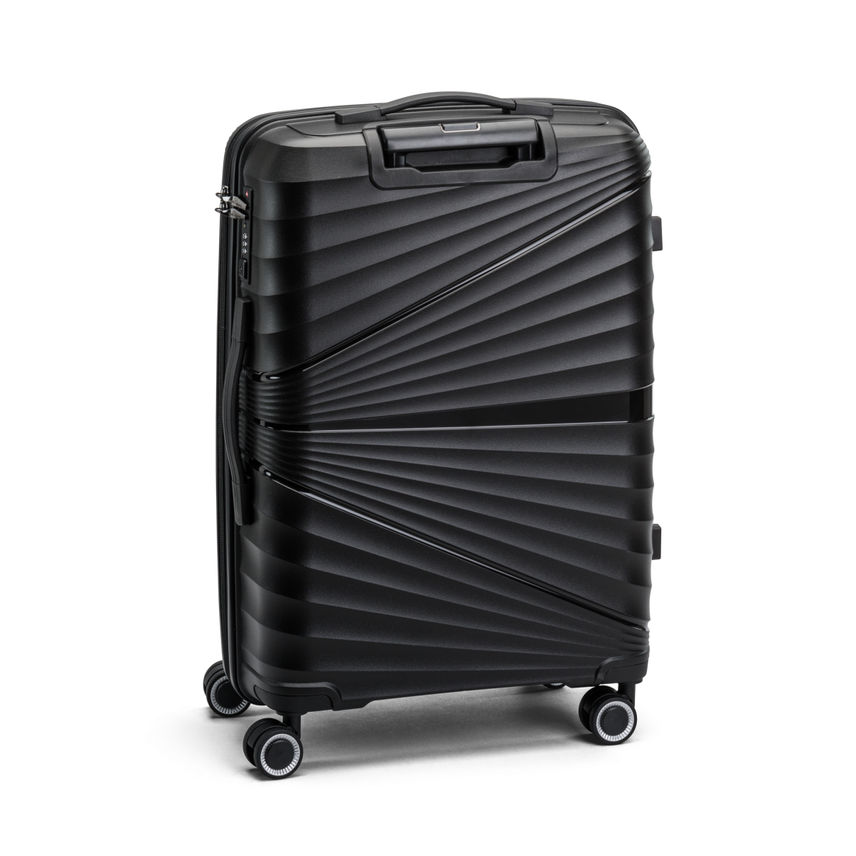 Denna mellanstora resväska från North Pioneer är inspirerad av den moderna atmosfären på Copenhagen Airport. Tillverkad i slitstark polypropylen, erbjuder den en stilren och räfflad yta som inte bara är estetiskt tilltalande utan också ger extra skydd mot stötar. Ett integrerat TSA-kodlås säkerställer att ditt innehåll förblir säkert under hela resan.