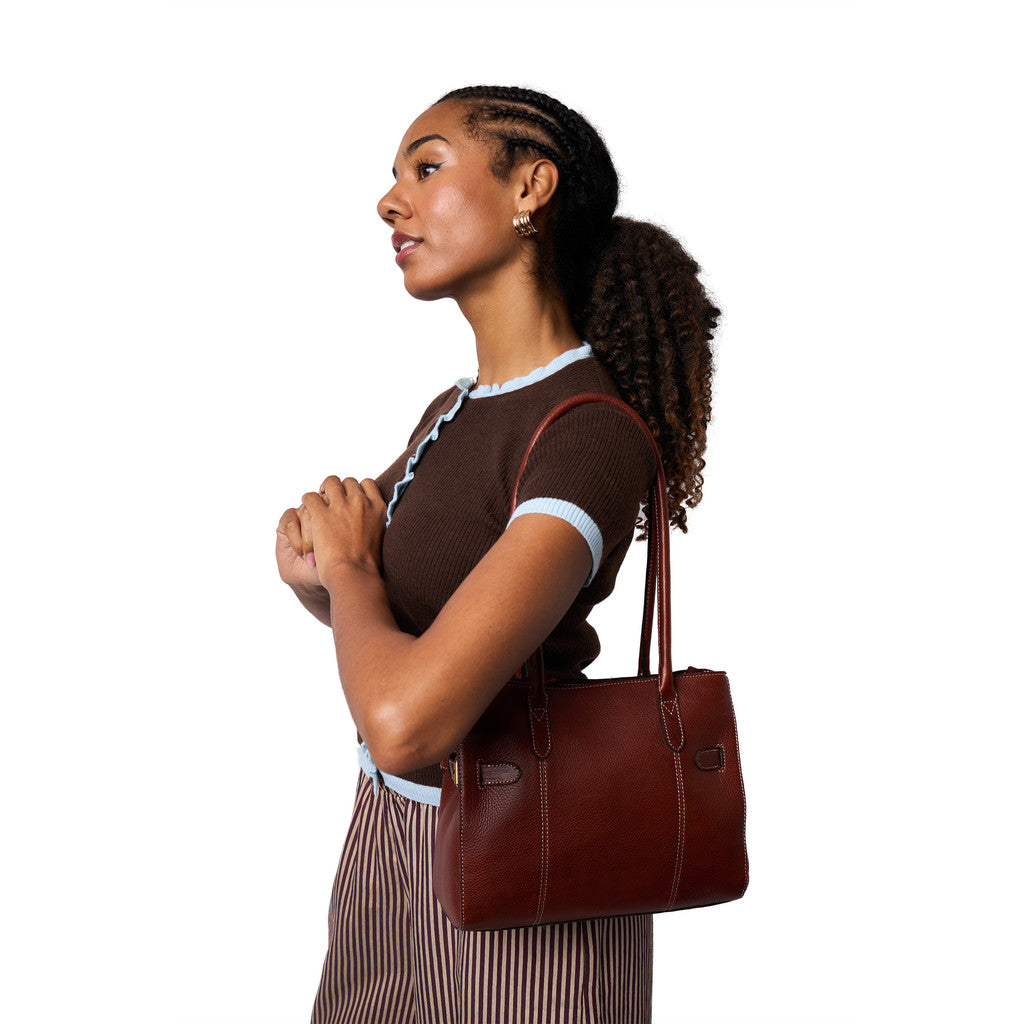 RE:DESIGNED Nellie Small Axelväska 25.5cm är en stilren och mångsidig axelväska i ett tidlöst utförande. Den handgjorda konstruktionen ger modellen ett genomarbetat uttryck samtidigt som formen är kompakt och funktionell. Med måtten 22 x 25,5 x 6 cm erbjuder väskan ett nätt format som passar vardaglig användning utan att kompromissa med struktur och elegans.