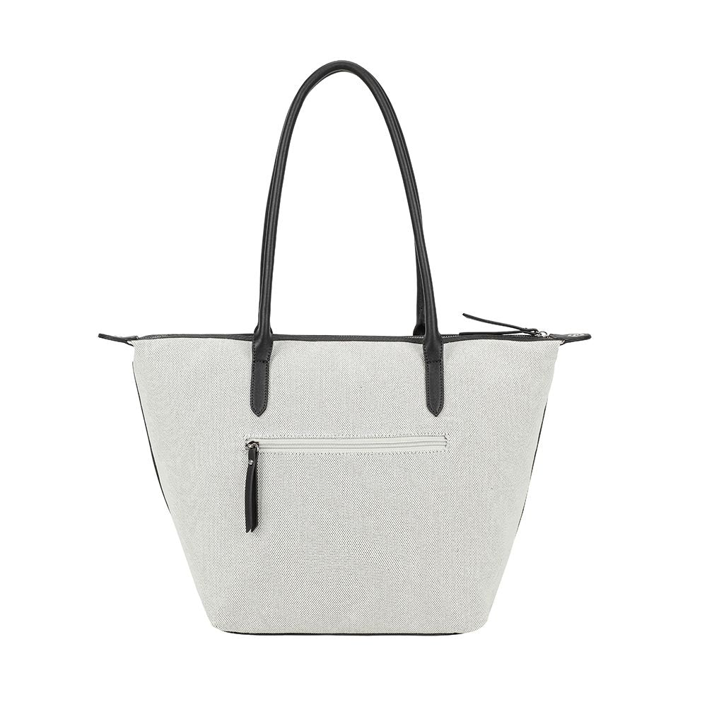 Ulrika Design Recycled Canvas 2.0 är en rymlig toteväska tillverkad i återvunnet canvasmaterial. Materialvalet ger väskan en robust känsla och ett avslappnat uttryck som passar perfekt i vardagen. Canvasens struktur bidrar till en slitstark konstruktion som är anpassad för daglig användning, samtidigt som det återvunna materialet gör väskan till ett medvetet val för dig som söker en praktisk och funktionell kasse.