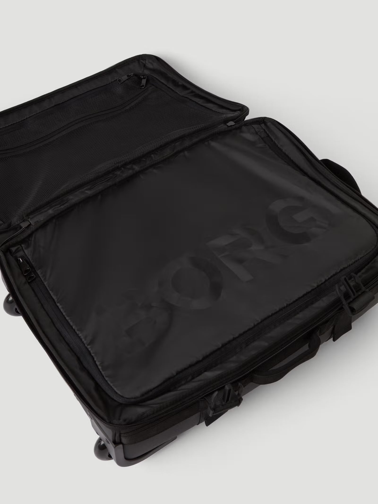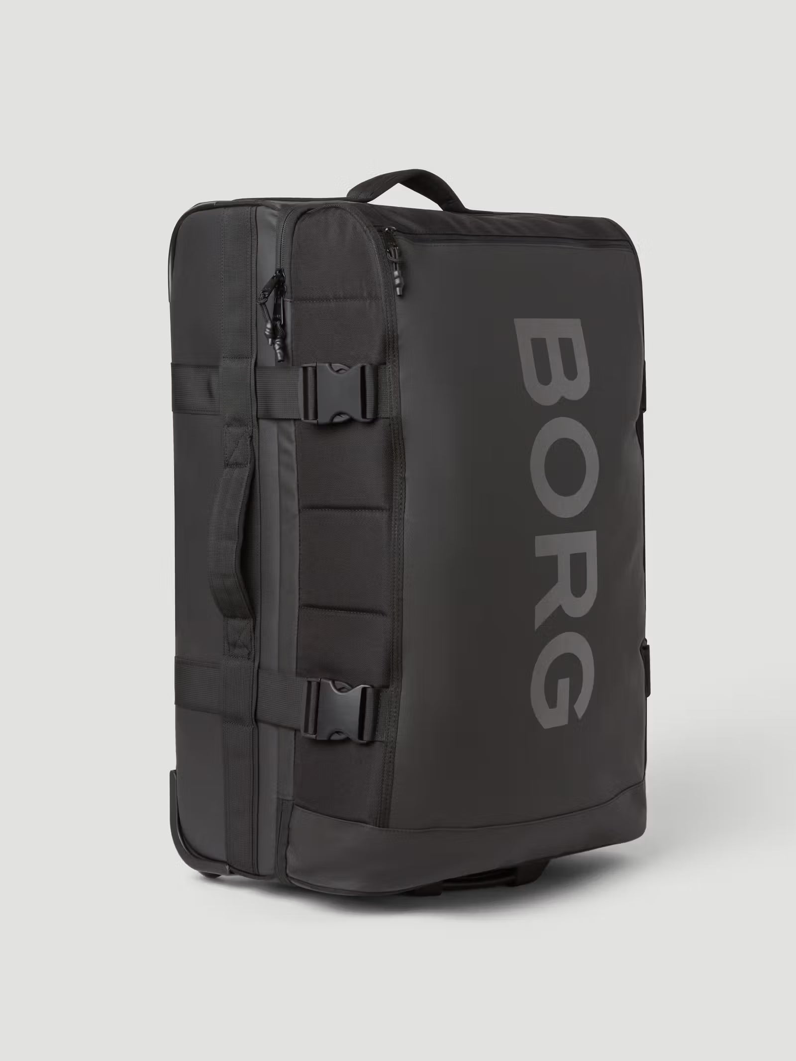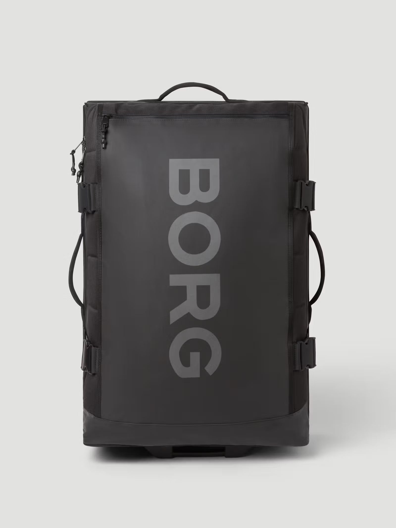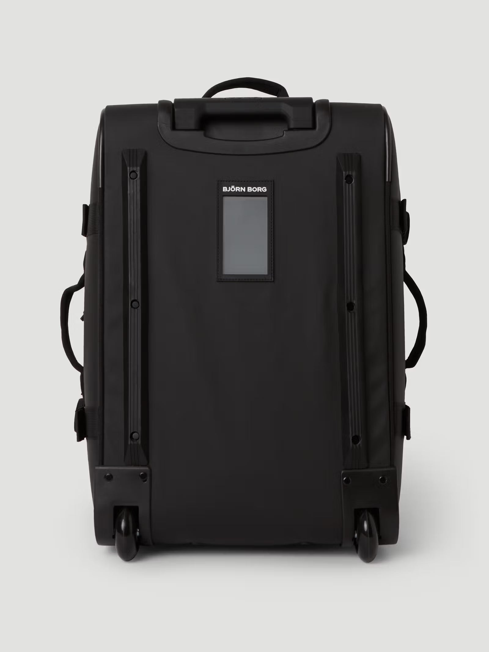 Björn Borg Travel Trolley L är en stor duffelväska med hjul, designad för längre resor och tillverkad i slitstarkt material med en elegant gummiyta. Den stilrena designen med tydlig Borg-logotyp gör väskan lätt att känna igen på bagagebandet, samtidigt som den behåller ett sportigt och modernt uttryck. En perfekt kombination av funktion och design för den aktiva resenären.