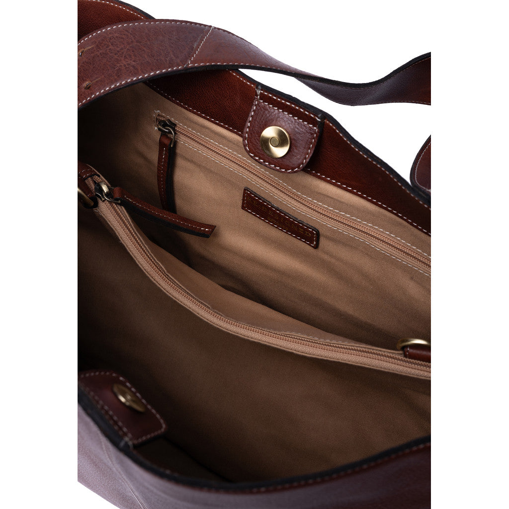 Väskan är uppdelad i två separata huvudfack, vilket ger en tydlig och organiserad inre struktur. I mitten finns en dragkedjeförsedd ficka som skapar extra uppdelning och säker förvaring för mindre föremål. Denna konstruktion gör det enkelt att hålla ordning och ger snabb överblick över innehållet. RE:DESIGNED Naya Big Axelväska 36cm är utformad för att kombinera praktisk funktion med ett genomtänkt inre.