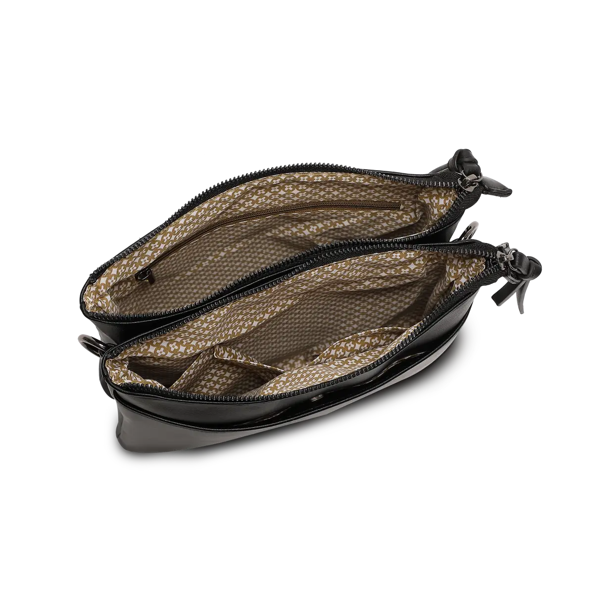 Melissa är framtagen för att hålla dina tillhörigheter organiserade genom två separata huvudfack. Den dubbla facklösningen gör det enkelt att dela upp innehållet och hålla bättre ordning i vardagen. Insidan är utrustad med ett blixtlåsförsett fack och två öppna fack för mindre prylar, vilket ger en tydlig och funktionell struktur. På baksidan finns dessutom ett 18 cm blixtlåsförsett fack som passar perfekt för värdesaker du vill ha nära till hands men ändå skyddade.